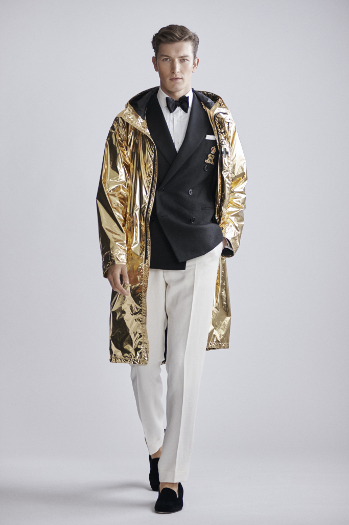 The collection also sparkled with a filmy gold foil fabric inspired by the one that protects the engine of the designer’s McLaren Formula One car. It was worked into jackets, lightweight coats and linings, but it was overpowering – and distracted from the otherwise polished lineup.