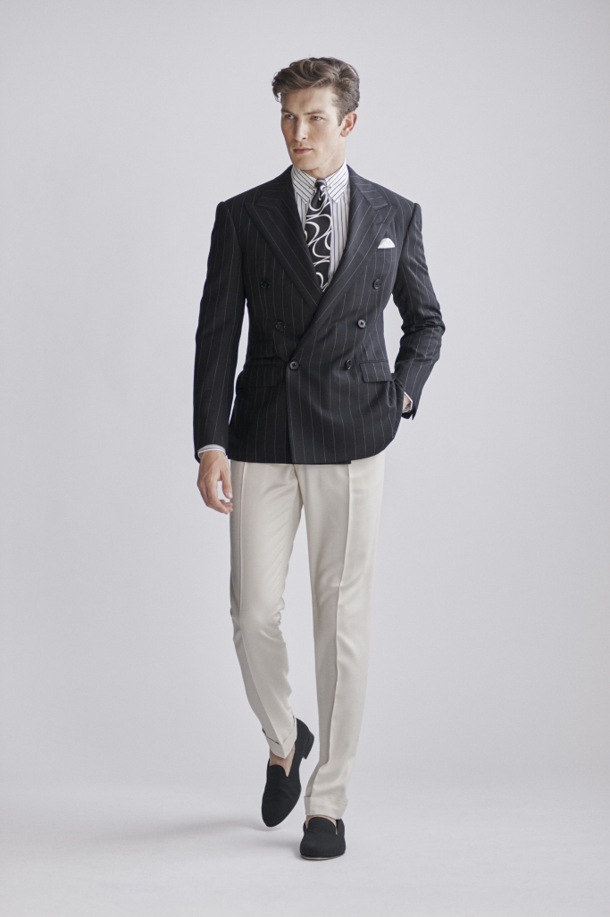Double-breasted suit jackets were made just like the ones in Lauren’s own closet, a wee bit broader at the shoulder, shaped at the waist and shorter at the bottom – with only the last button done.