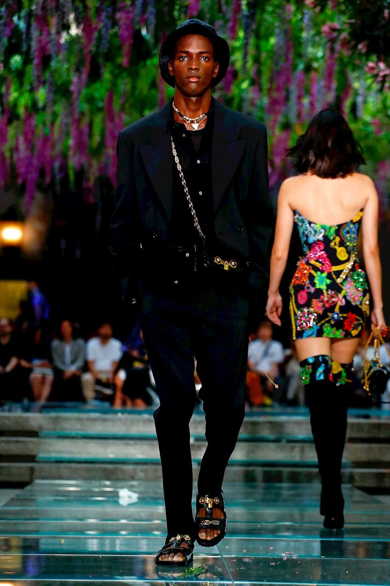 It’s Versace and she knows it – the #VersaceSS19 collection plays with the perception of sensuality in a masculine context, so relevant that it can’t help but be gossiped about, from the tabloids to the streets.