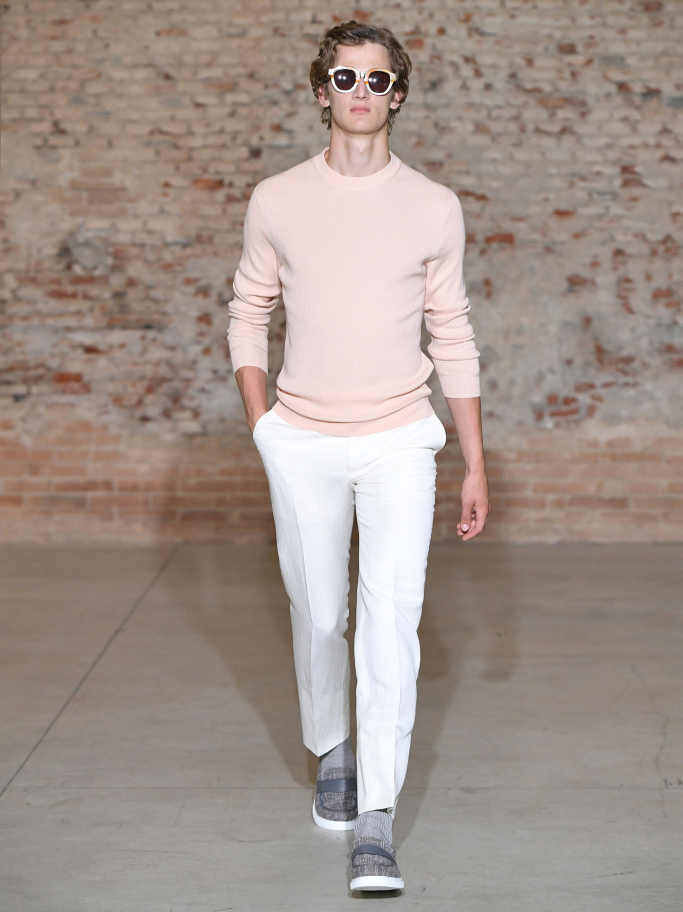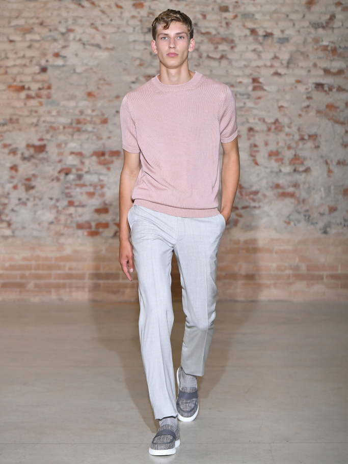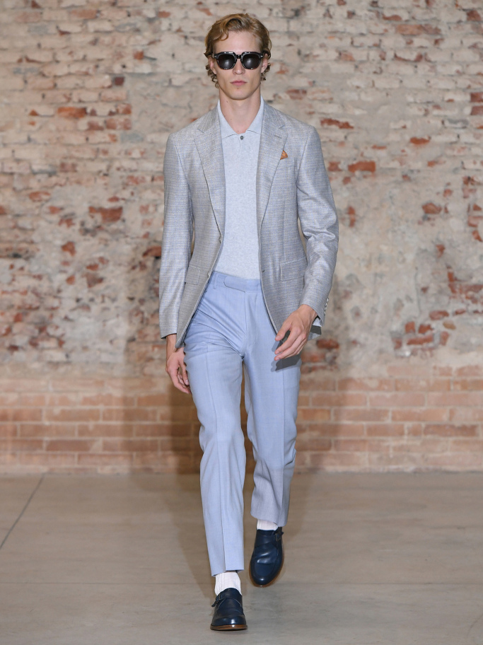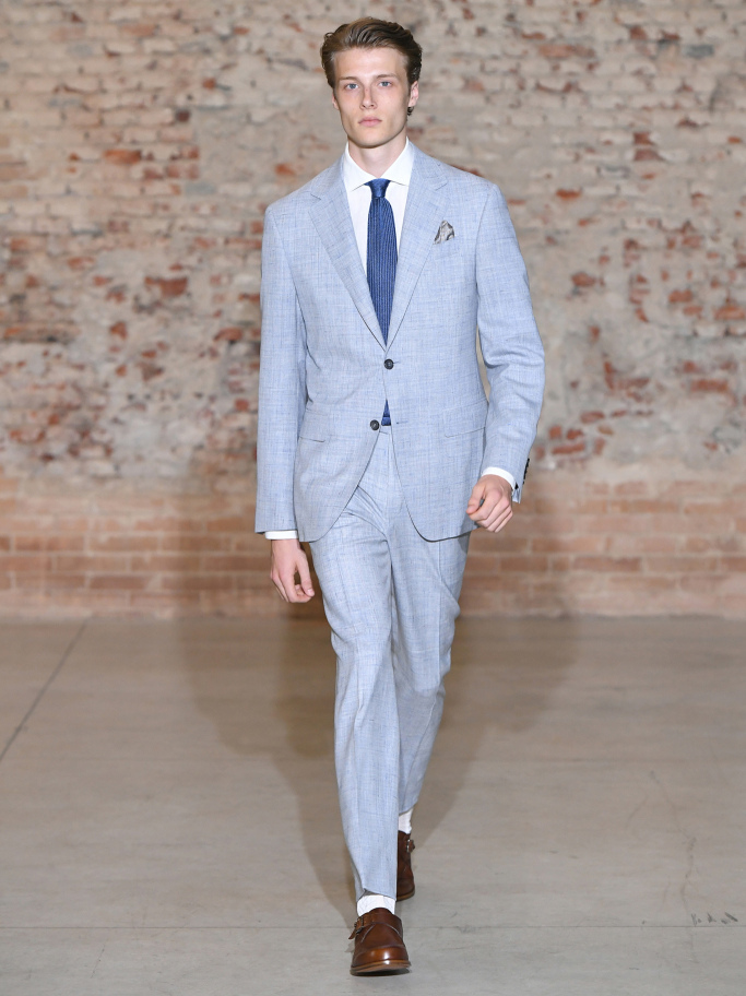 For his first collection at Canali Spring/Summer 2019 Milan, Hyun Wook Lee evolved the storied sartorial tradition of the brand with good taste and sophistication — and an impressive color palette that spanned from powder pink and ice gray to brick red and deep ocean blue.