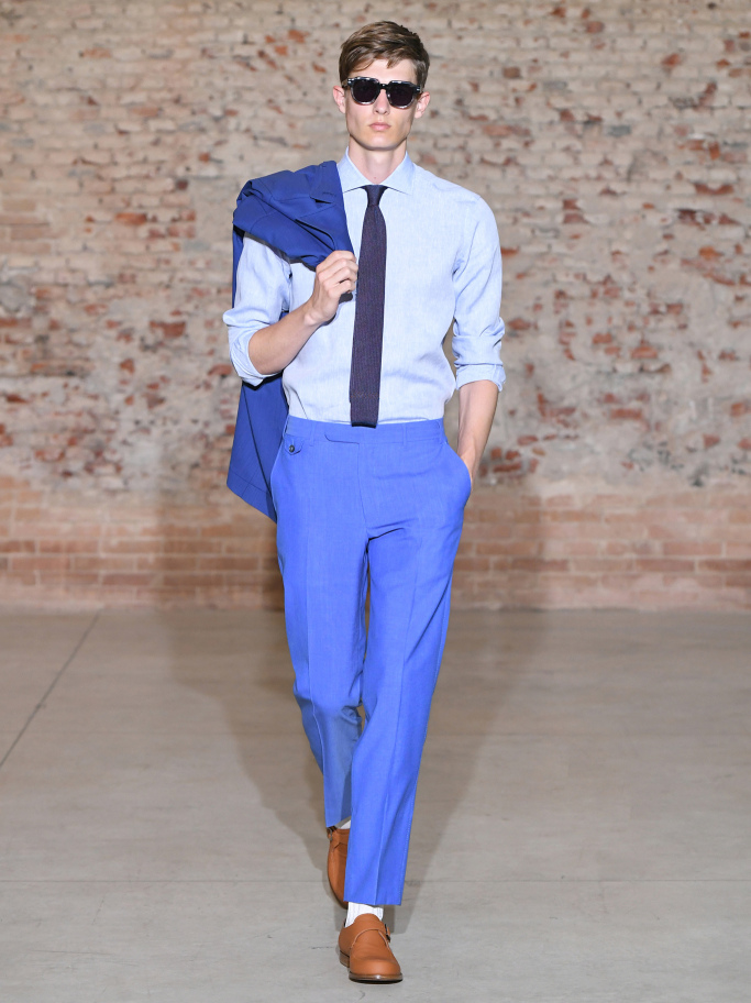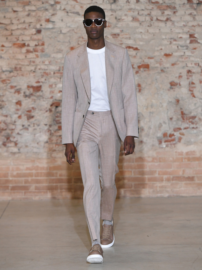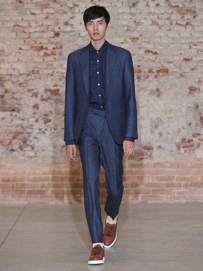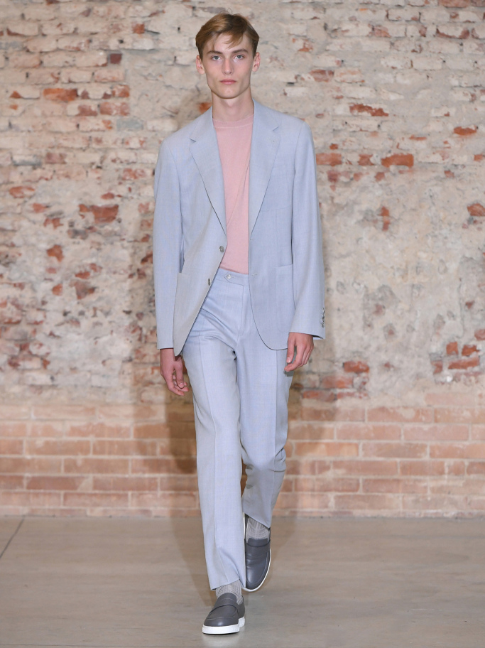 For his first collection at Canali Spring/Summer 2019 Milan, Hyun Wook Lee evolved the storied sartorial tradition of the brand with good taste and sophistication — and an impressive color palette that spanned from powder pink and ice gray to brick red and deep ocean blue.