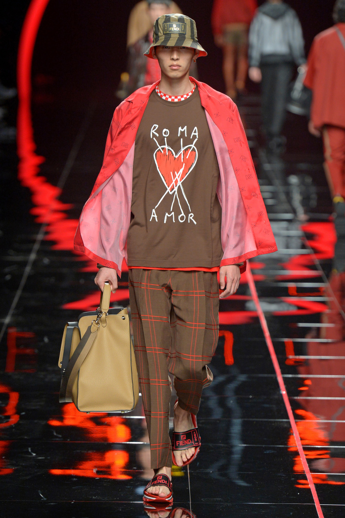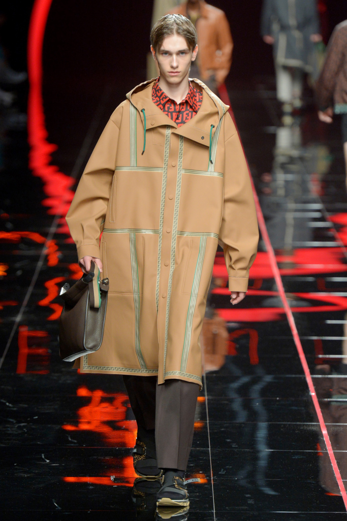 “It’s a collection that’s really about the identity of the Fendi man and the rules that belong to the Fendi DNA. We’re working continuously on reusing the codes from Fendi’s history in a different way,” she said, adding that the Roma anagram really captured the spirit of the collection.