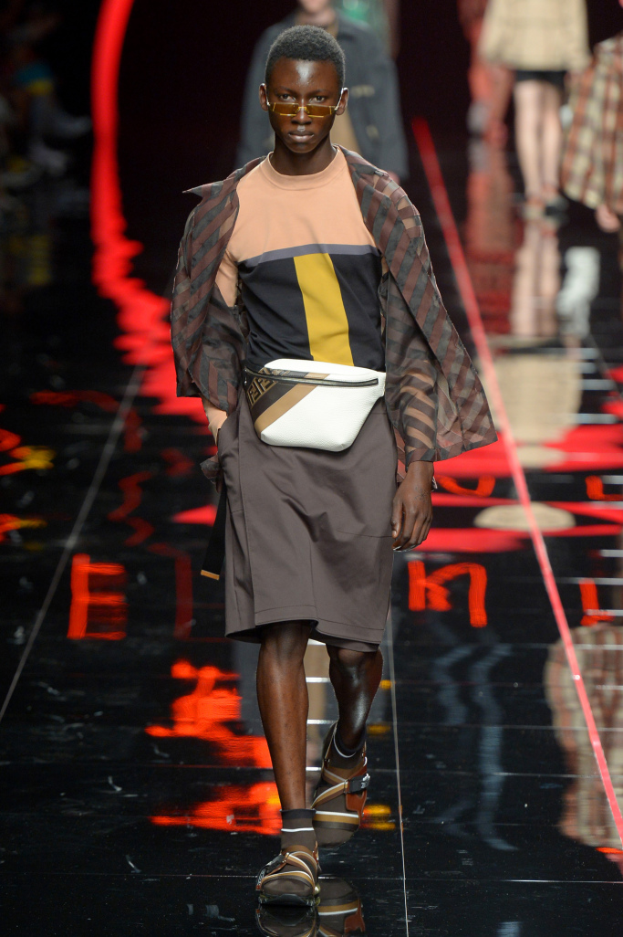 What’s in a name? What’s in a logo? Silvia Venturini Fendi Spring/Summer 2019 Milan pondered these questions as she put together this breezy collection with a streetwear twist — and a load of dark arts motifs like demons and snakes.