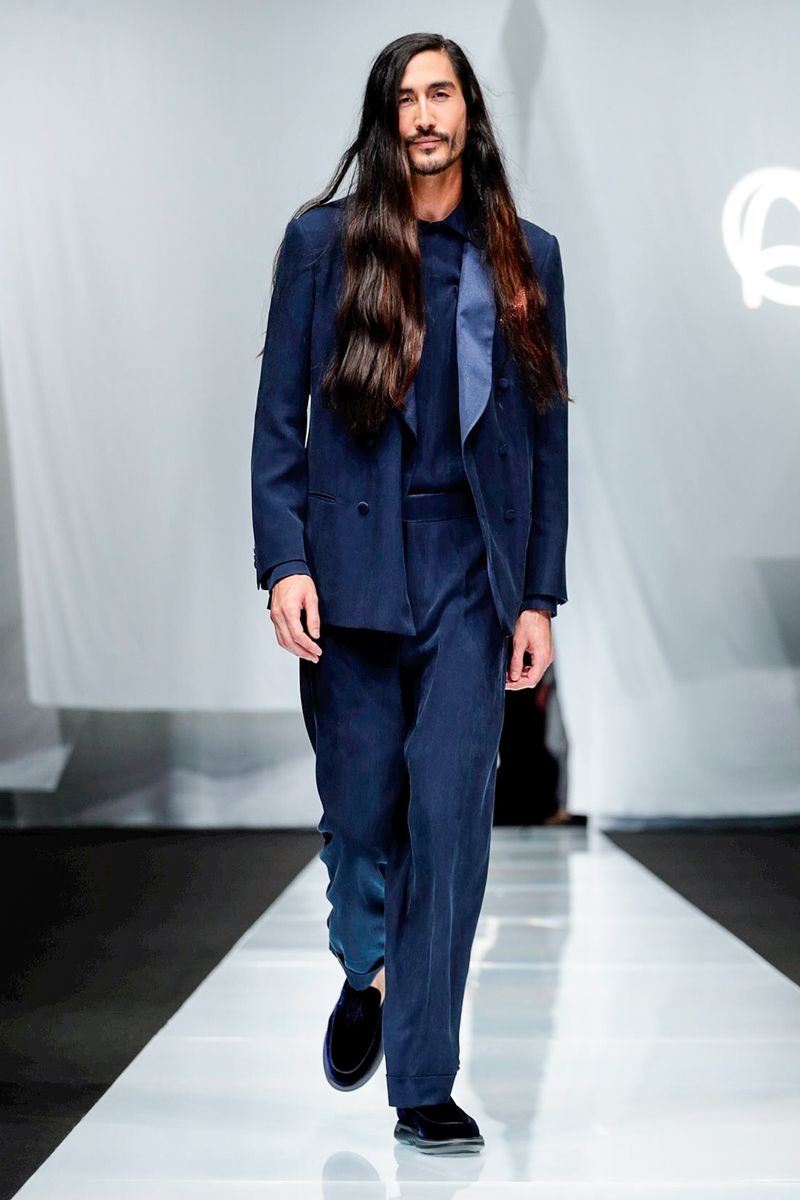 The super-elegant collection – centered around the double-breasted jacket – catered to the languid lifestyle of a global nomad traveling around the world, pulling on myriad references but with a cohesiveness and coziness to his wardrobe.