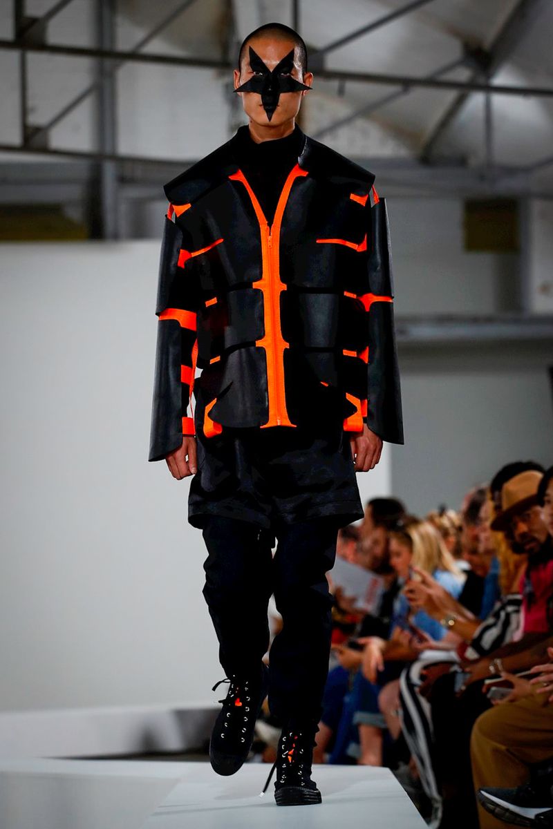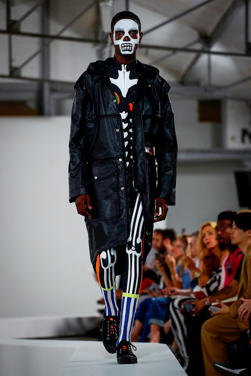 We have to mention that, he made this stunning clogs shoes in marvelous brilliant shoes, mixed it up with applications in the hats, also this structural skeletons square jackets.