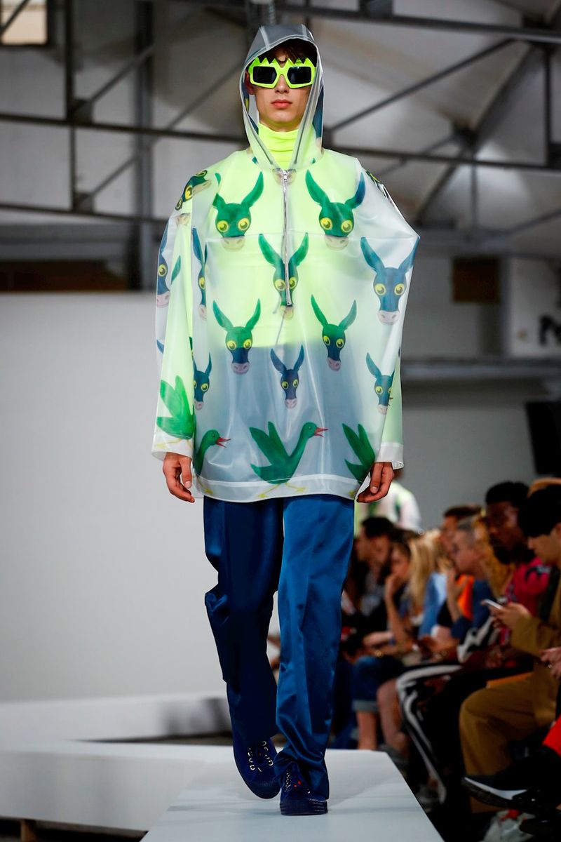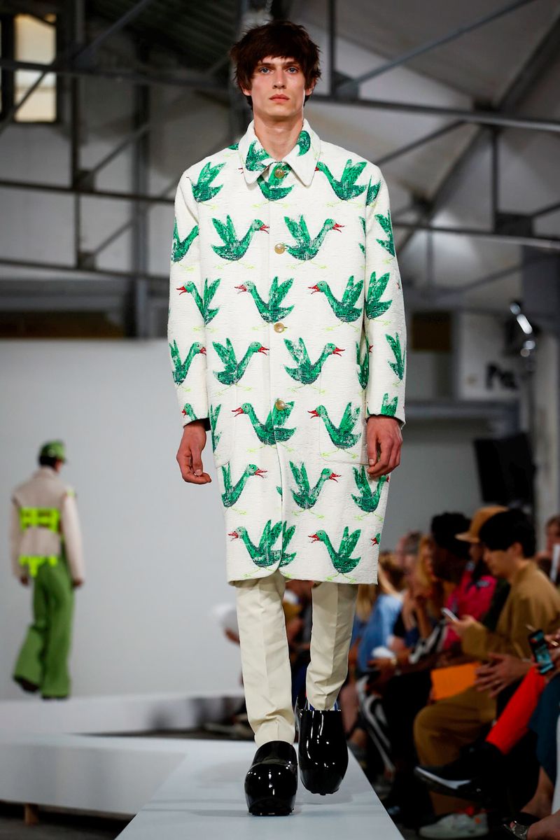 And then you can turn it around and see this zig-zag catwalk, and you can see this green ducks pattern on every trouser, shirt, jackets and not only that.