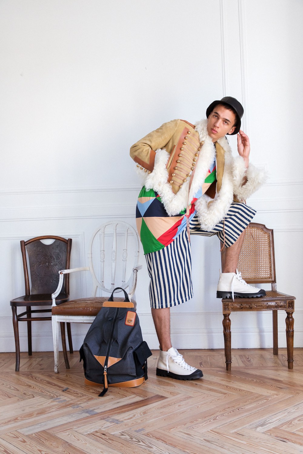 Headed up by an advertising campaign featuring actor Josh O’Connor, LOEWE’s new menswear collection flits across time and space to illicit a boyish study of dressing up.