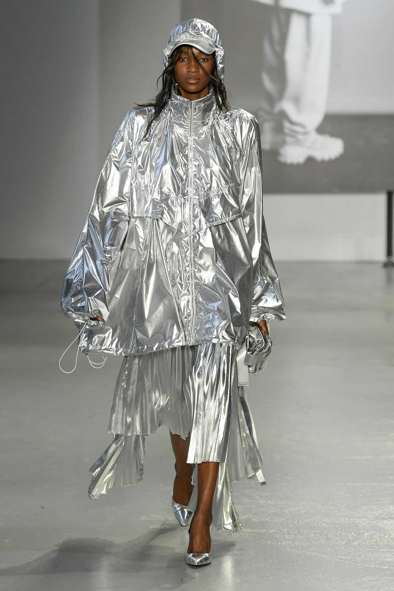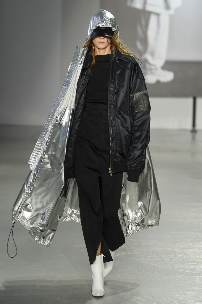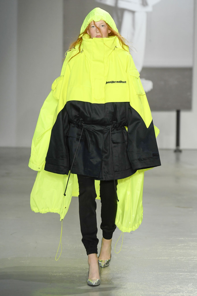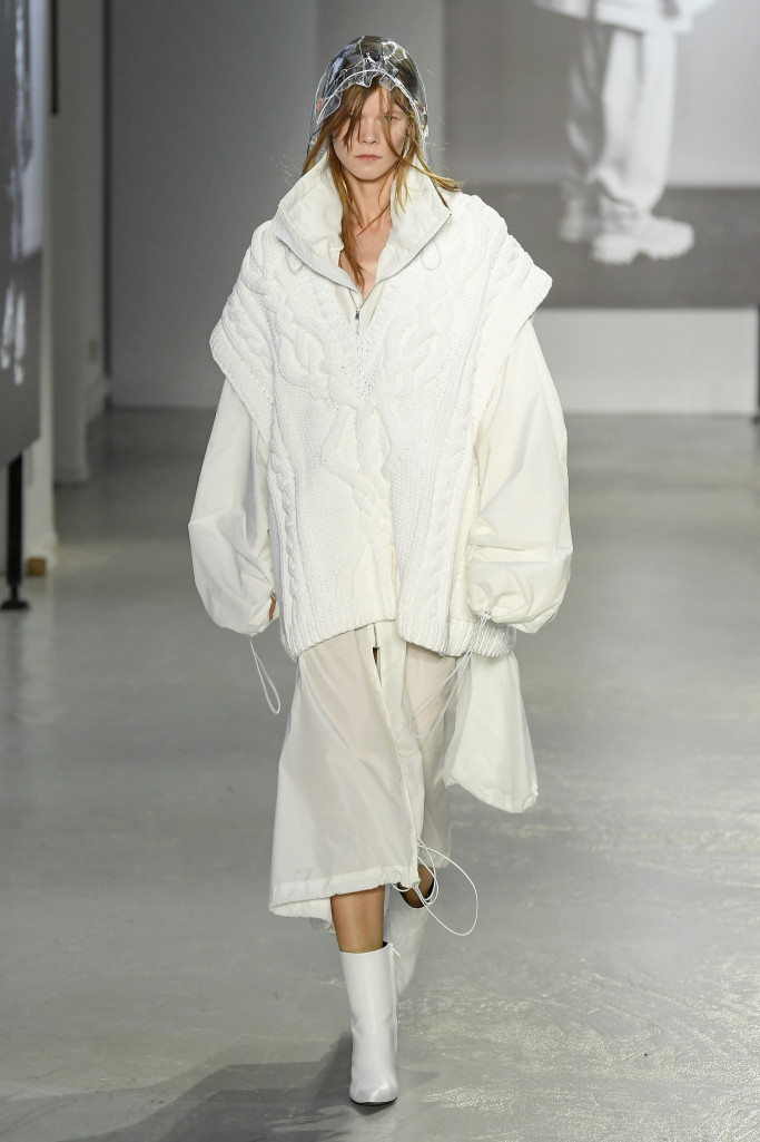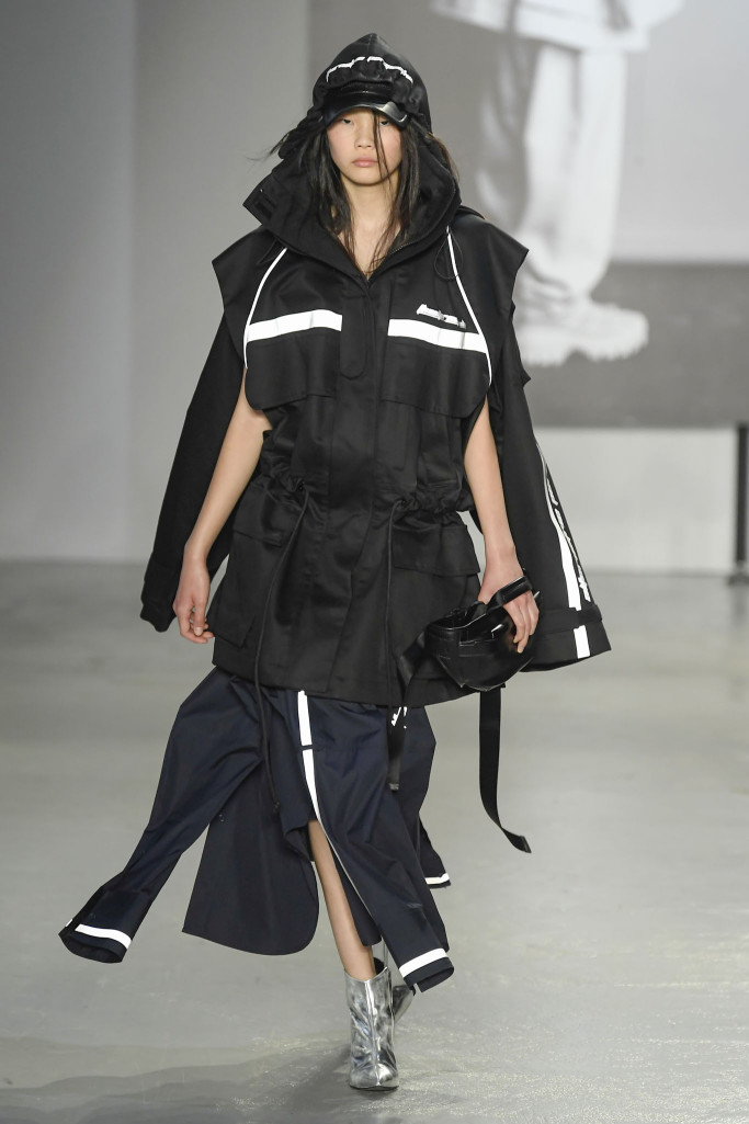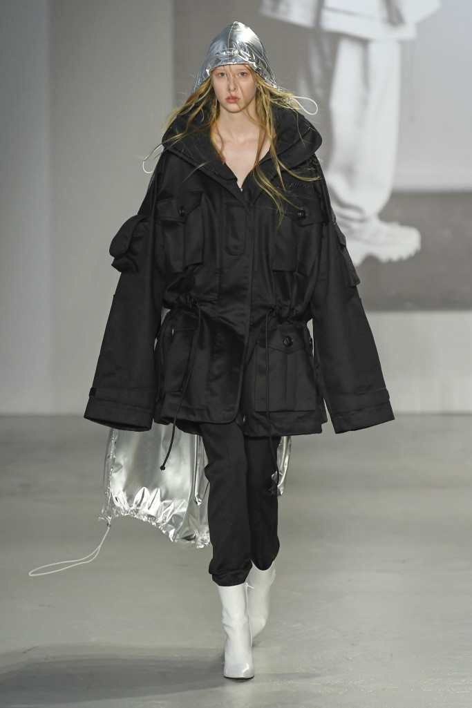 The ways Juun J transforms the sportswear into a full mix of fashionable oversized and large pieces like long rain coats, oversize capes and big really big jackets.