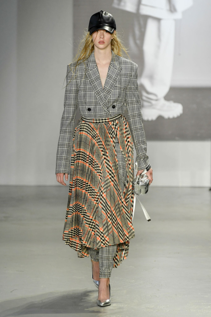 Designer brings sporty posh trends with brilliant colors, shiny colors, silver, lime, greens, and then converts squares for winter jackets.