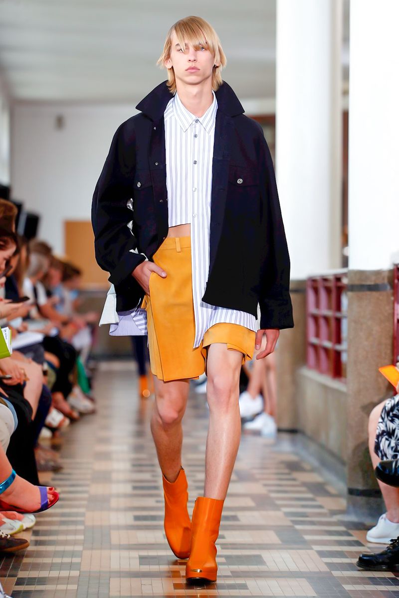 A blurred gender is underlined by accessories, with healed leather kinky boots, chokers, and turn-table inspired handbags accentuating the feminine.