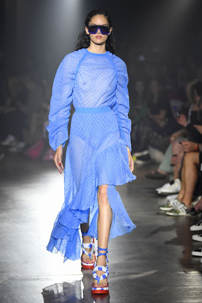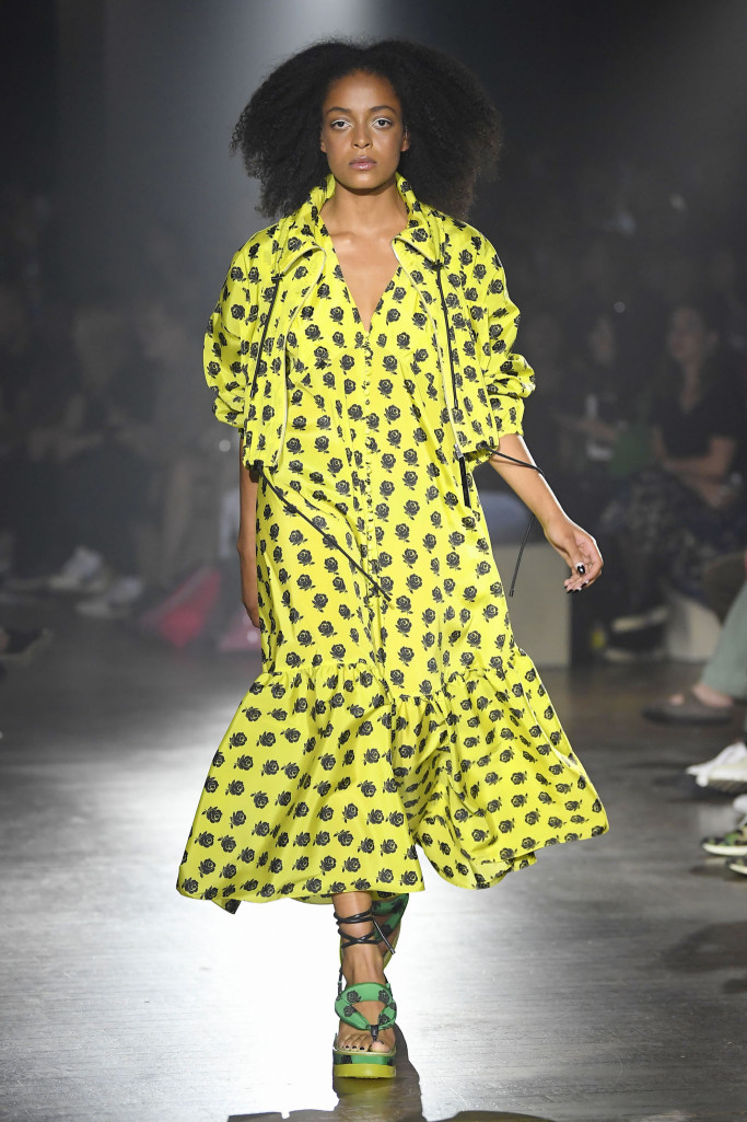 Unfortunately, the clothes they showed didn’t live up to the setting. The brand’s aesthetic, once synonymous with jungle prints and Asian references, has skewed increasingly eclectic of late, with kitschy cool designs that reference the designers’ Californian upbringing.