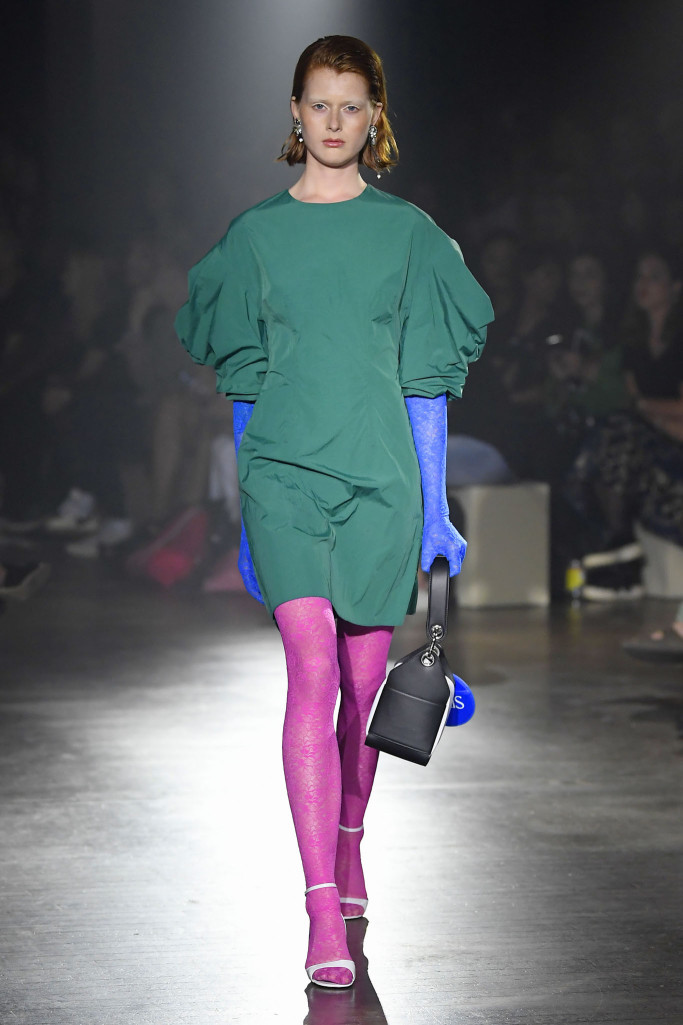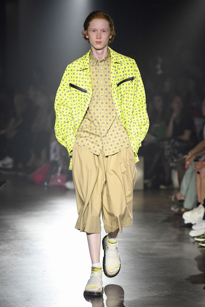 Rather, the men’s lineup revolved around a sporty silhouette grounded in acid-bright colors and oversized volumes.