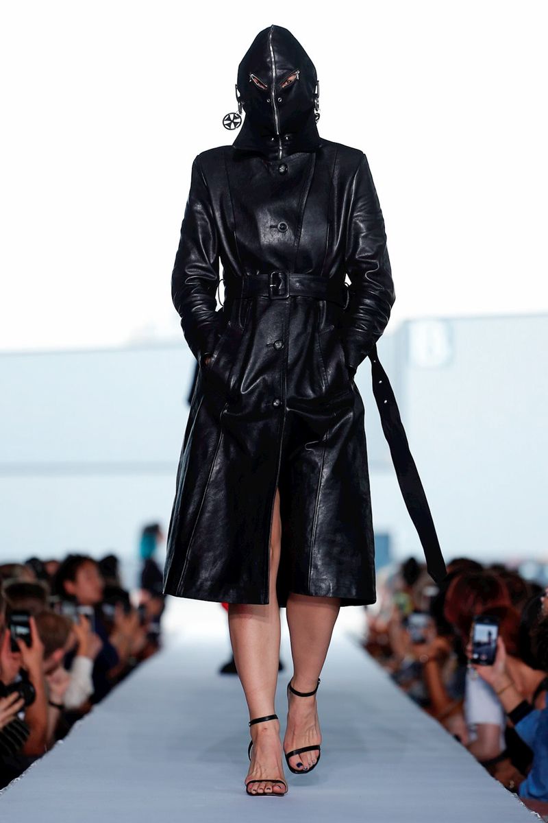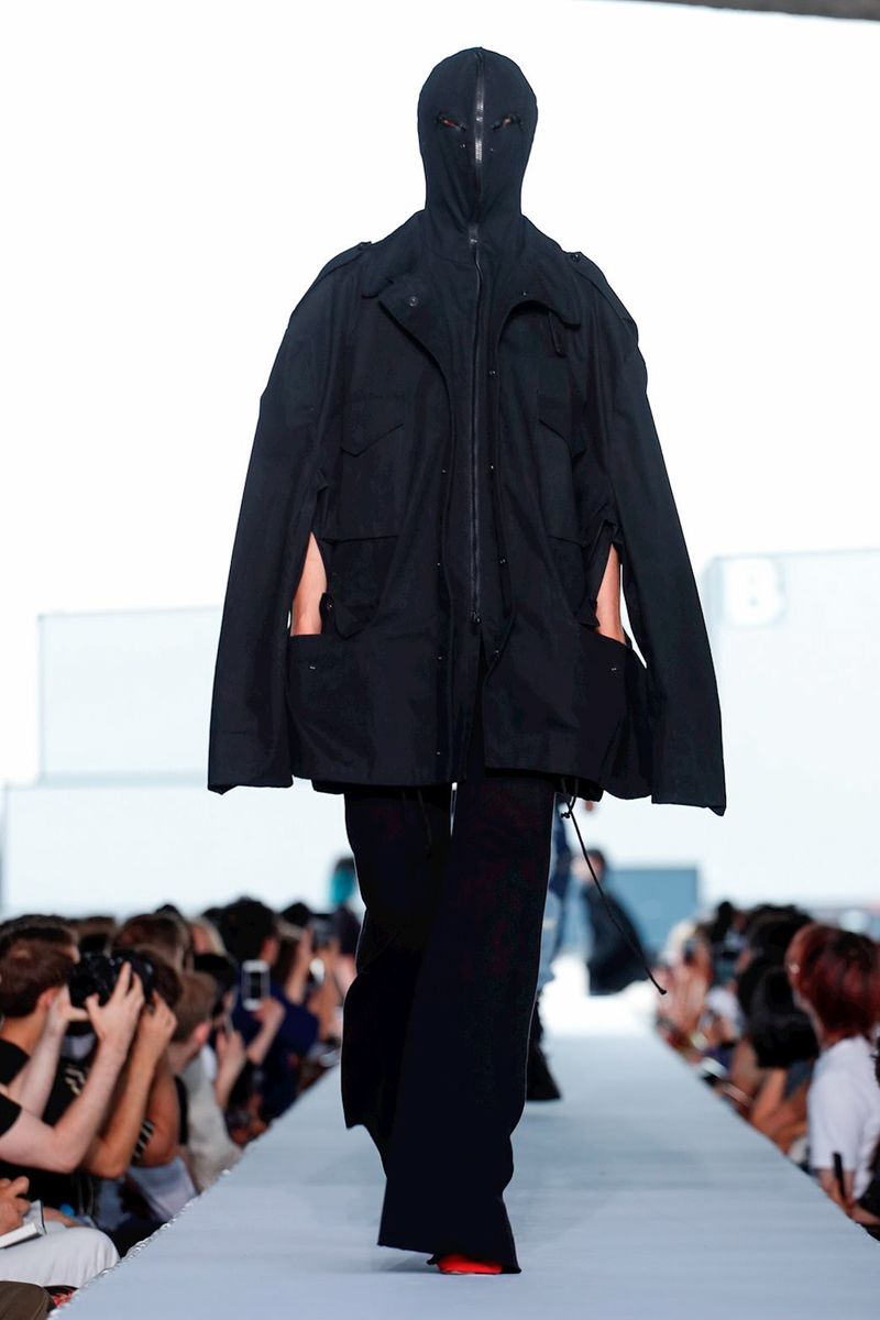 But the menacing, fascist undertones left a stronger impression, with Gvasalia using black fetishist-style masks to symbolize the “erasing of identity” that he endured.