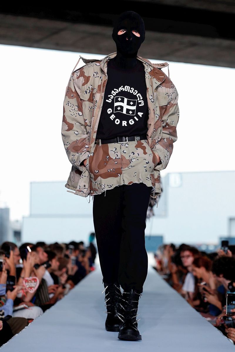 Vetements RTW Spring/Summer 2019 Paris in collection faced his fears, exploring his painful memories of living through the Georgian Civil War.