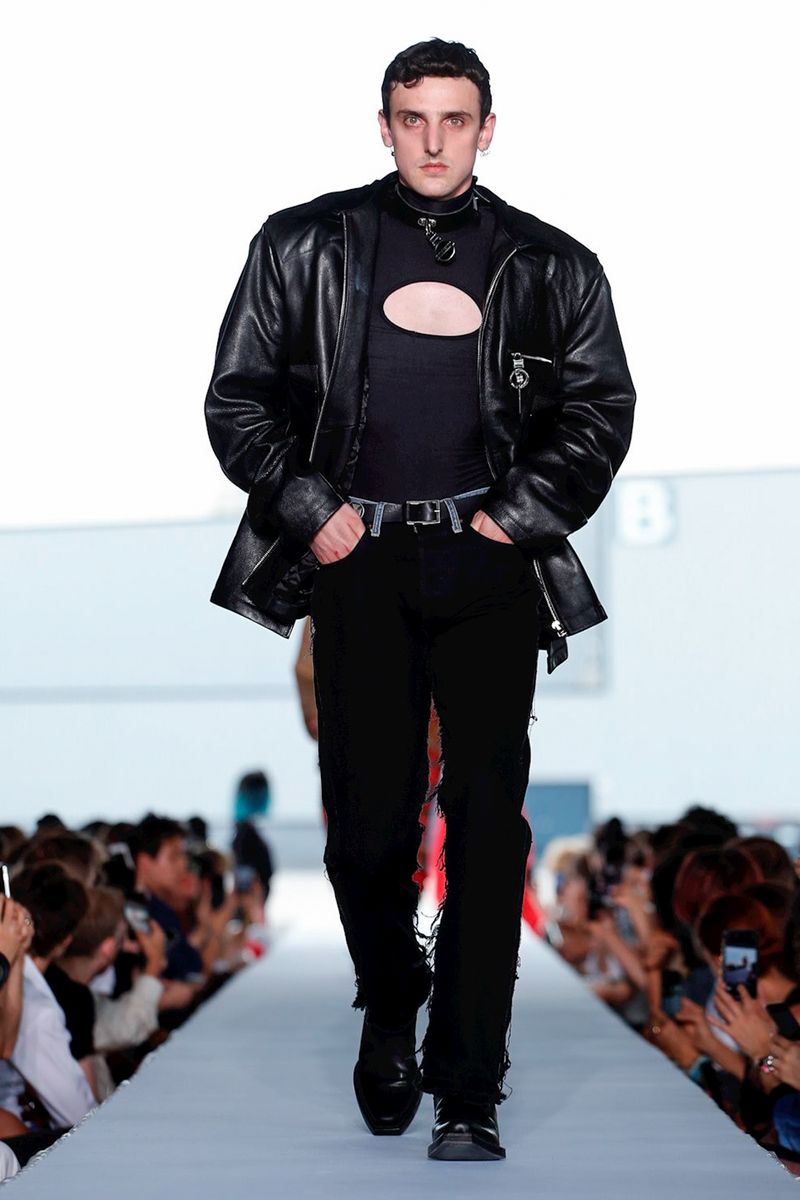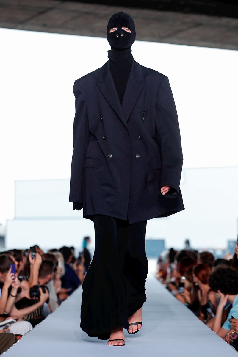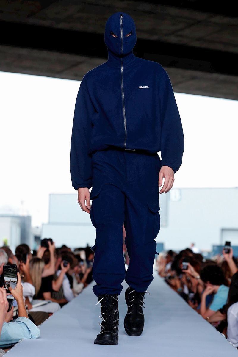 But the menacing, fascist undertones left a stronger impression, with Gvasalia using black fetishist-style masks to symbolize the “erasing of identity” that he endured.