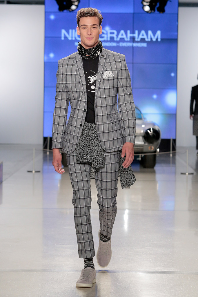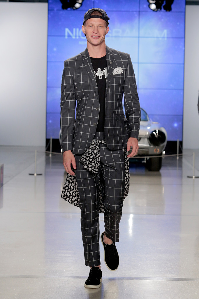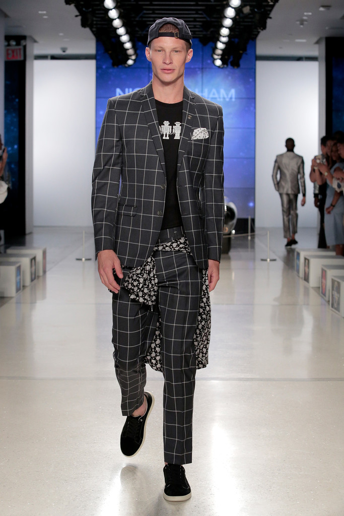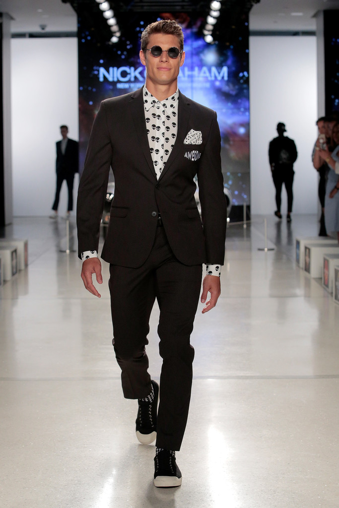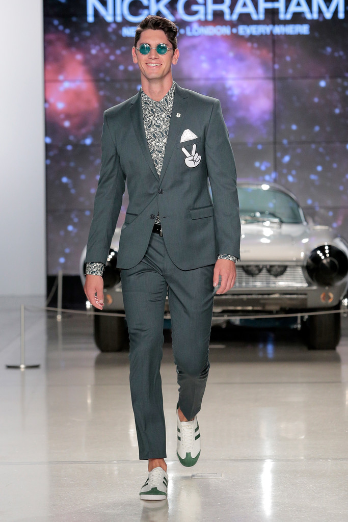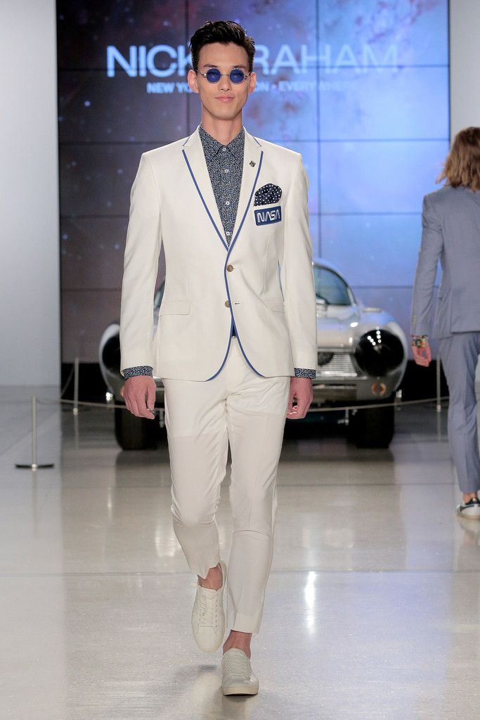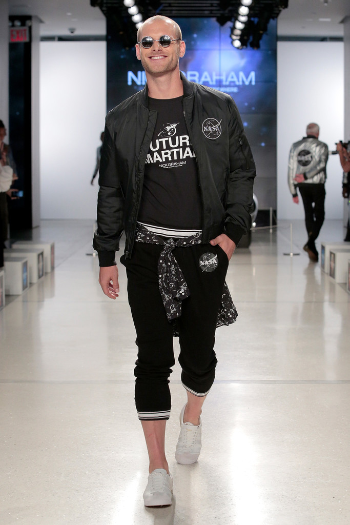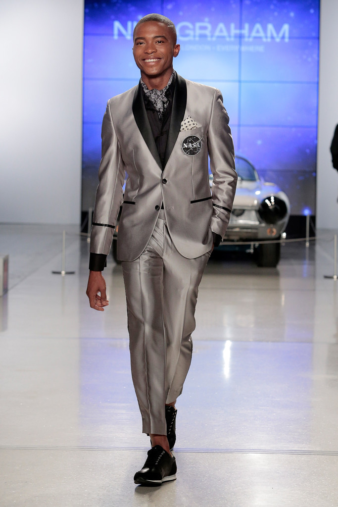 Fashion designer Nick Graham pays homages to NASA rockets in New York Fashion Week.