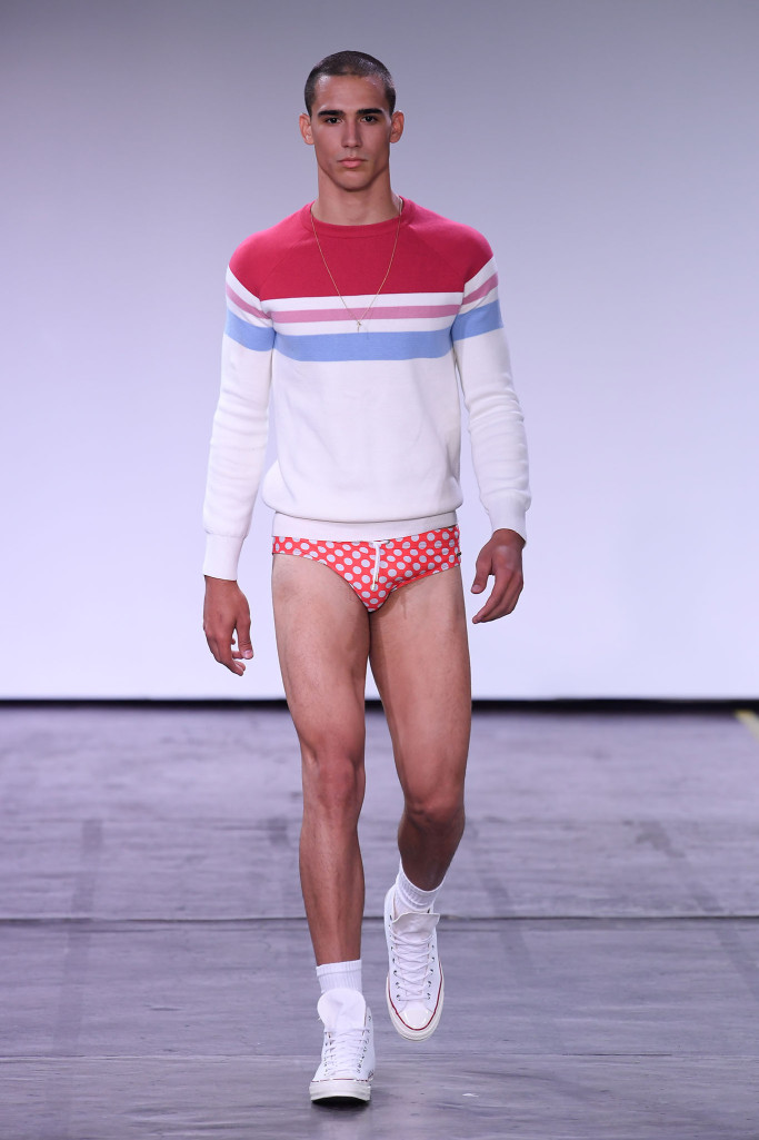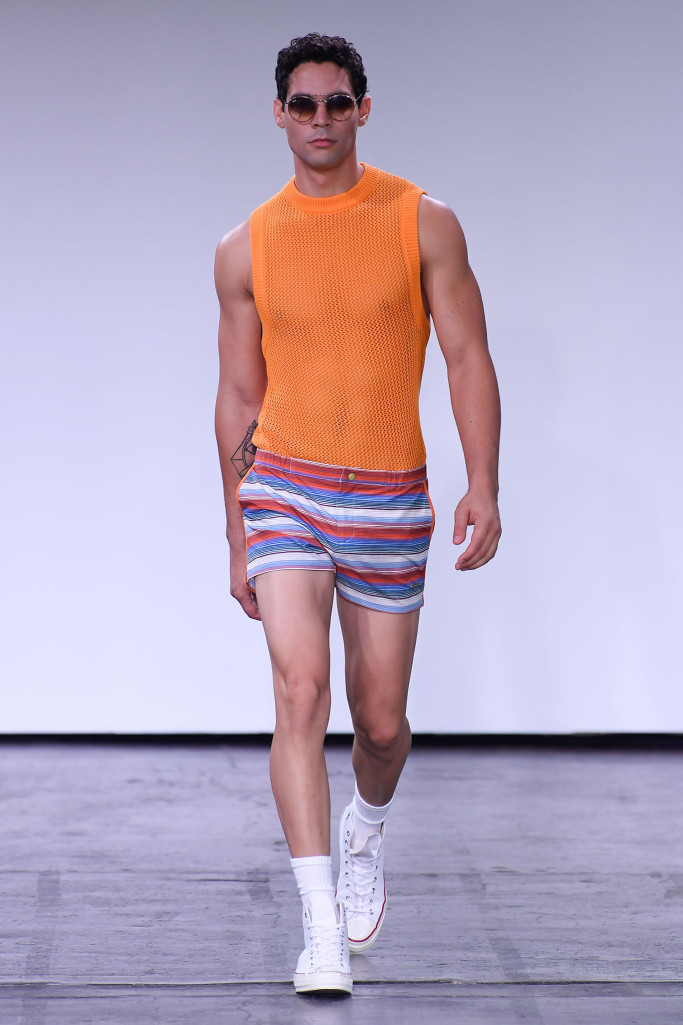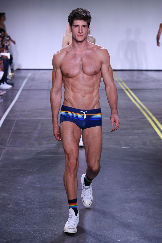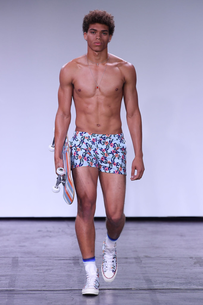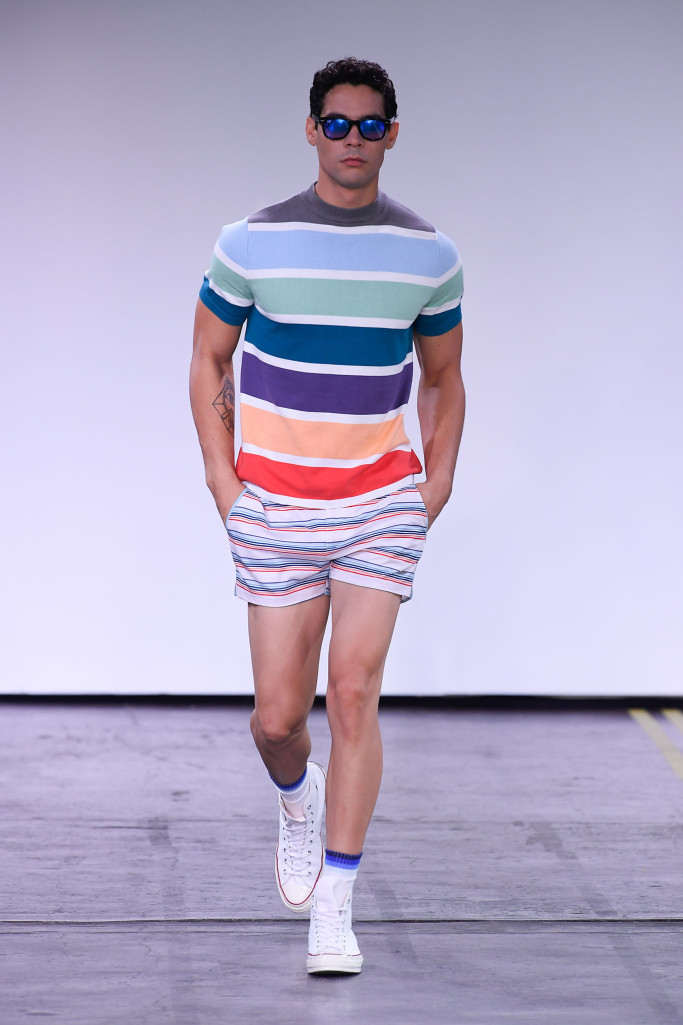 He and Ronen Jehezkel trotted out a lovely array of pastel colors, floral prints and retro graphic stripes on swimwear.