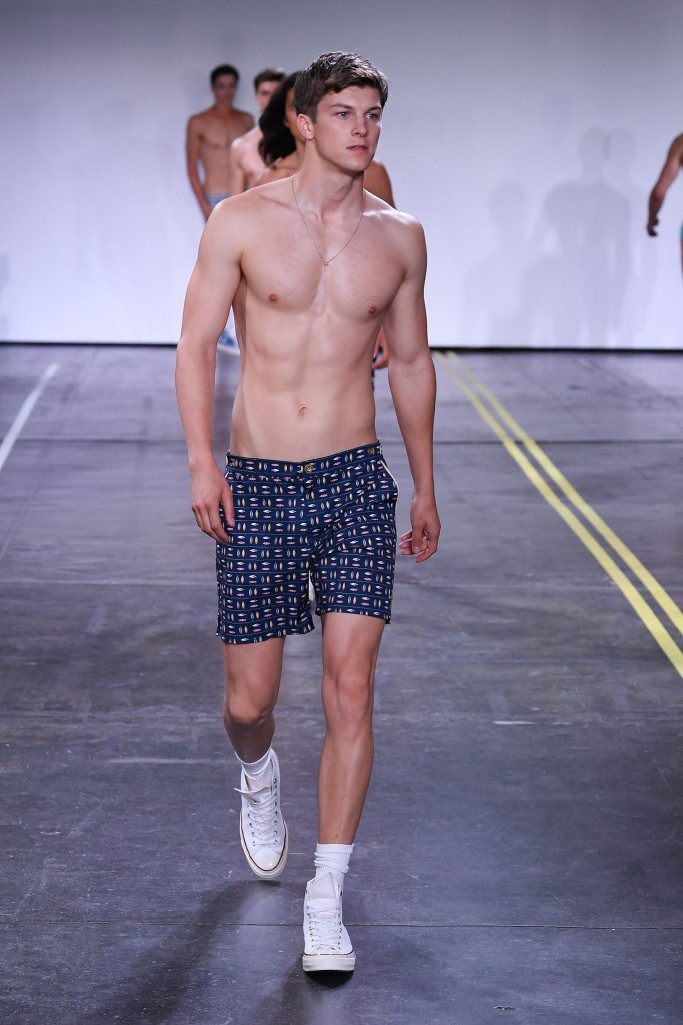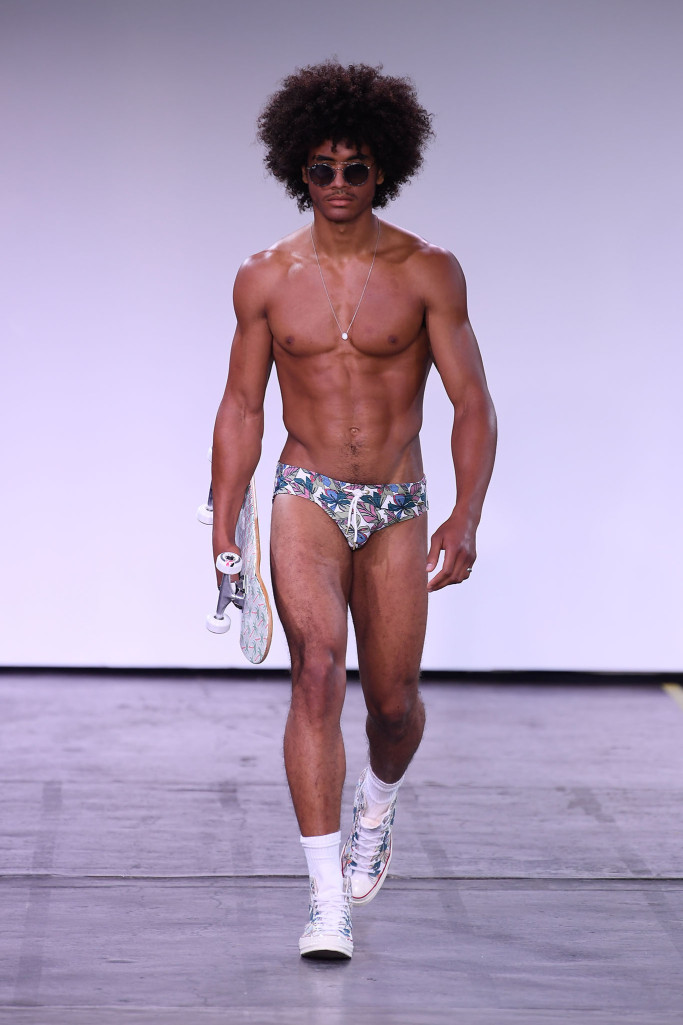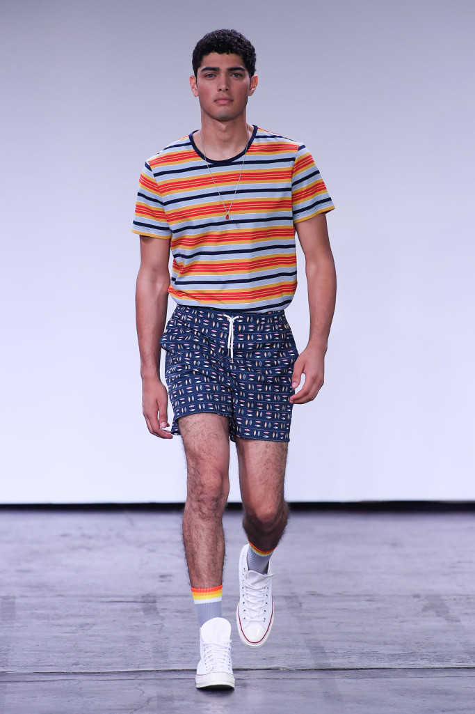 He and Ronen Jehezkel trotted out a lovely array of pastel colors, floral prints and retro graphic stripes on swimwear.