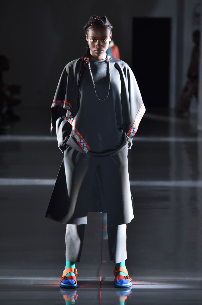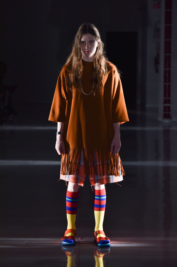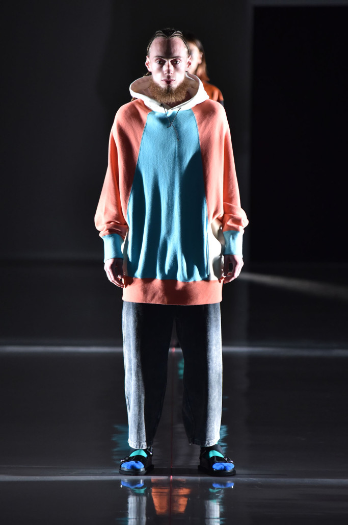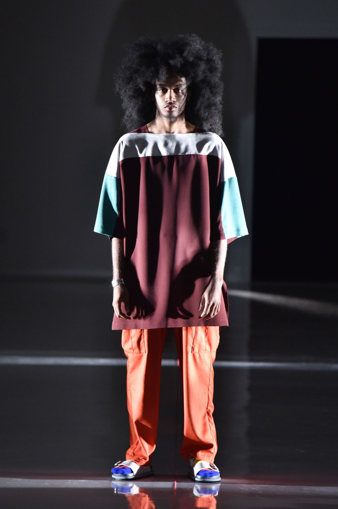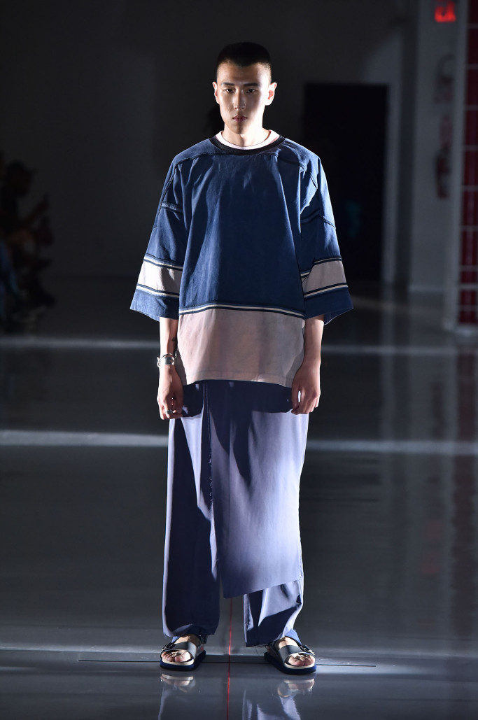 It spanned logo T-shirts, long-sleeved soccer jerseys and elongated coats adorned with oversize.