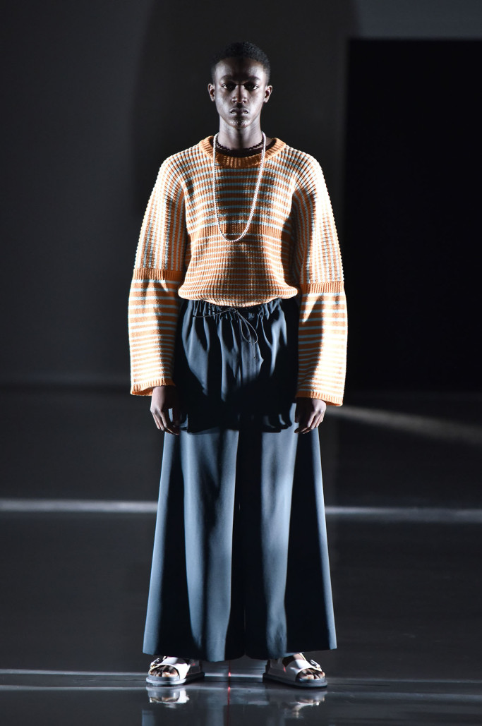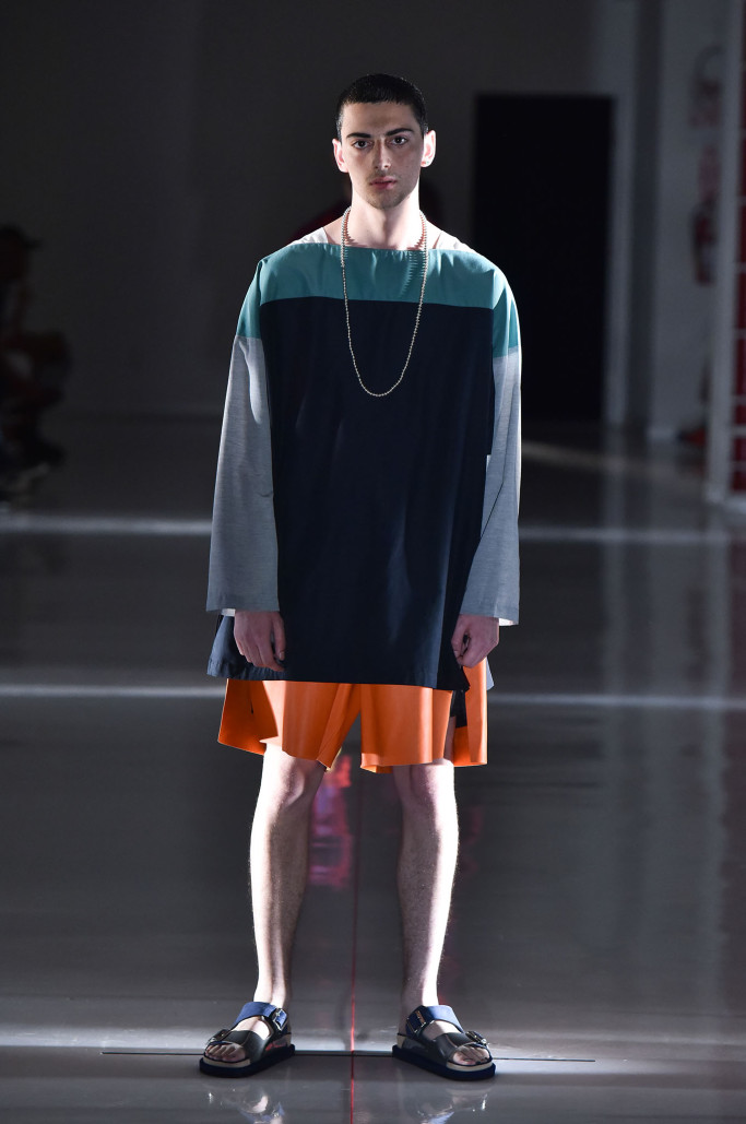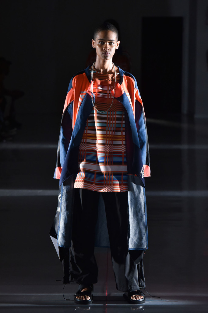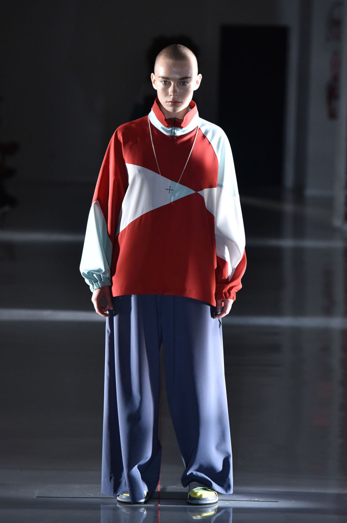 It spanned logo T-shirts, long-sleeved soccer jerseys and elongated coats adorned with oversize.