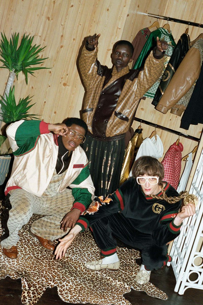 The new Gucci x Dapper Dan Collection 2018 of ready-to-wear and accessories features tracksuits in luxurious fabrics, printed silk scarves and oversize Gucci Eyewear glasses.