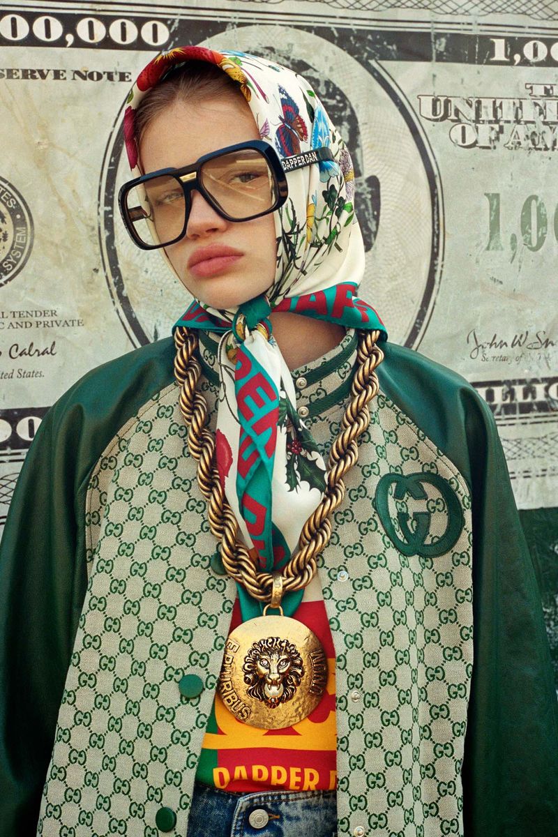 The new Gucci x Dapper Dan Collection 2018 of ready-to-wear and accessories features tracksuits in luxurious fabrics, printed silk scarves and oversize Gucci Eyewear glasses.