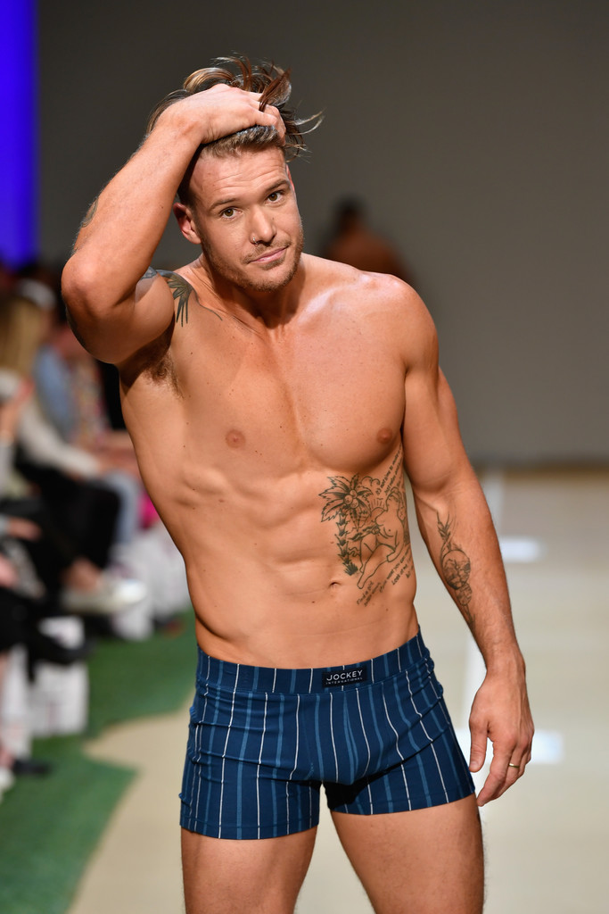 Logan Dodd walks the runway during the Jockey show during New Zealand Fashion Week 2018 at Viaduct Events Centre on August 30, 2018 in Auckland, New Zealand.Logan Dodd walks the runway during the Jockey show during New Zealand Fashion Week 2018 at Viaduct Events Centre on August 30, 2018 in Auckland, New Zealand.