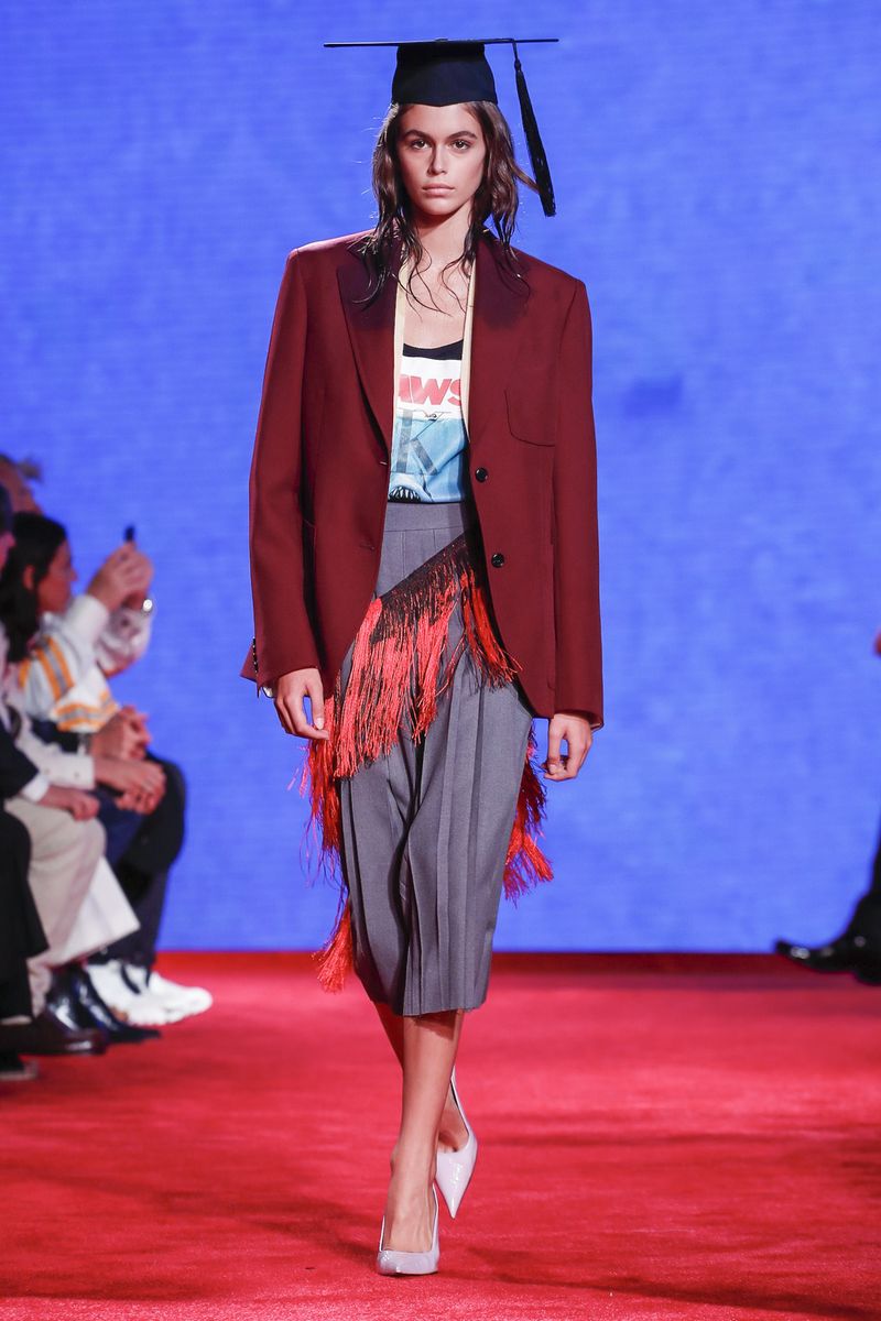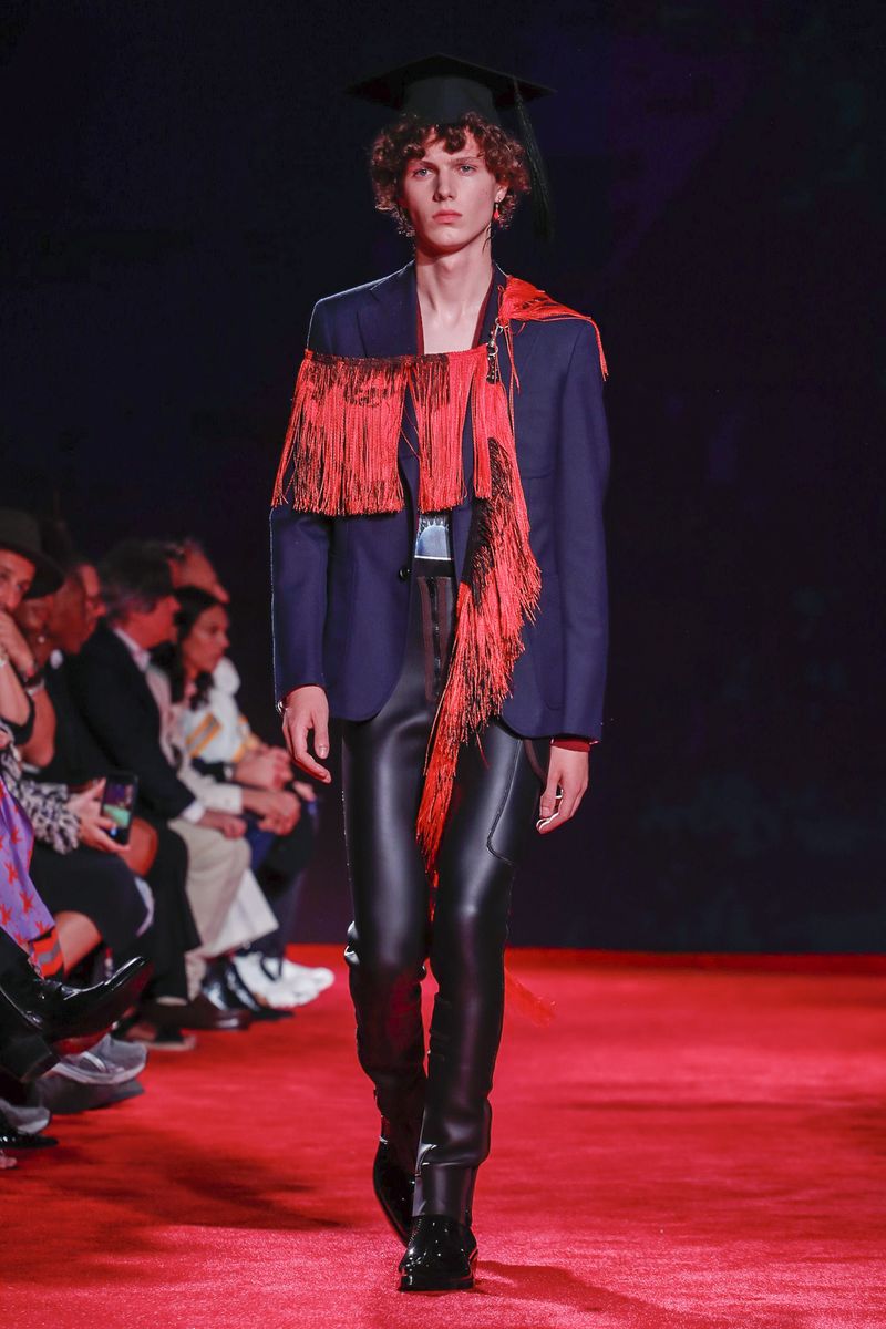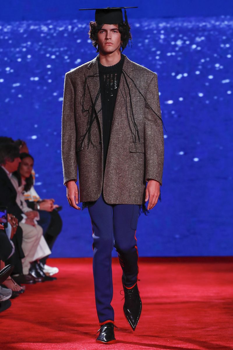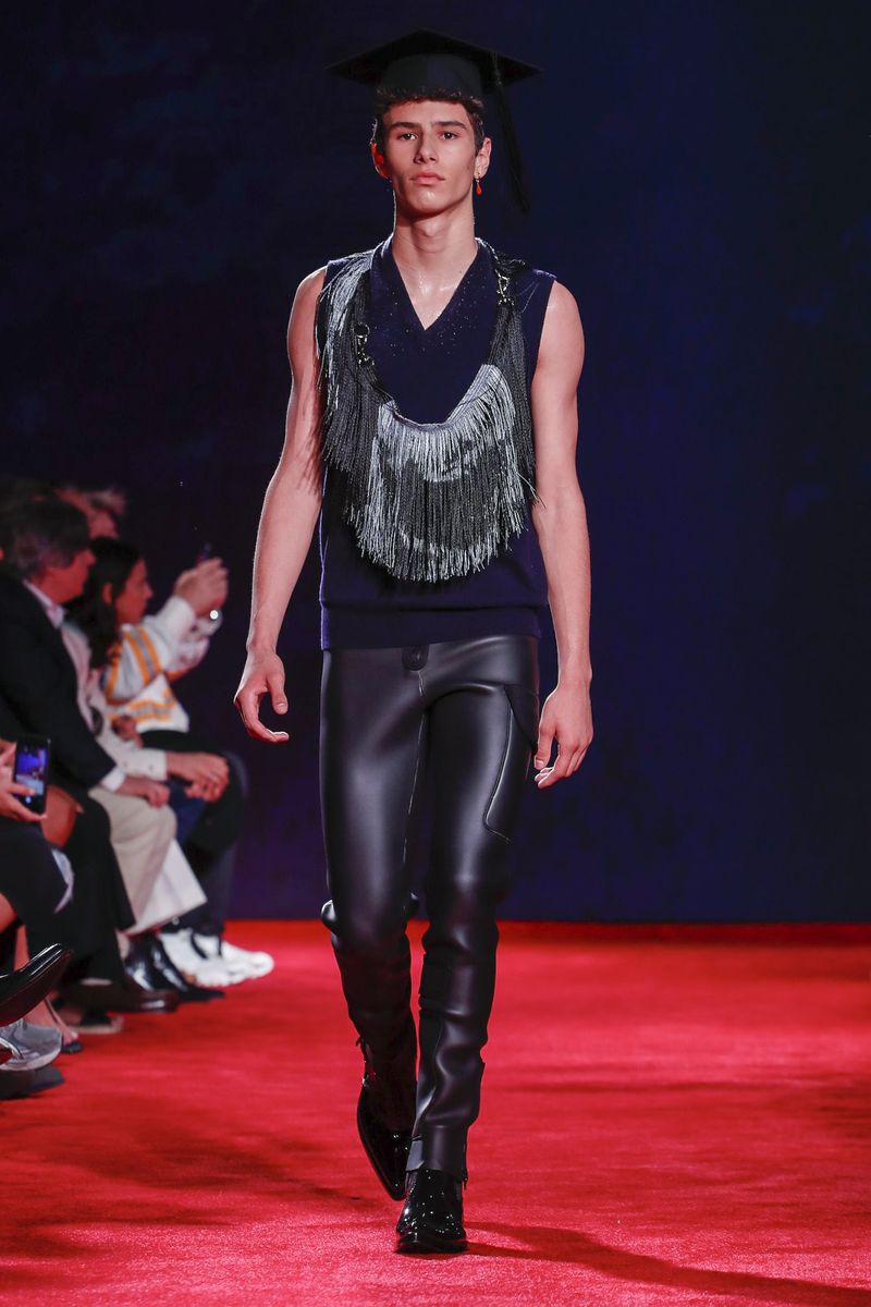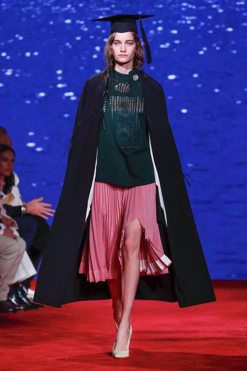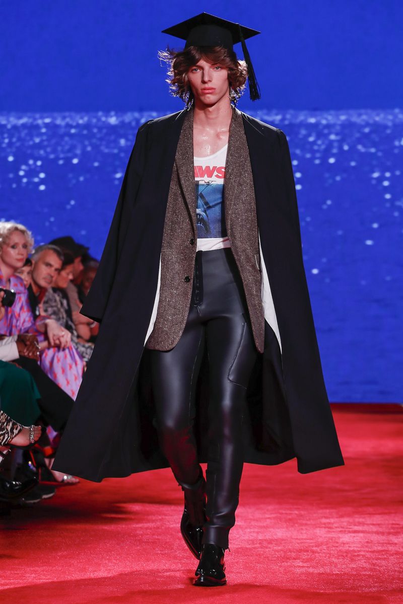 Mortarboards were obvious references to The Graduate. They seemed more like mood setting than potential hot sellers, though the graduation gowns thrown over models’ shoulders looked compellingly chic.