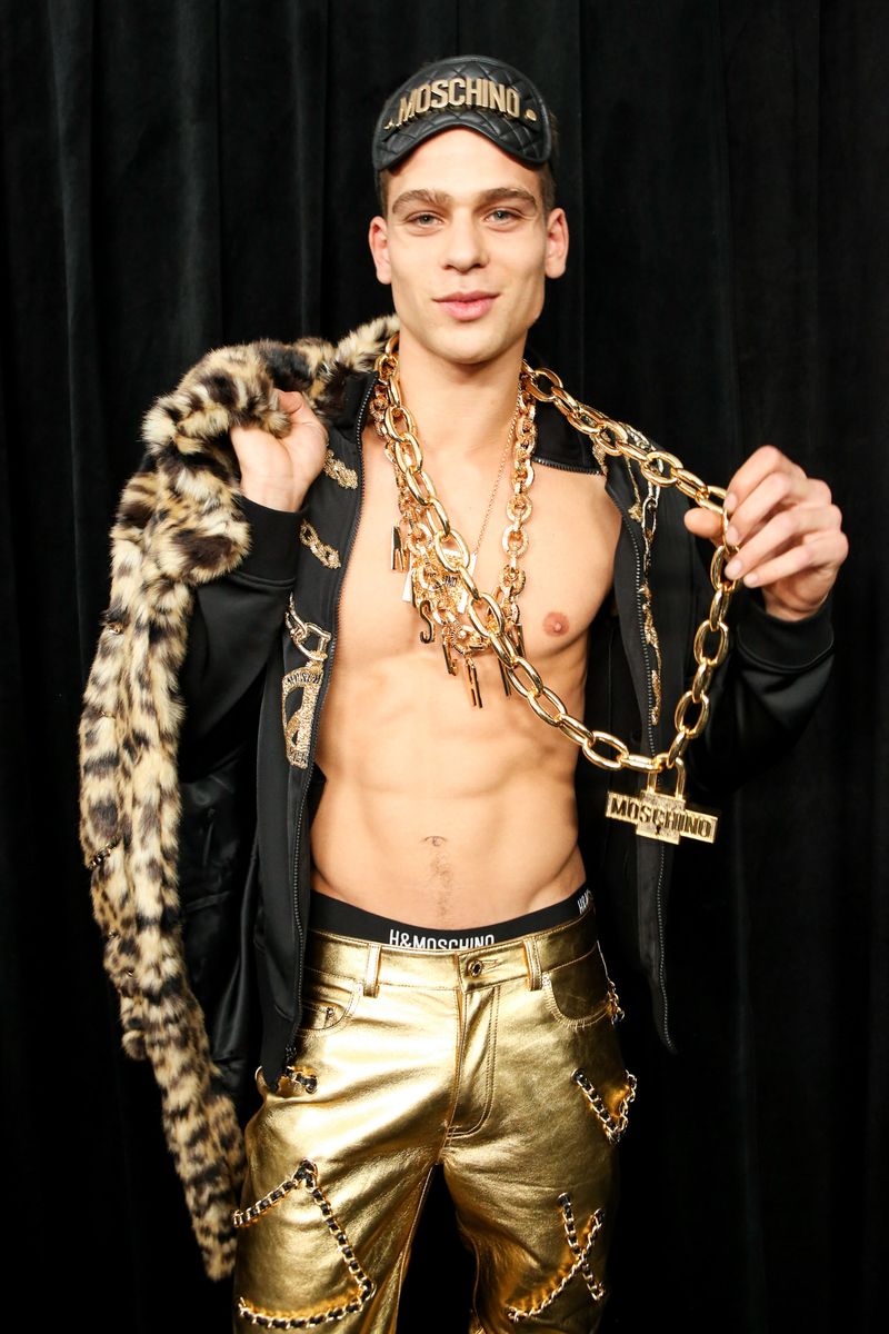 The chicos on the runway modeling the new fashion which Jeremy acclaimed: “Whenever I design, I think about my friends,” Scott says. “The Moschino x H&M lookbook is like a party; celebrating the fun, the pop, the creativity, and the energy of the people and the collection.”