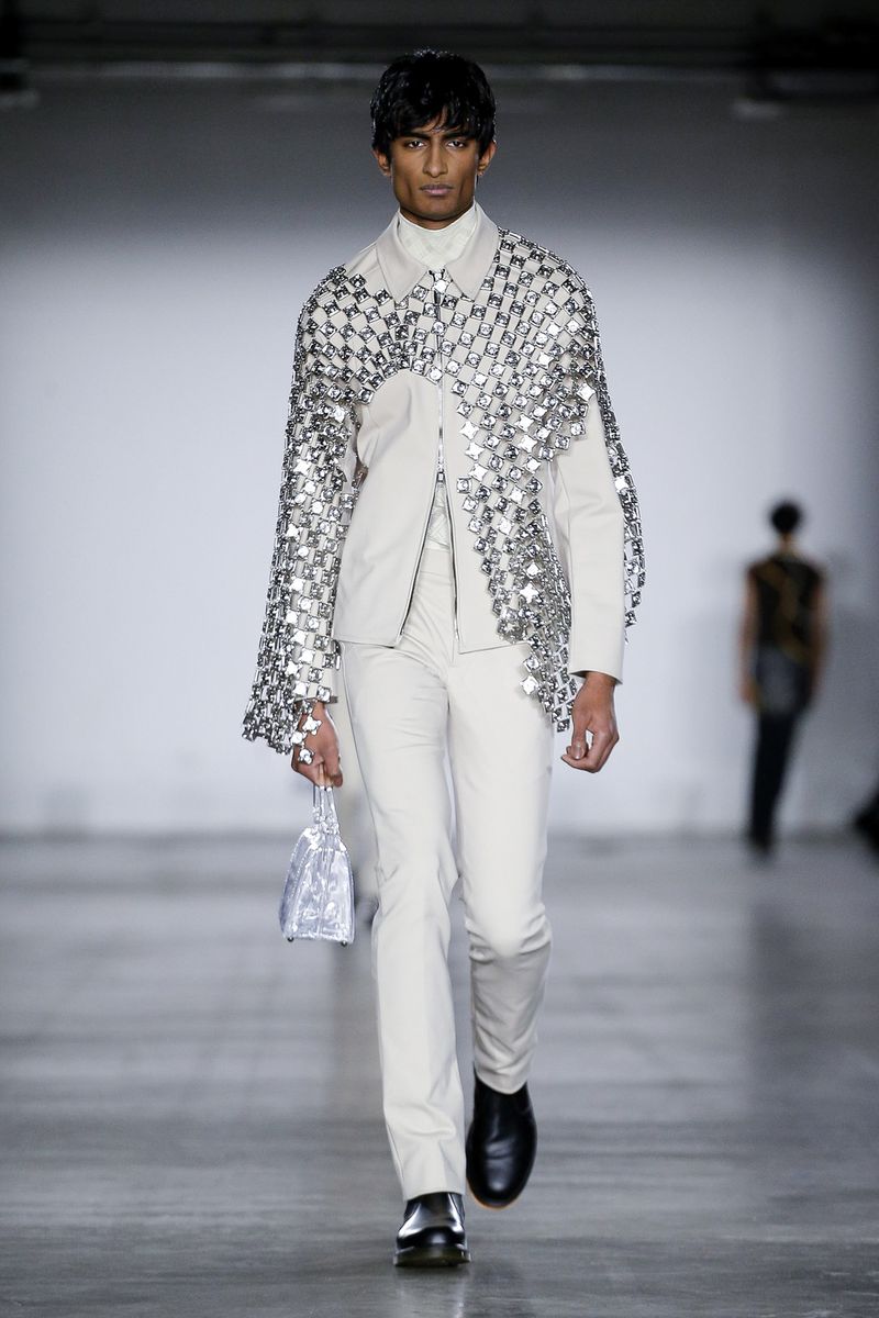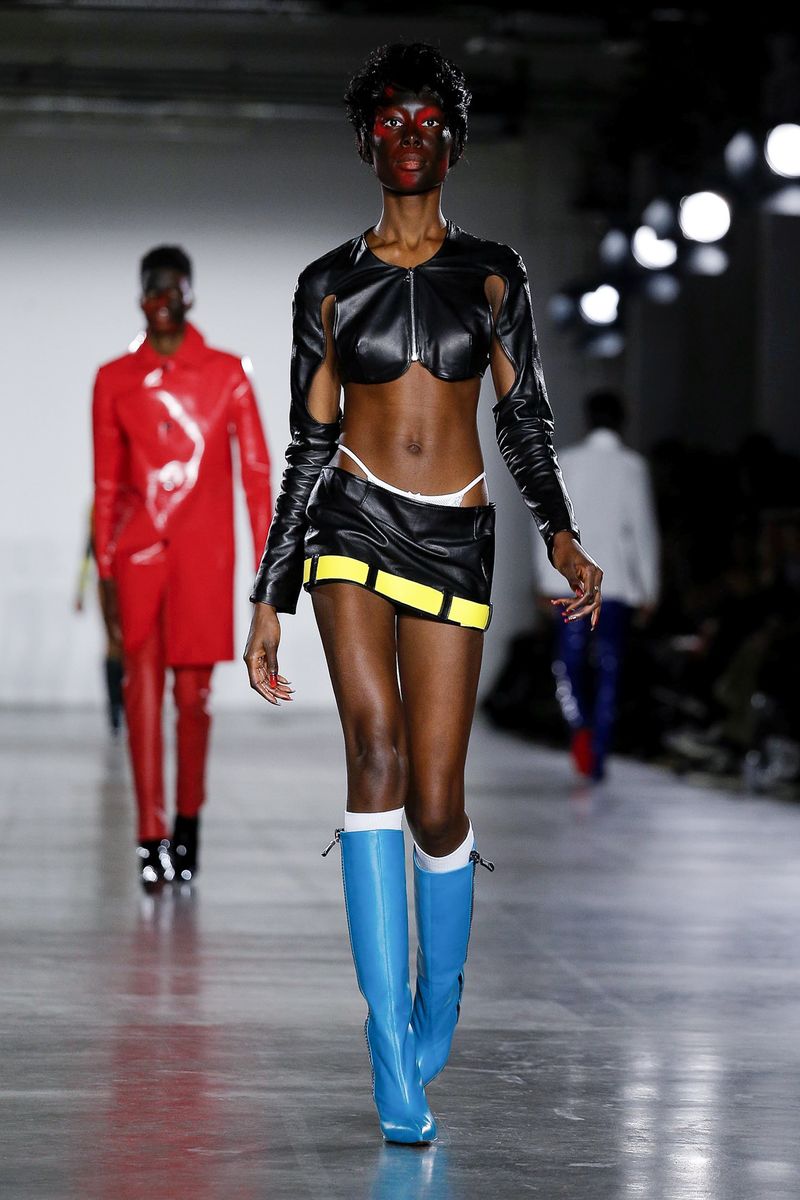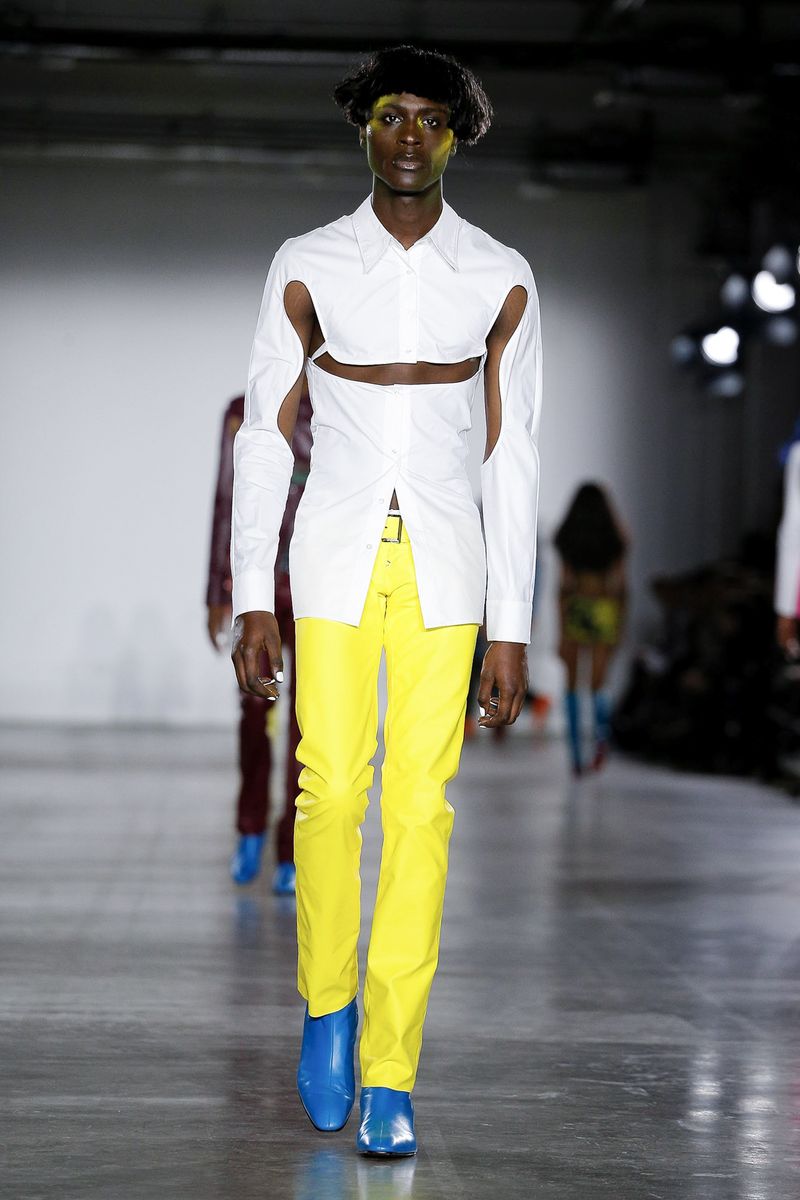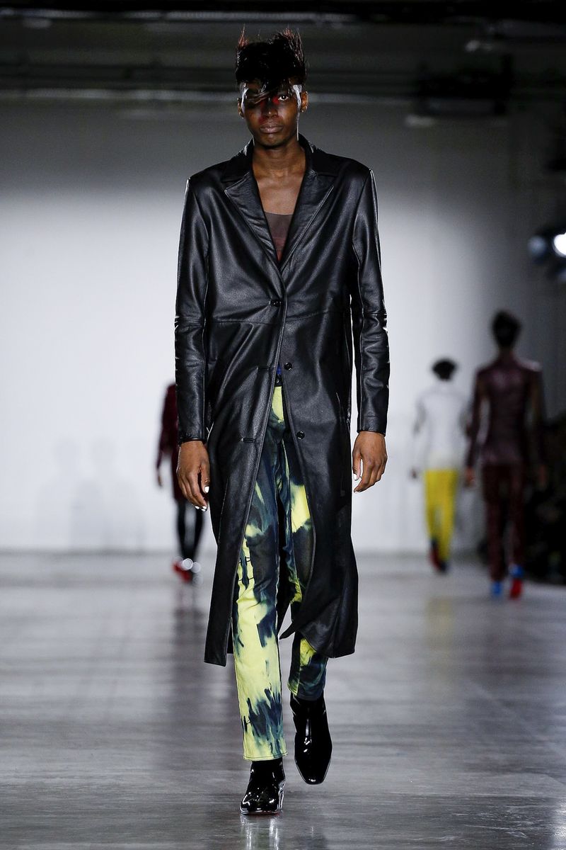 New additions include Mowalola, a British-Nigerian label designed by fellow CSM grad Mowalola Ogunlesi, and Robyn Lynch, an Irish designer who received her menswear MA from the University of Westminster and has held roles at Phoebe English and Cottweiler. The former is a psychedelic trip that plumbs the depths of what it means to be an African male, the latter an exploration of Irish heritage and craft