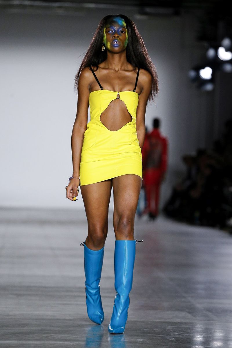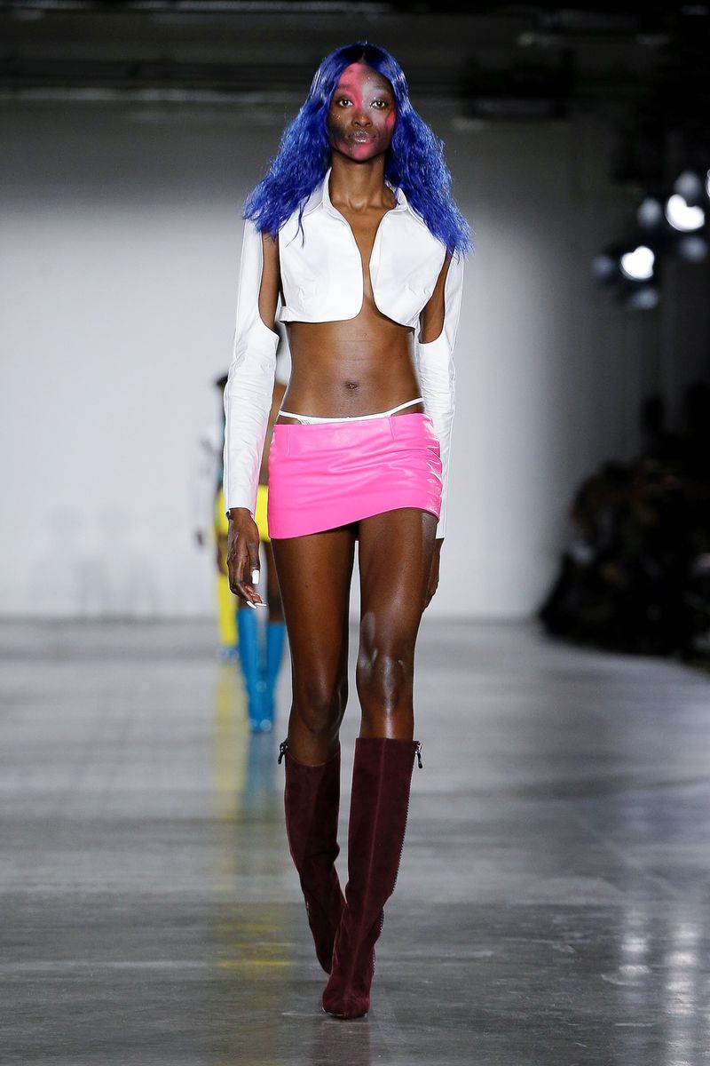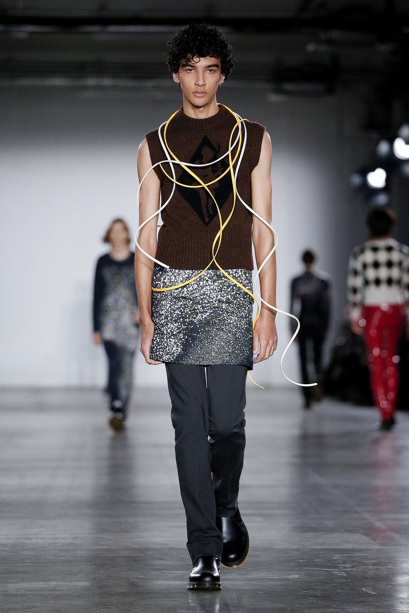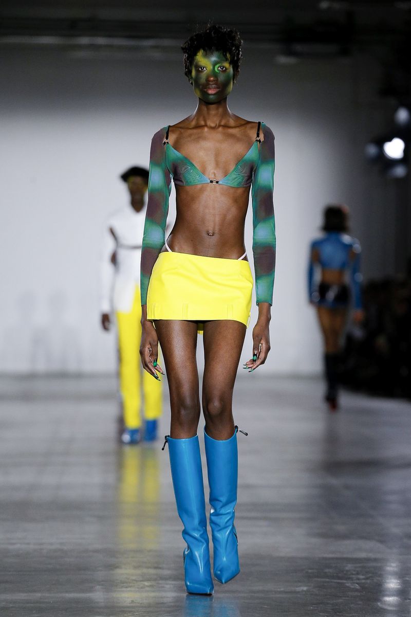 New additions include Mowalola, a British-Nigerian label designed by fellow CSM grad Mowalola Ogunlesi, and Robyn Lynch, an Irish designer who received her menswear MA from the University of Westminster and has held roles at Phoebe English and Cottweiler. The former is a psychedelic trip that plumbs the depths of what it means to be an African male, the latter an exploration of Irish heritage and craft