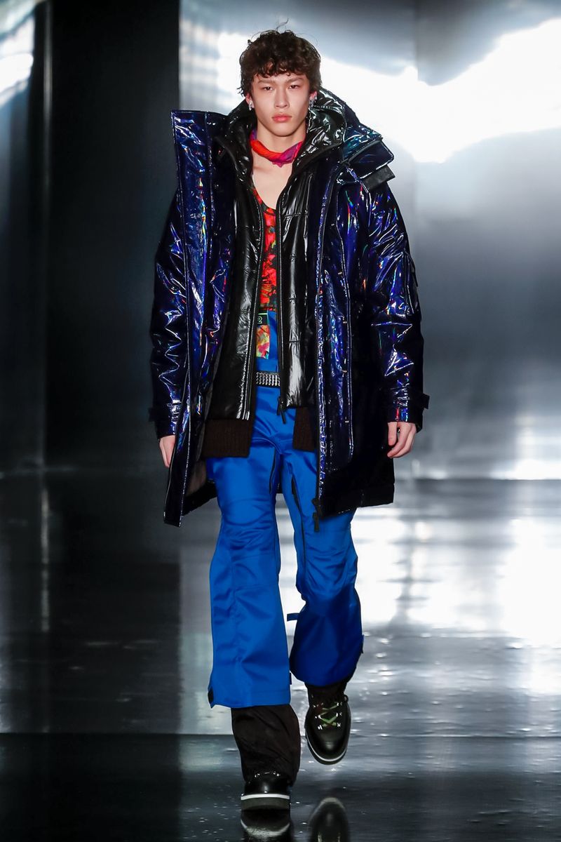 Puffers, padded vests and parkas splashed with flamboyant graphics exalted the urban appeal of the collection, which was clearly designed for frisky party lovers who don’t like to stay in the shadows. Just like many of the guests at the show, even if they couldn’t see the models.