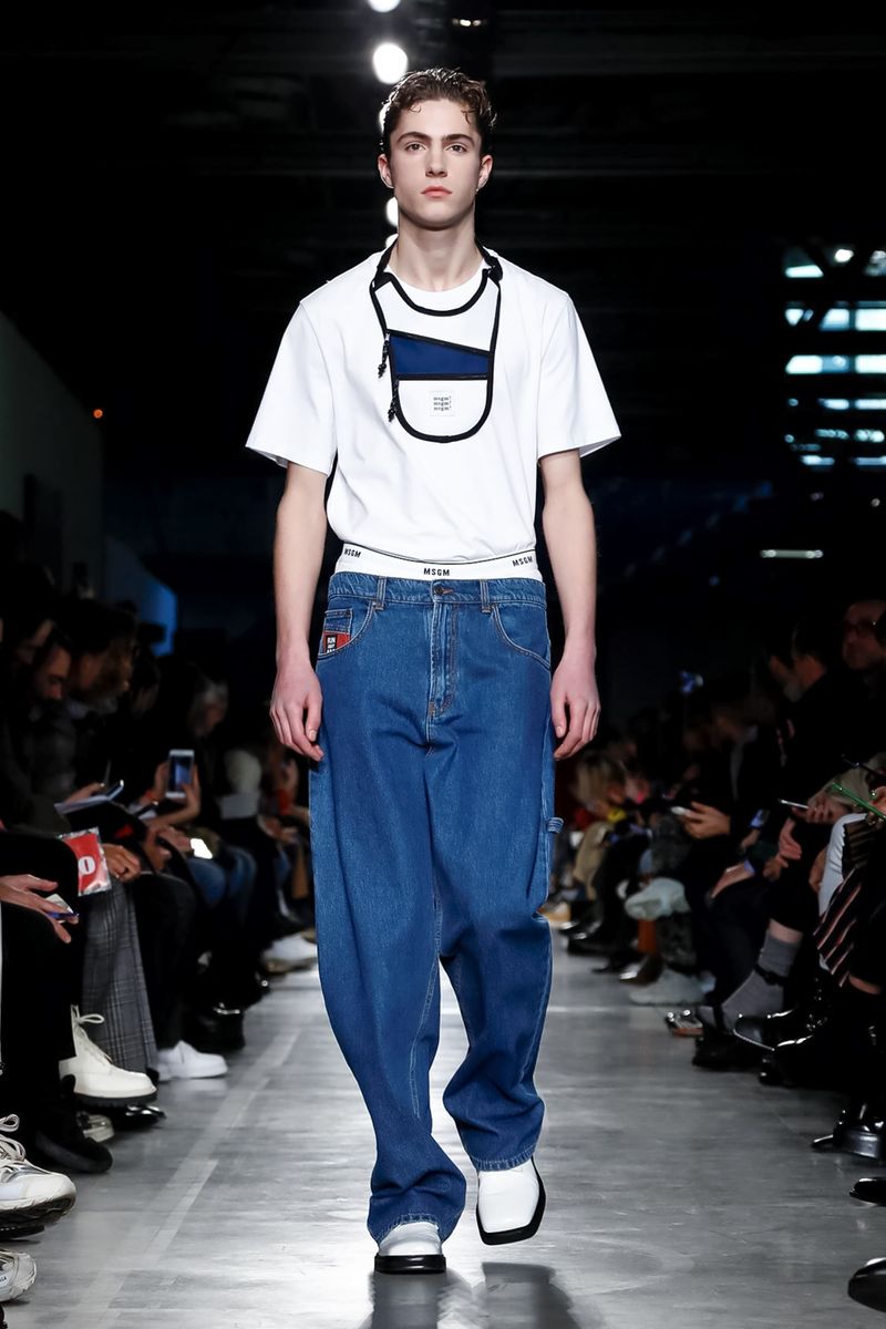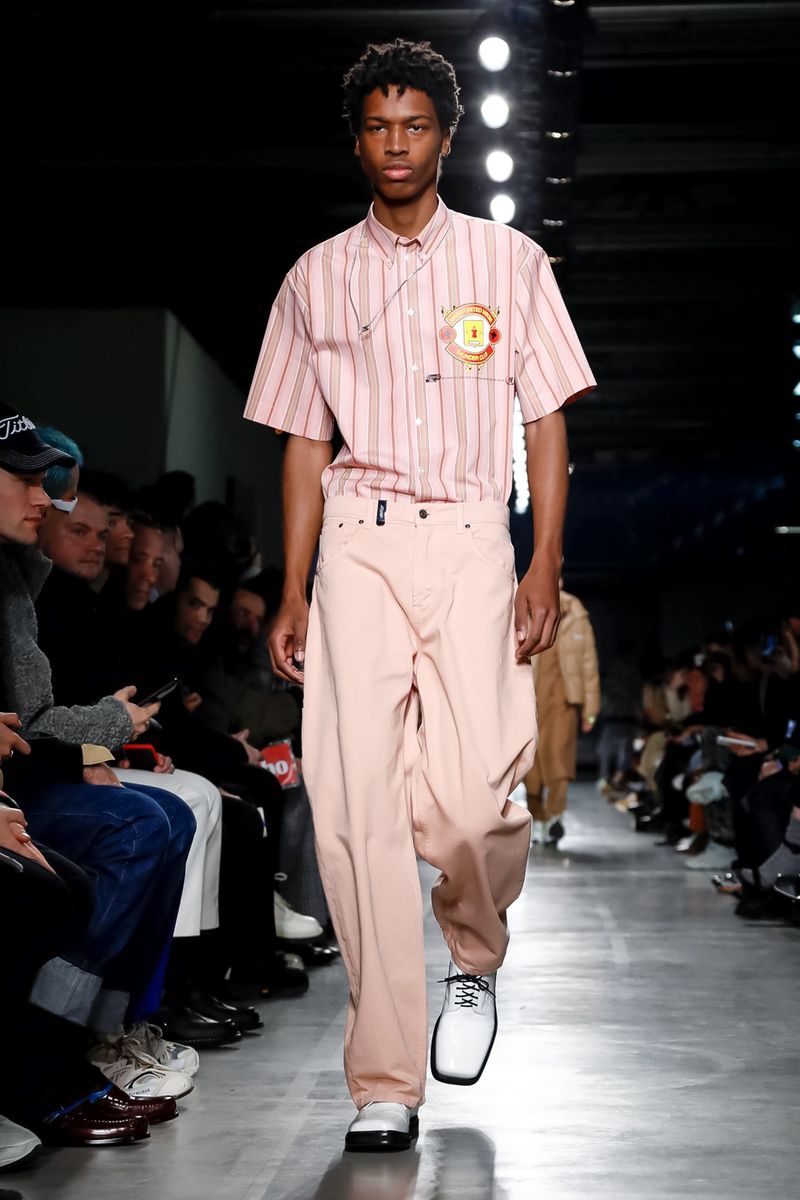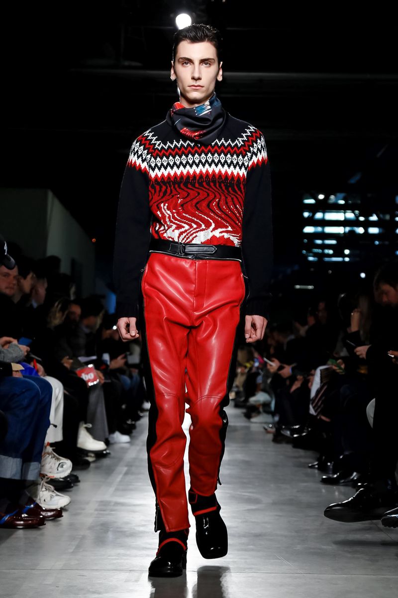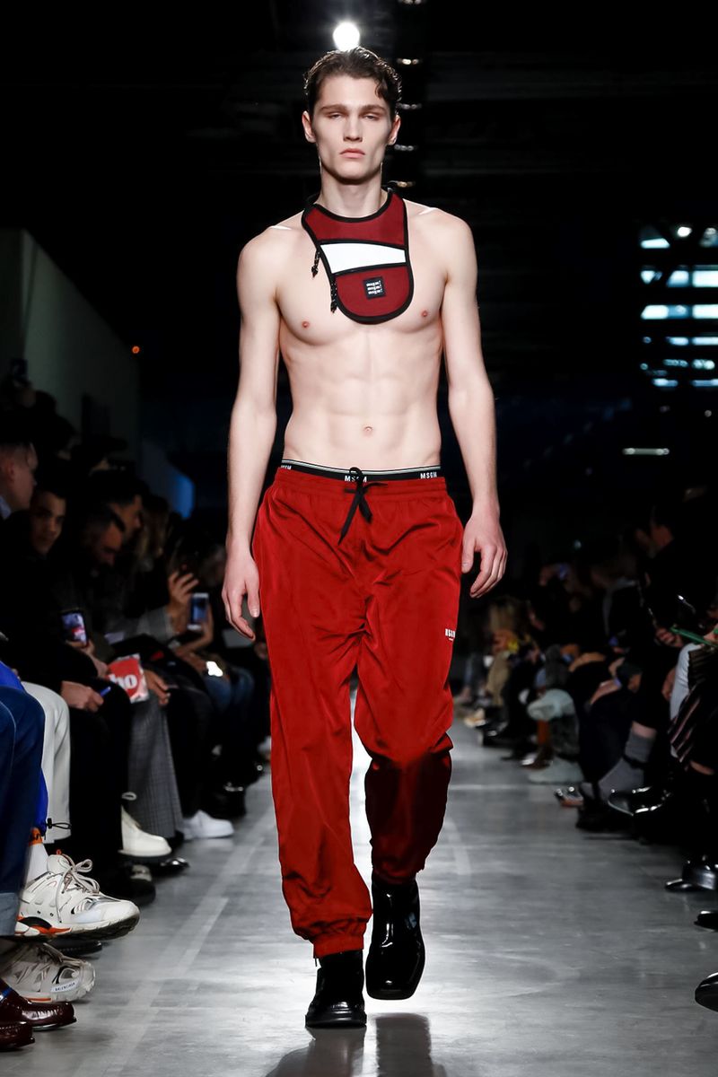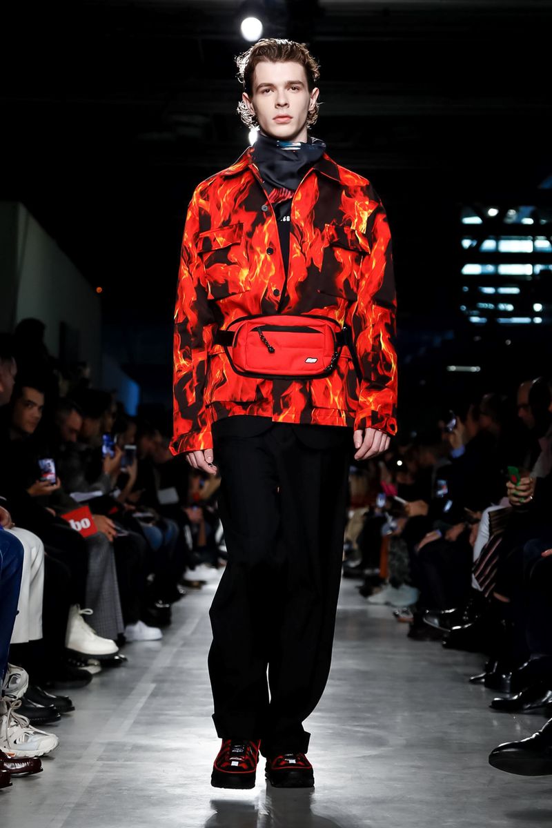 The designer’s collaboration with Fila, on the brand’s 1992 Silva model, came strung from fanny packs worn by some of the models, with square-toed boots punctuating most of the looks.