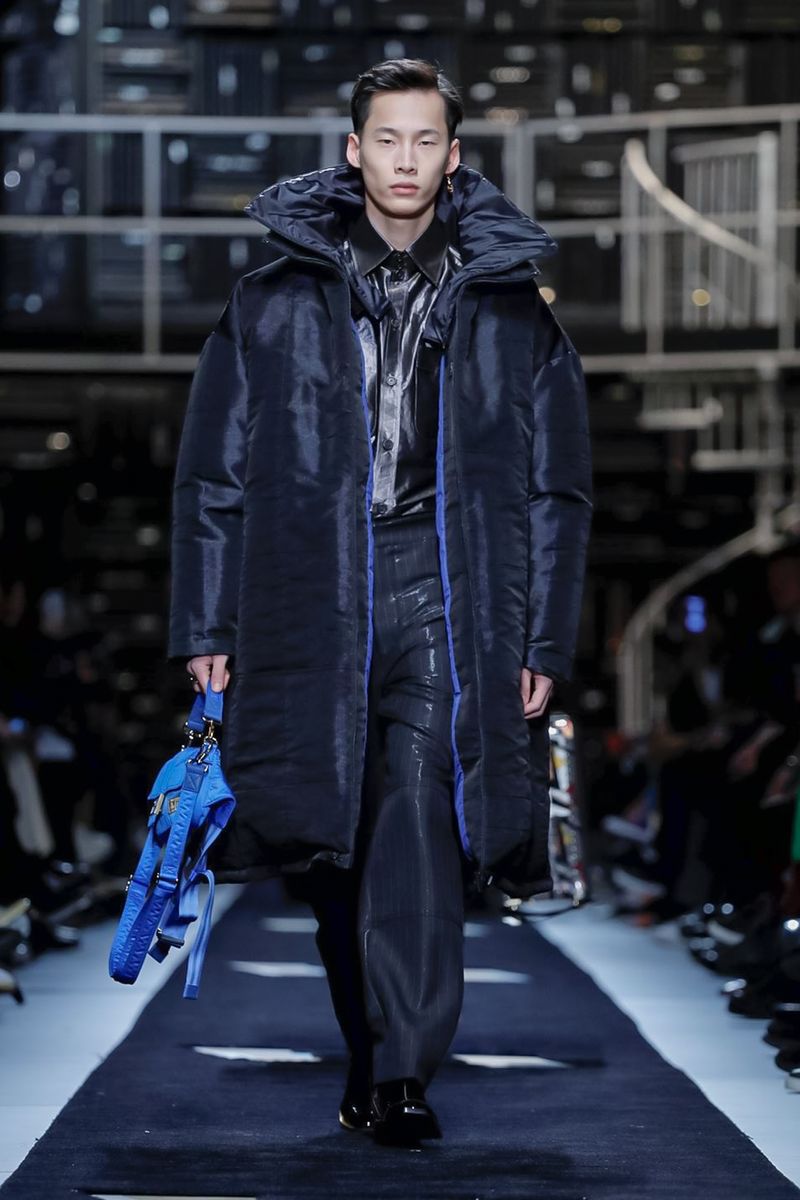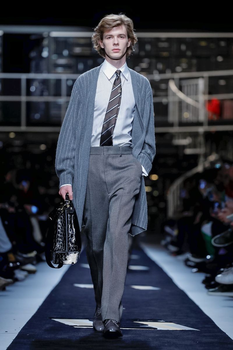 “Today, for a young kid, or for somebody who didn’t experience it before, to be in a suit and tie is the most subversive attire. I wanted to see all those men approaching a classical mood,” said Venturini Fendi before sending out a lineup of suits in gray with a glassy sheen, or caffe latte, or two-toned for all the indecisive men out there. Jackets and topcoats alike had the new Lagerfeld collar, with a soft shawl on the right and a notch lapel on the left.