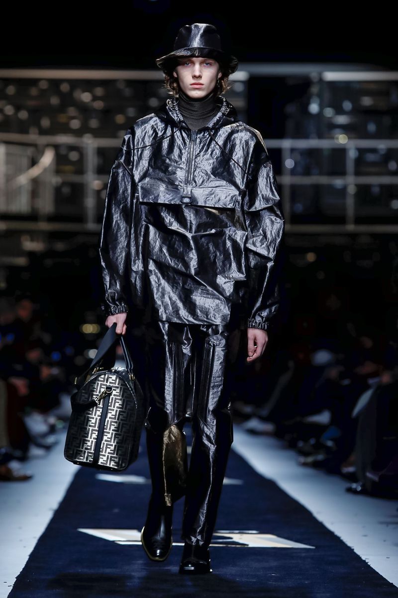 This season, Fendi collaborated with the Tokyo-based company Porter, doing bags including the first Baguette for men — and the Peekaboo — in bonded nylon, as well as the brand’s signature croc, mink and Selleria leather, all with multipurpose straps and buckles. Another hard-edged bag came with a detachable plastic cover, which transforms into a shopper, all to serve the multifaceted Fendi man.