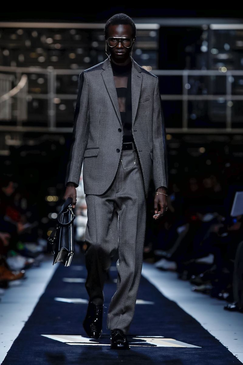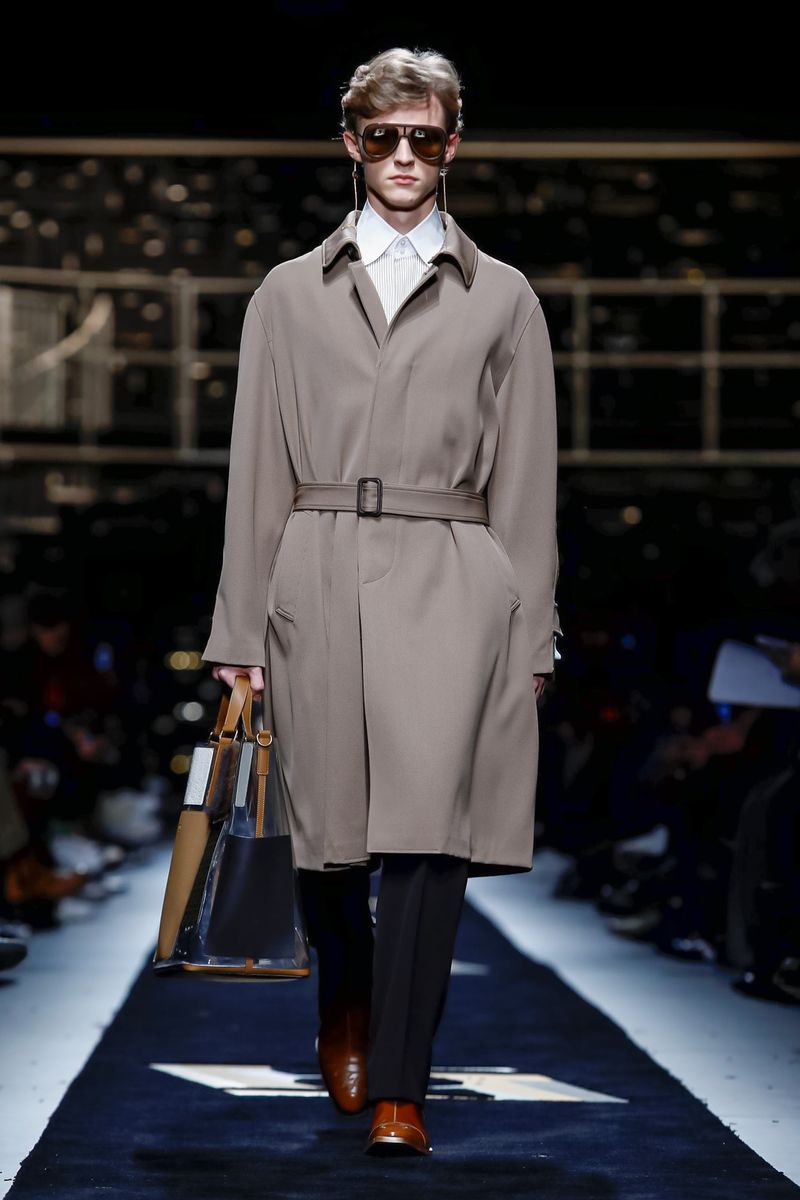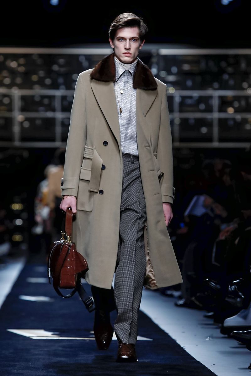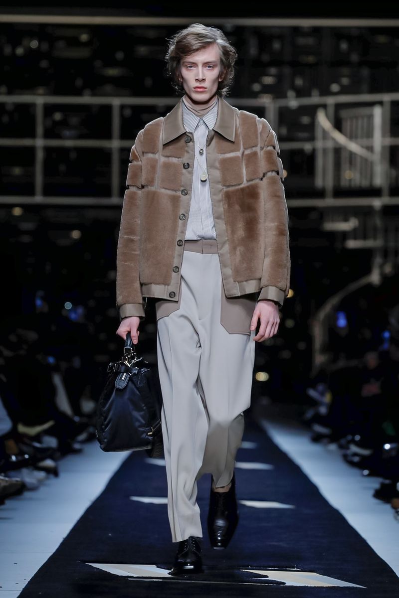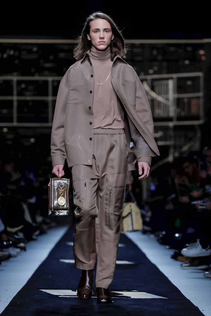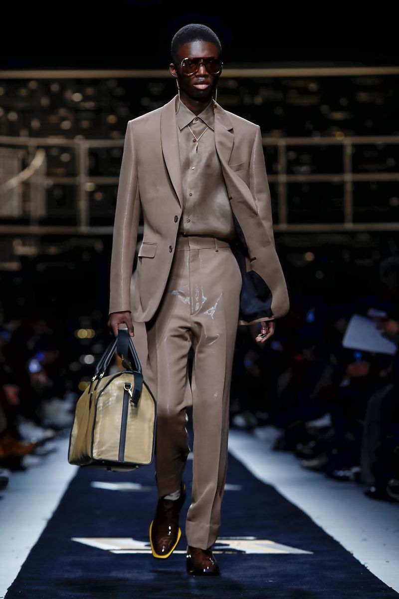 “Today, for a young kid, or for somebody who didn’t experience it before, to be in a suit and tie is the most subversive attire. I wanted to see all those men approaching a classical mood,” said Venturini Fendi before sending out a lineup of suits in gray with a glassy sheen, or caffe latte, or two-toned for all the indecisive men out there. Jackets and topcoats alike had the new Lagerfeld collar, with a soft shawl on the right and a notch lapel on the left.