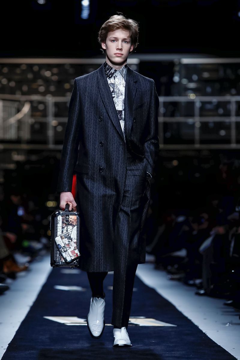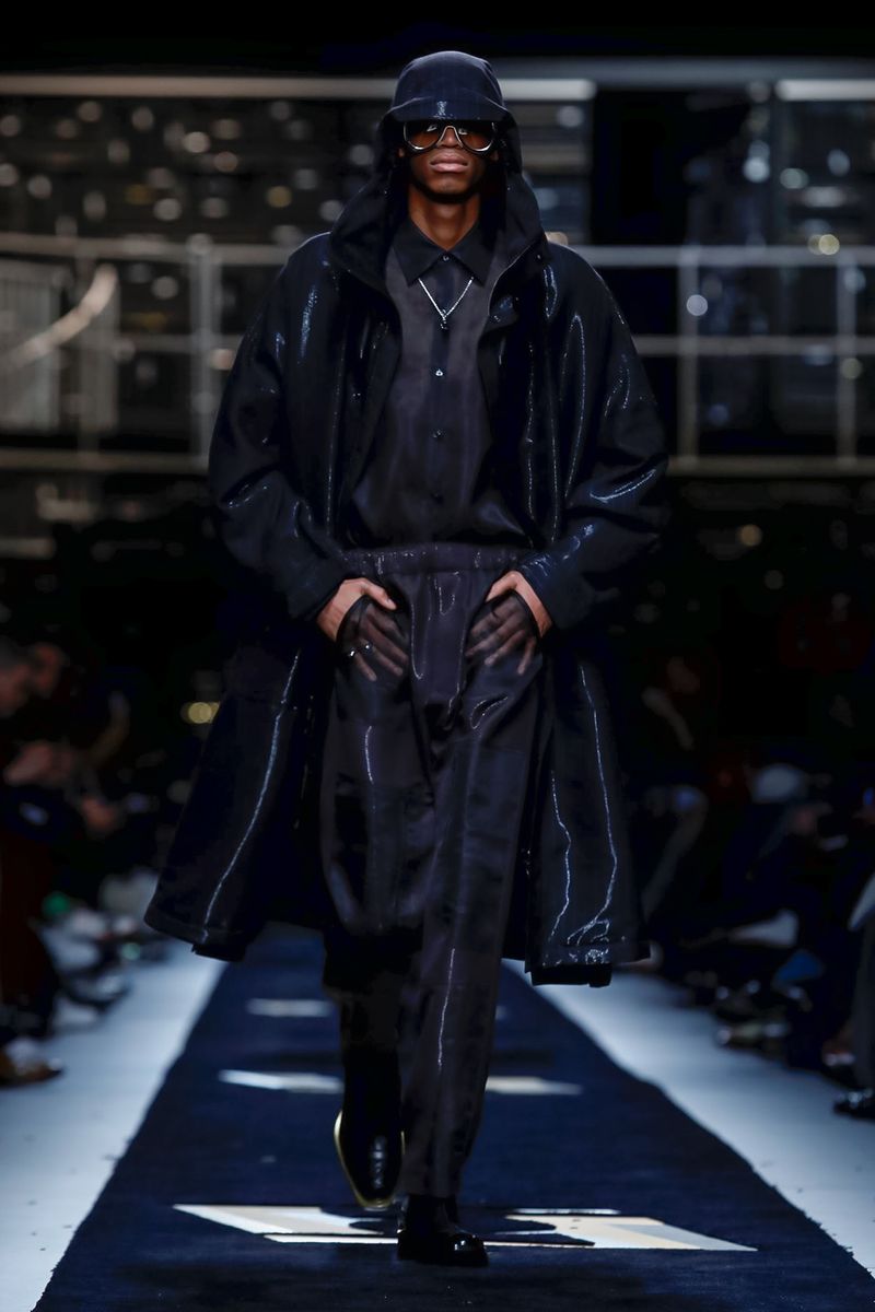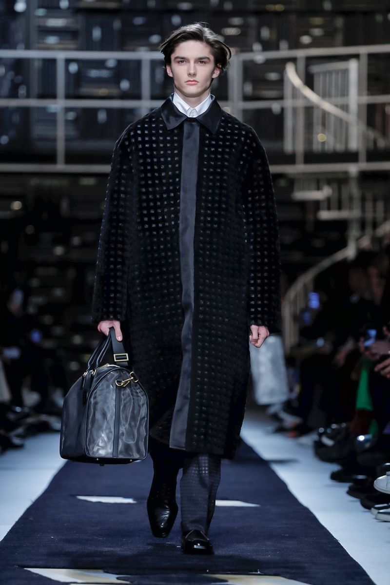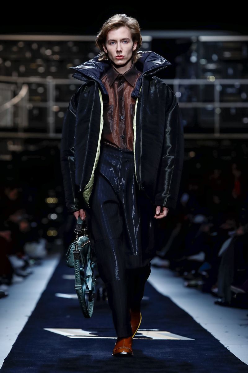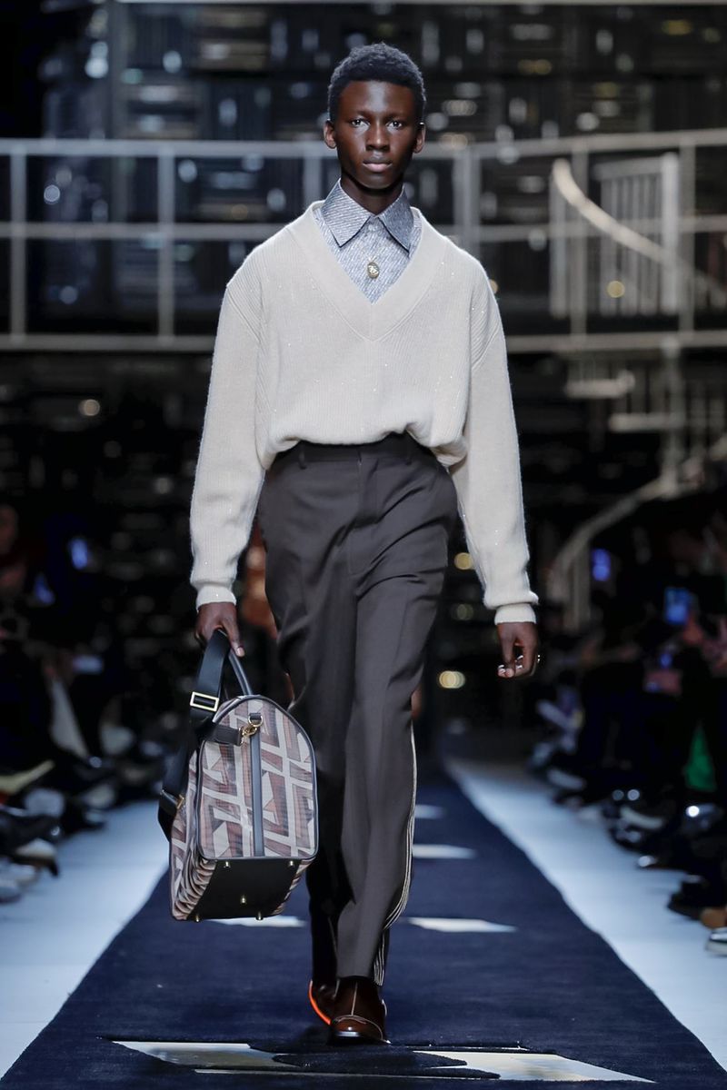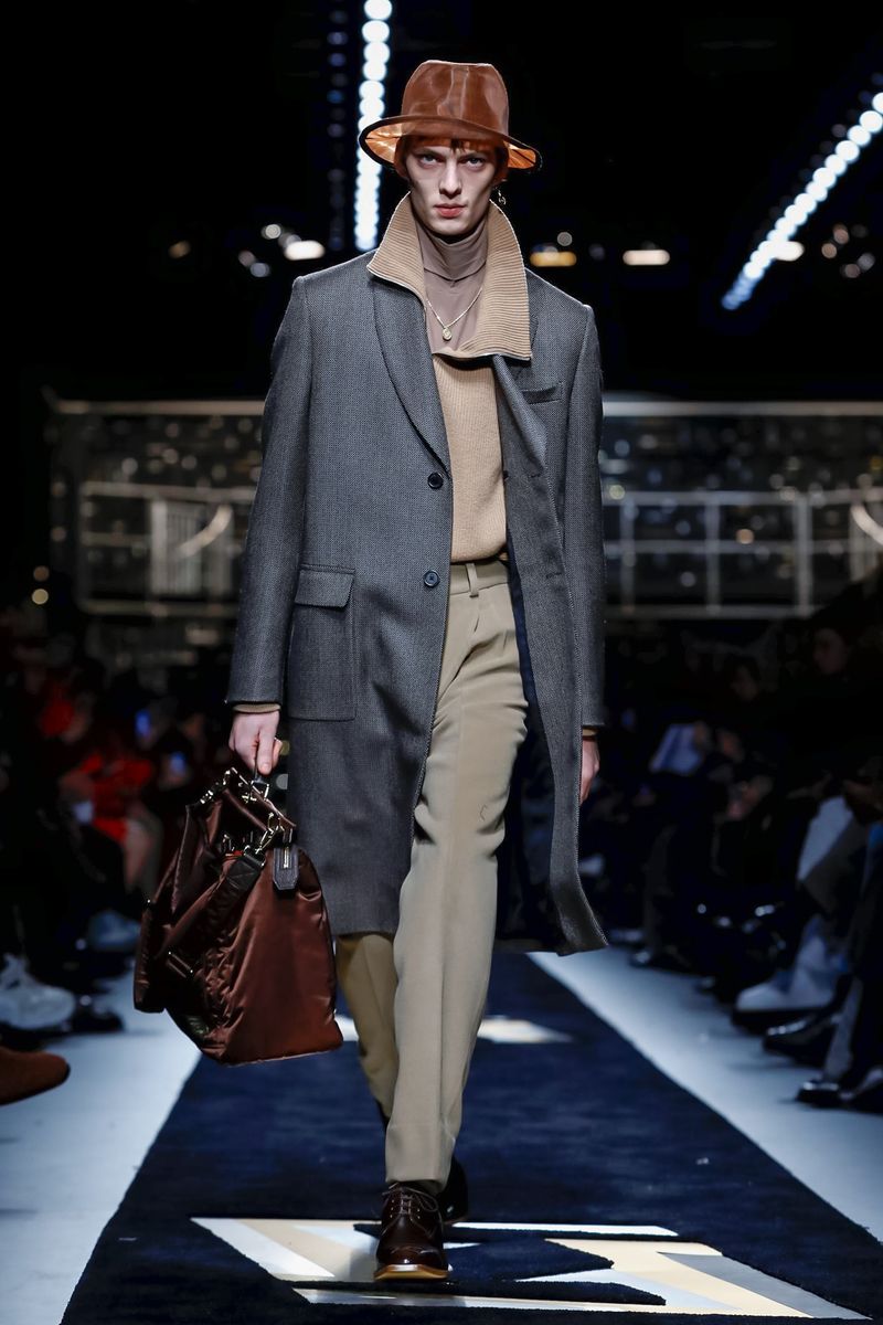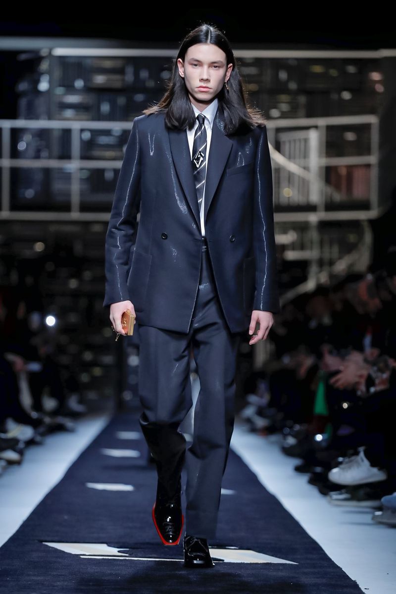 “Today, for a young kid, or for somebody who didn’t experience it before, to be in a suit and tie is the most subversive attire. I wanted to see all those men approaching a classical mood,” said Venturini Fendi before sending out a lineup of suits in gray with a glassy sheen, or caffe latte, or two-toned for all the indecisive men out there. Jackets and topcoats alike had the new Lagerfeld collar, with a soft shawl on the right and a notch lapel on the left.