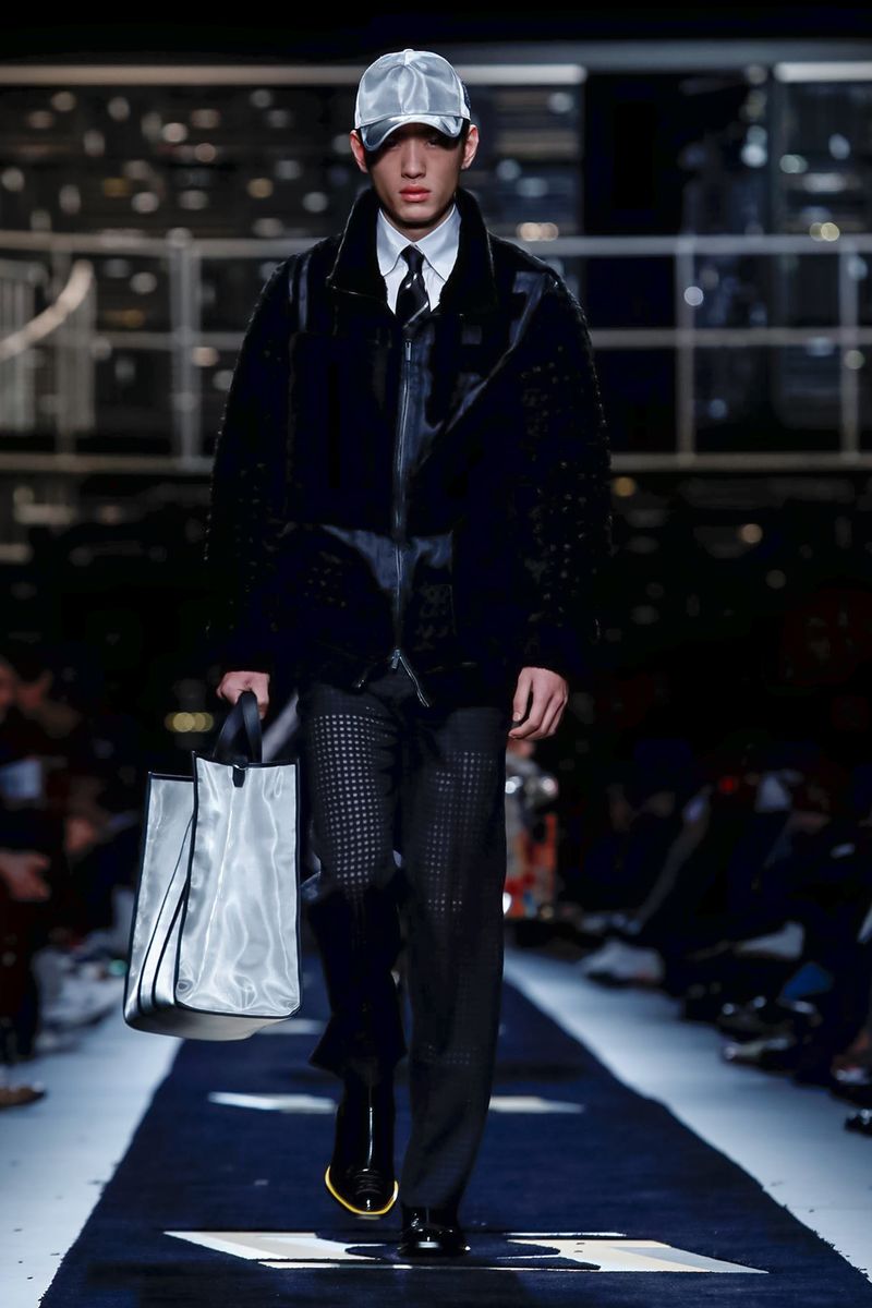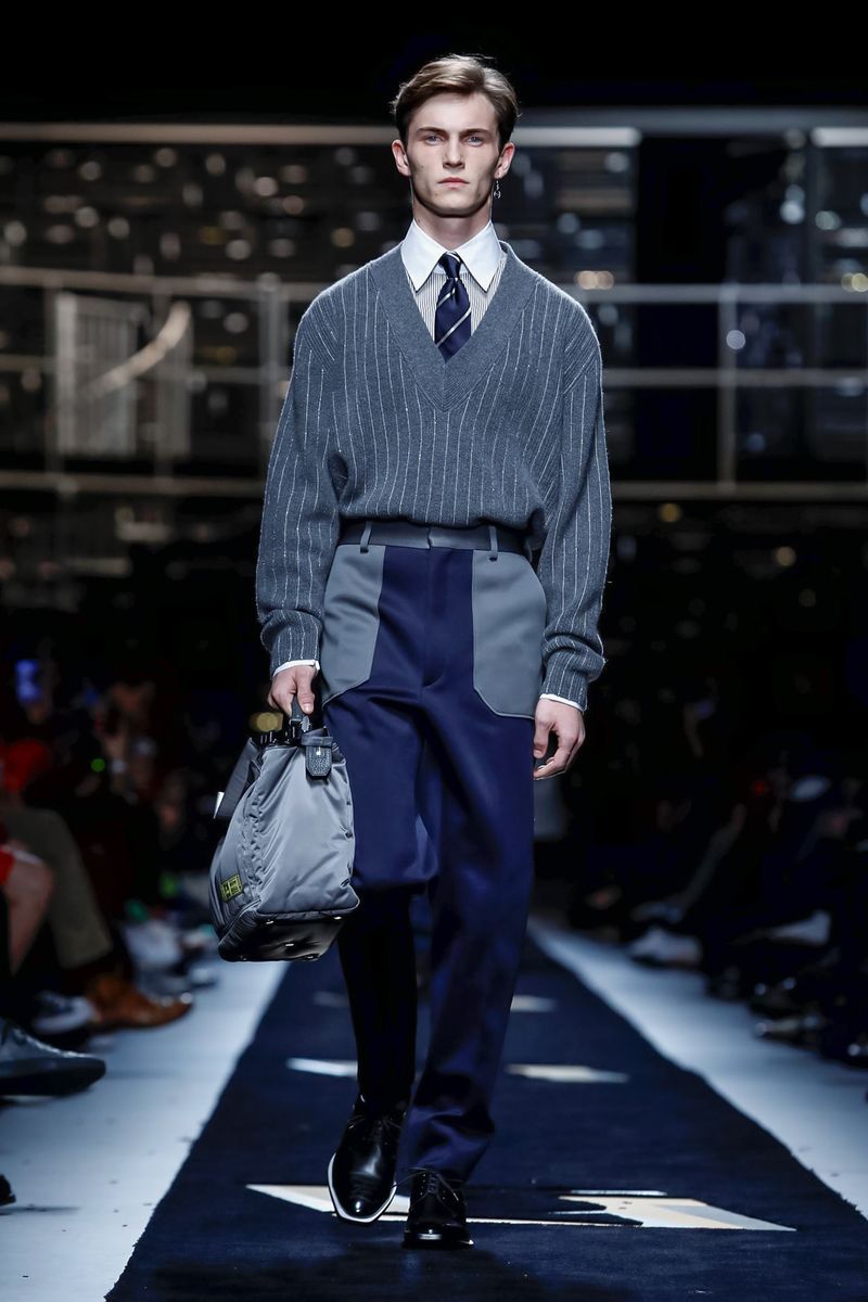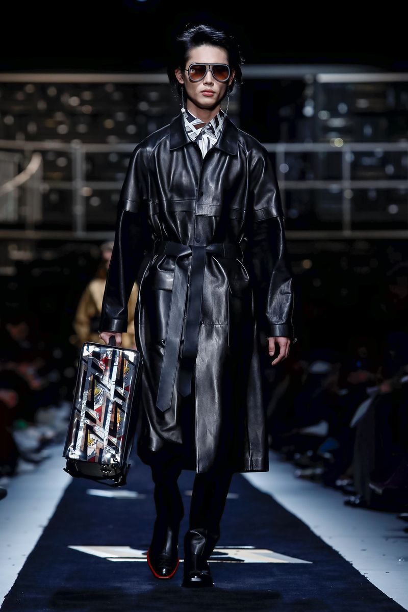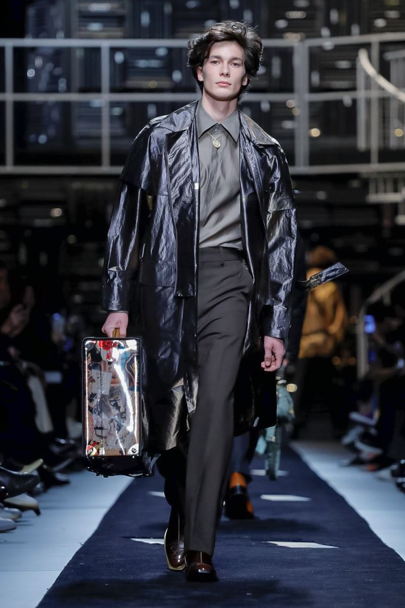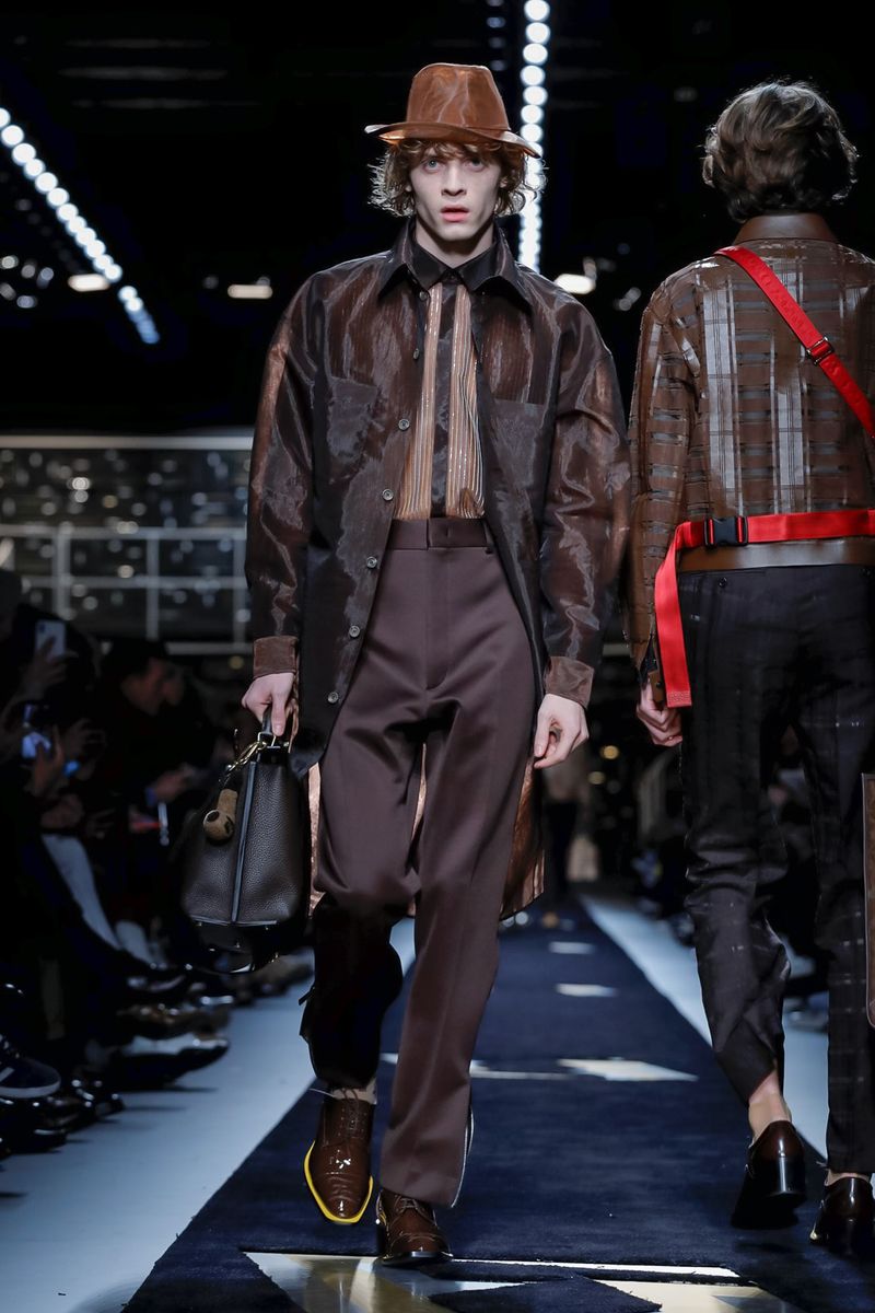 This season, Fendi collaborated with the Tokyo-based company Porter, doing bags including the first Baguette for men — and the Peekaboo — in bonded nylon, as well as the brand’s signature croc, mink and Selleria leather, all with multipurpose straps and buckles. Another hard-edged bag came with a detachable plastic cover, which transforms into a shopper, all to serve the multifaceted Fendi man.