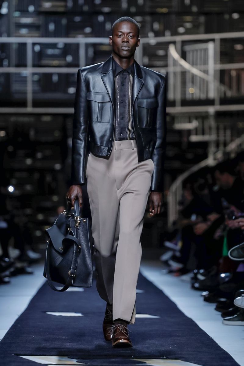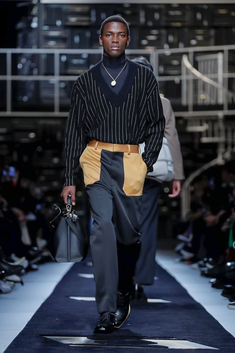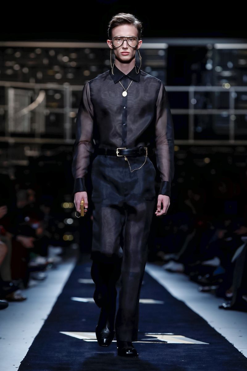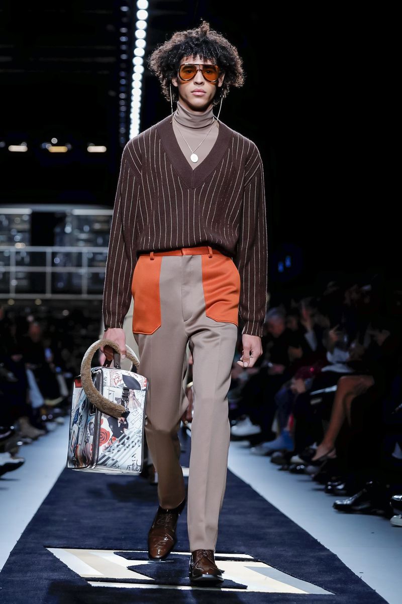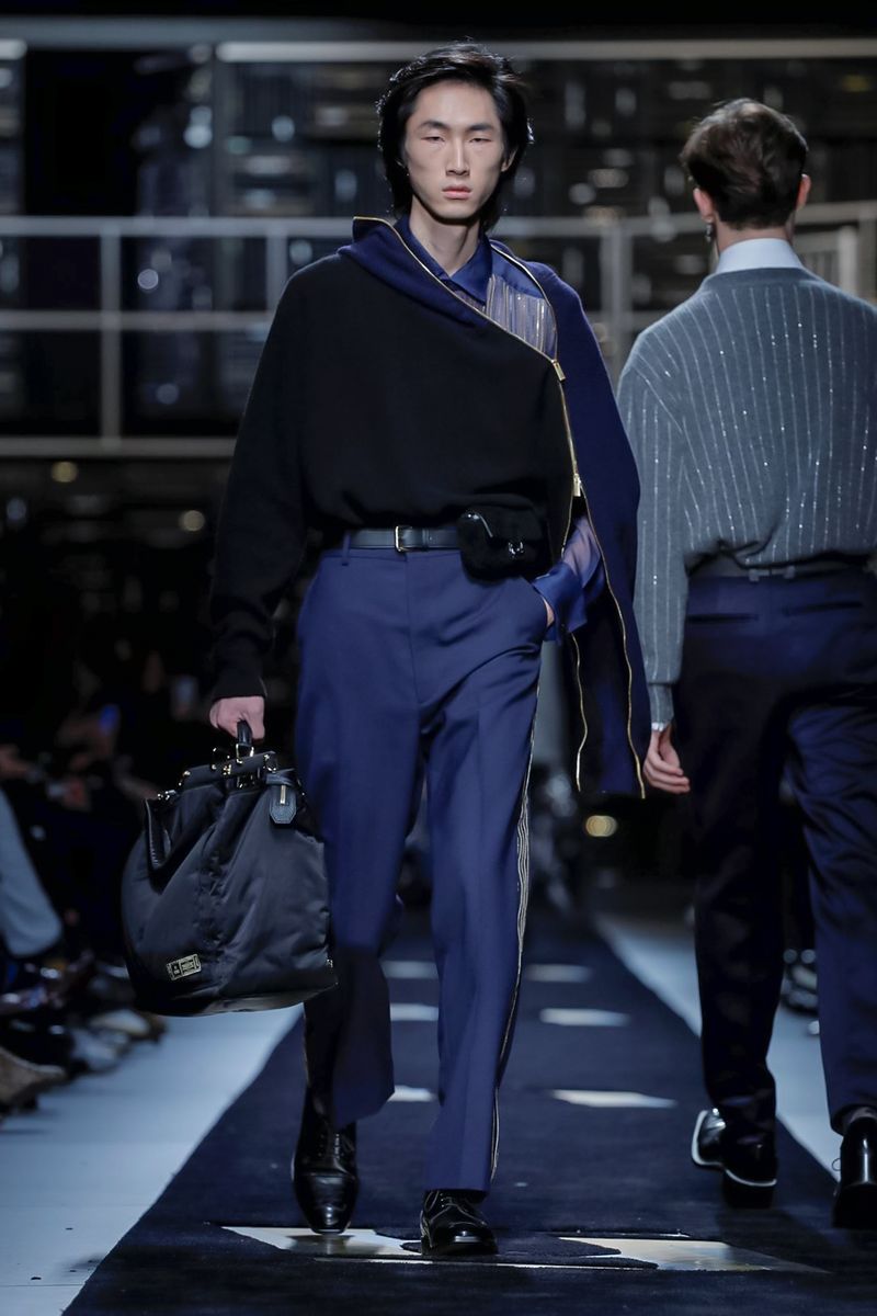 This season, Fendi collaborated with the Tokyo-based company Porter, doing bags including the first Baguette for men — and the Peekaboo — in bonded nylon, as well as the brand’s signature croc, mink and Selleria leather, all with multipurpose straps and buckles. Another hard-edged bag came with a detachable plastic cover, which transforms into a shopper, all to serve the multifaceted Fendi man.