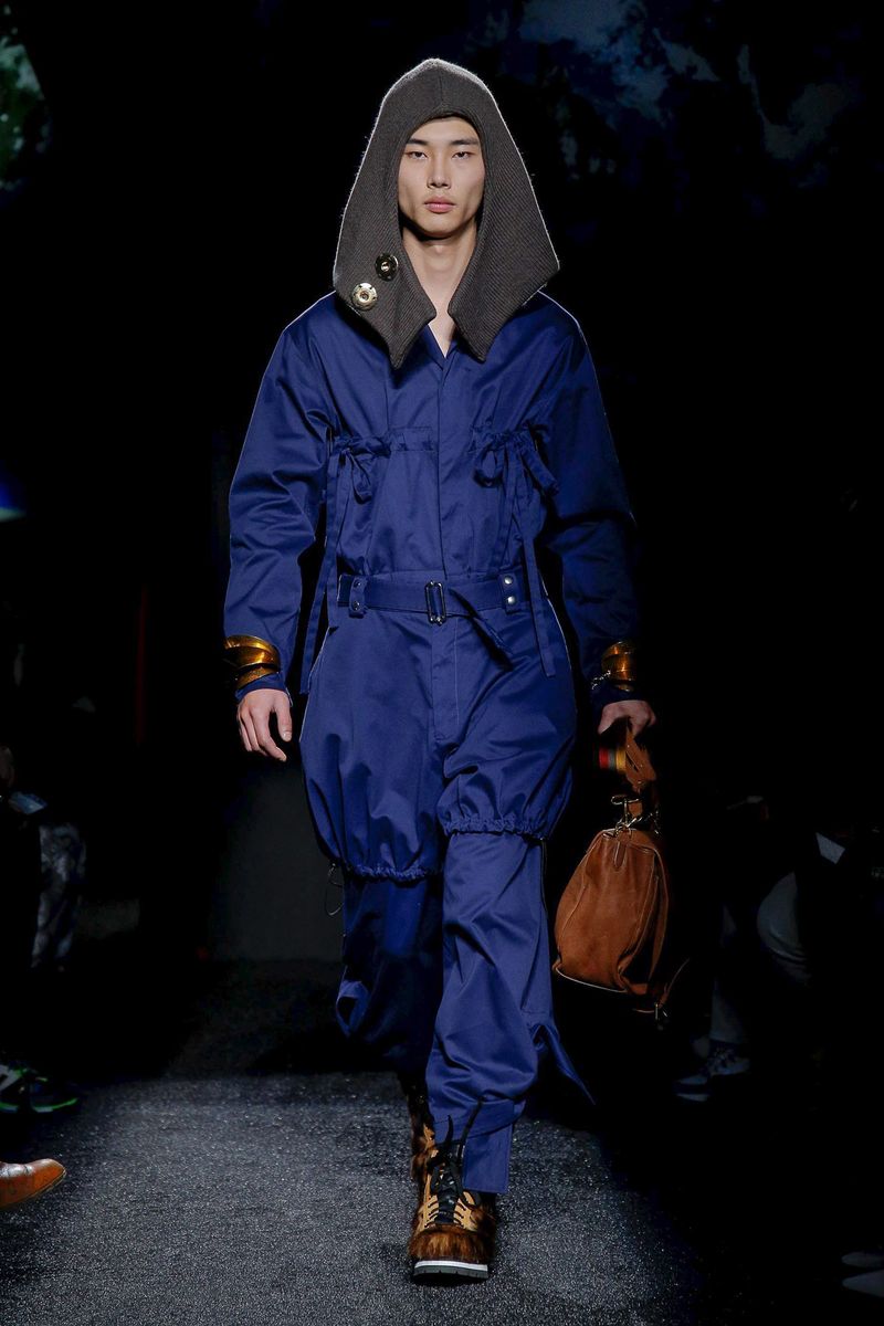 The collection, with its medieval peasant mood and jarring, incongruous elements, marked the first time Anderson designed his men’s and women’s together.
