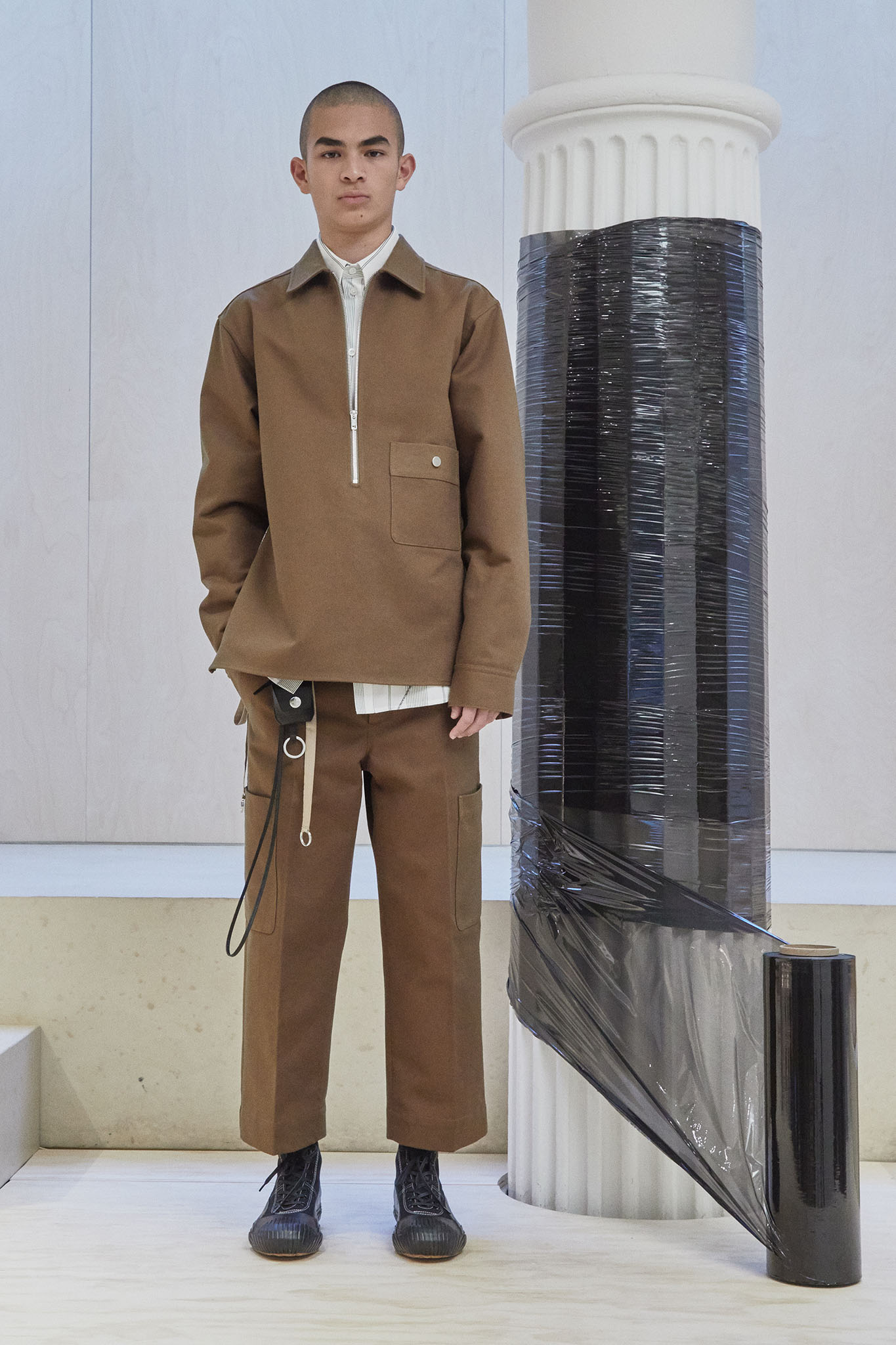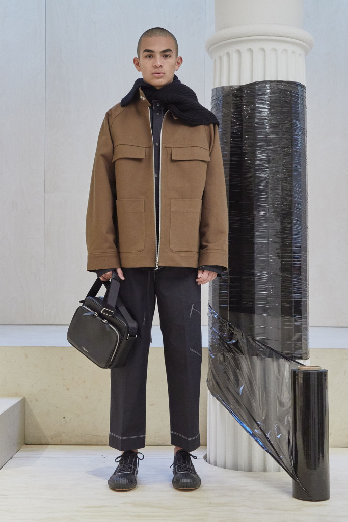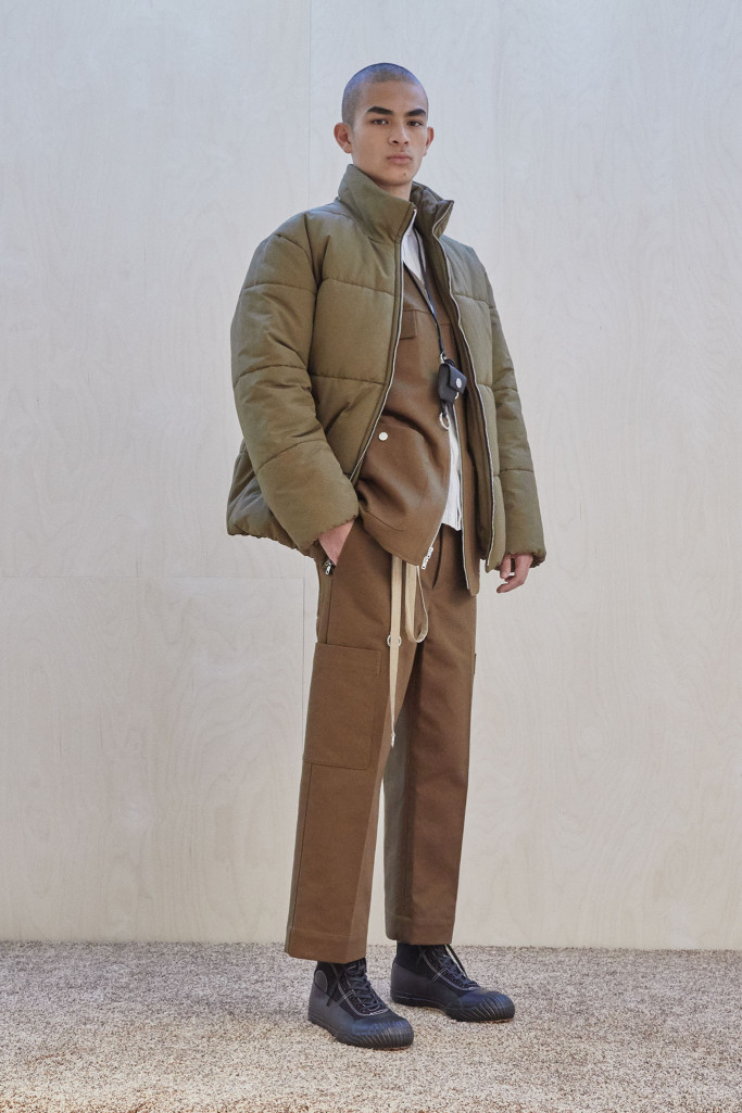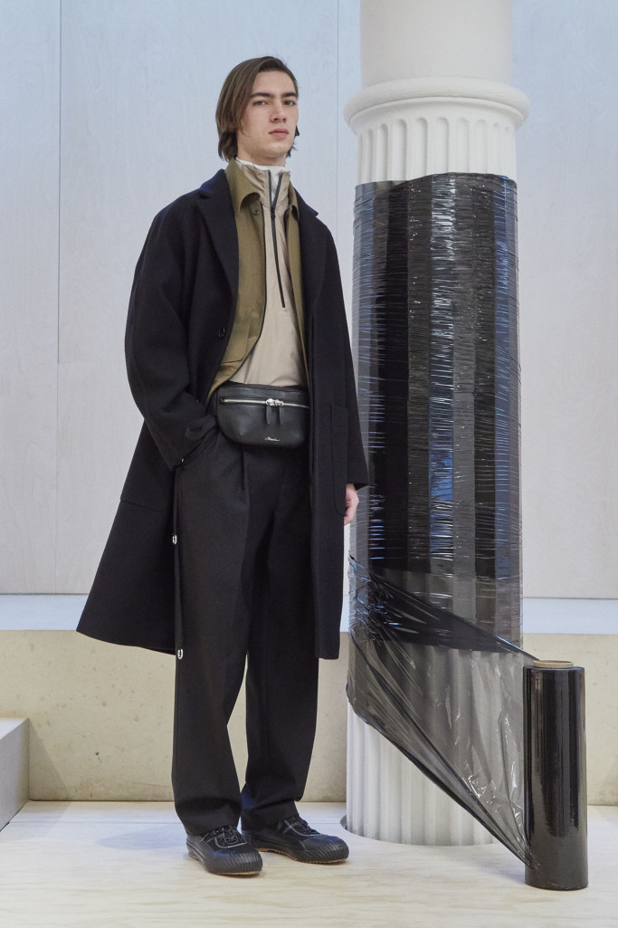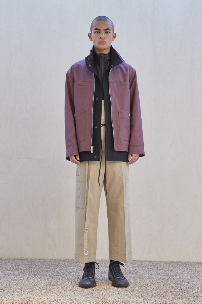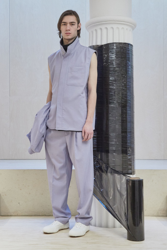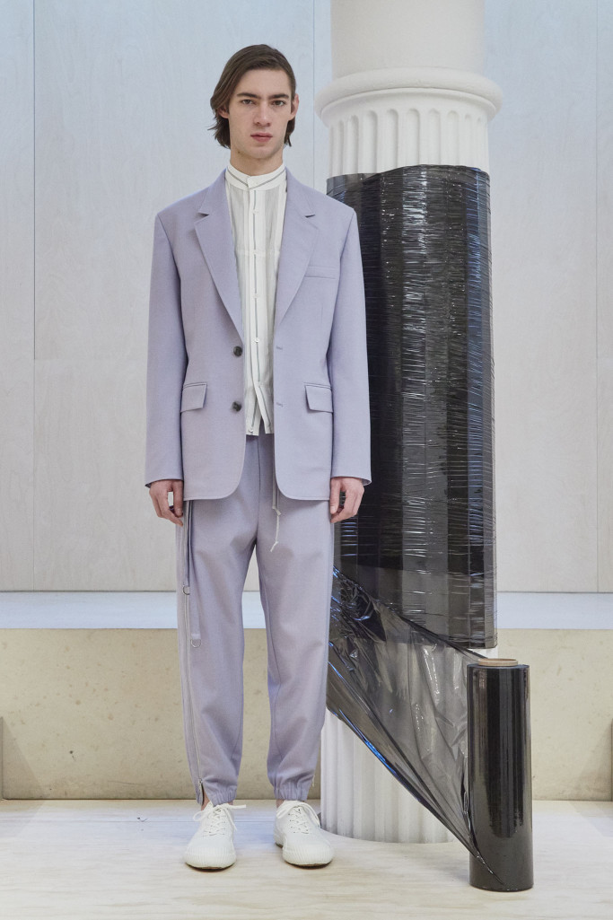 The collection also speaks to the realities of the busy lives of today’s men and includes workwear references and elevated streetwear. “This isn’t workwear, but it’s clothes you can work in,” said Lim, who added that he believes streetwear “should feel more romantic.” He achieved that with the foulard collars and belt pouches that created drama as well as a sense of discovery.