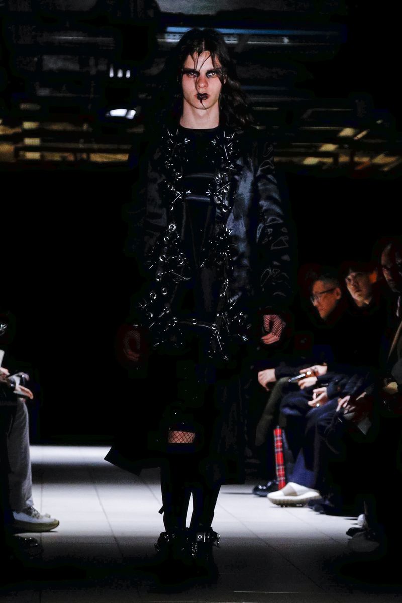 Rei Kawakubo clearly thought there was room for a few more dark rebels, sending out a goth punk collection complete with inky black lips and fingernails and models wearing jangling harnesses, grabbing their crotches and giving the finger to photographers like a bunch of petulant teenagers.