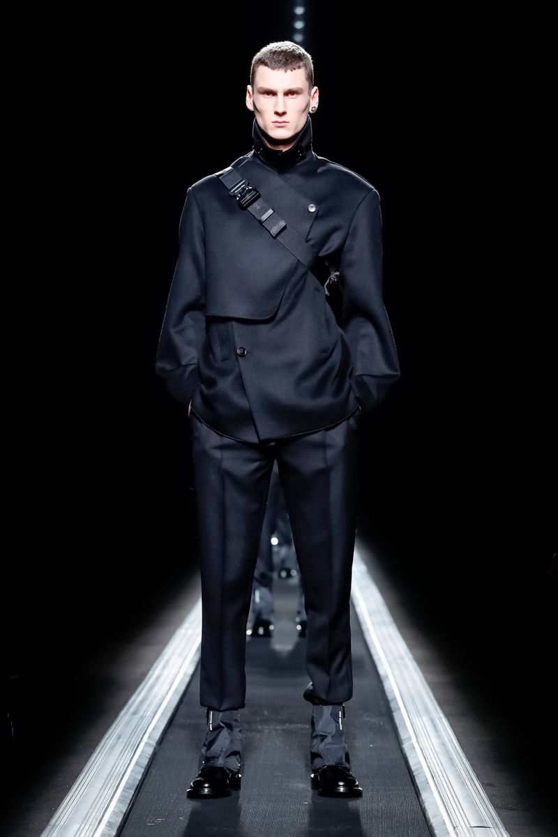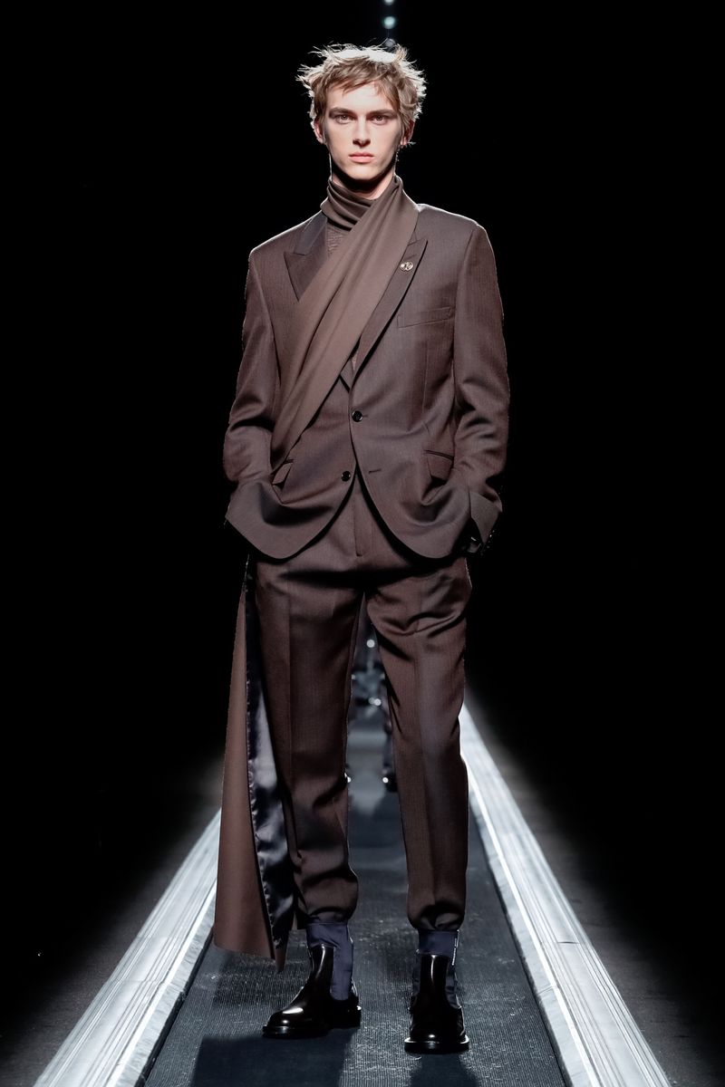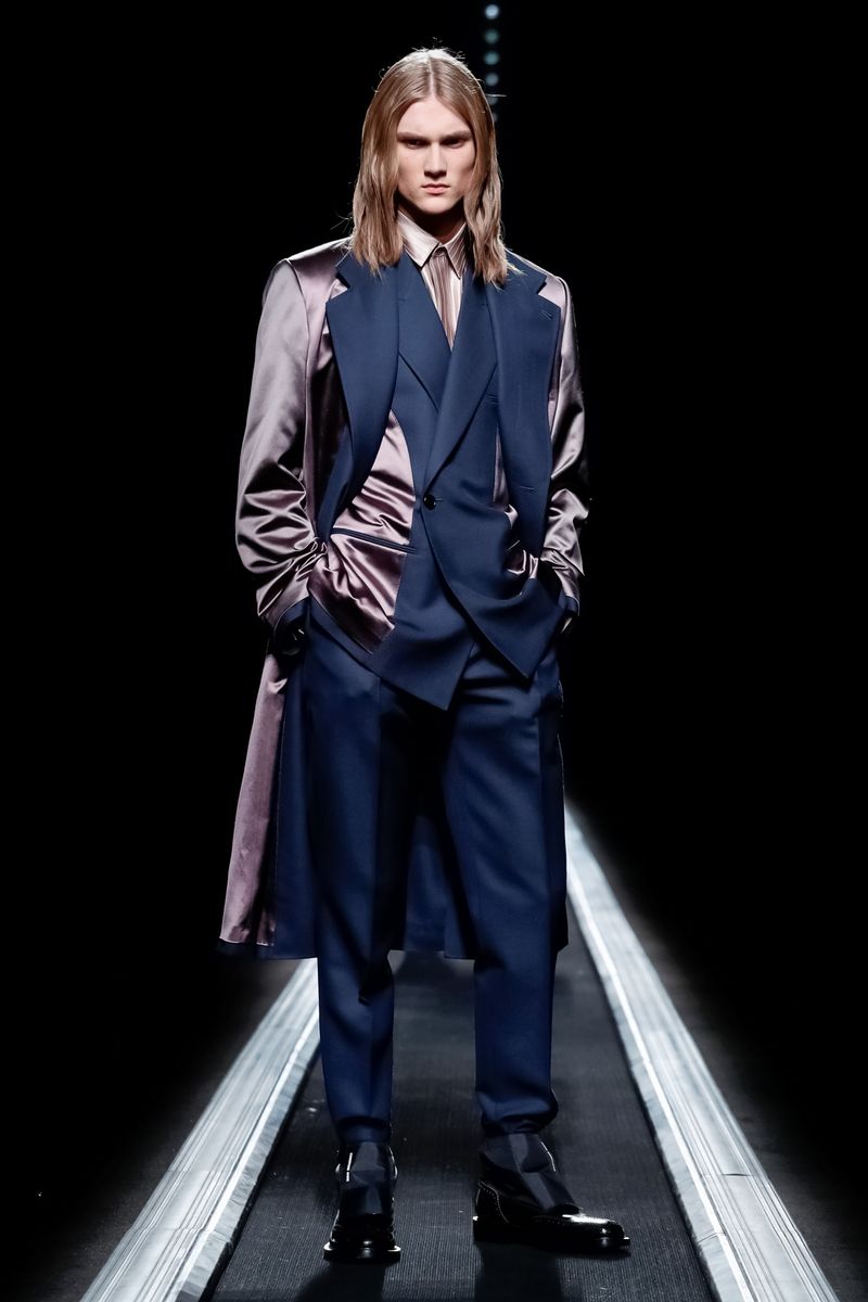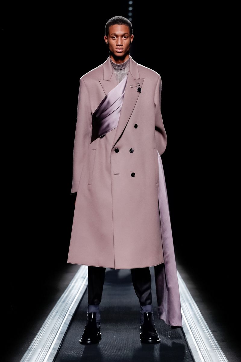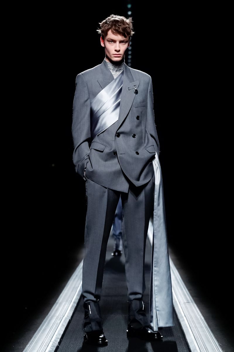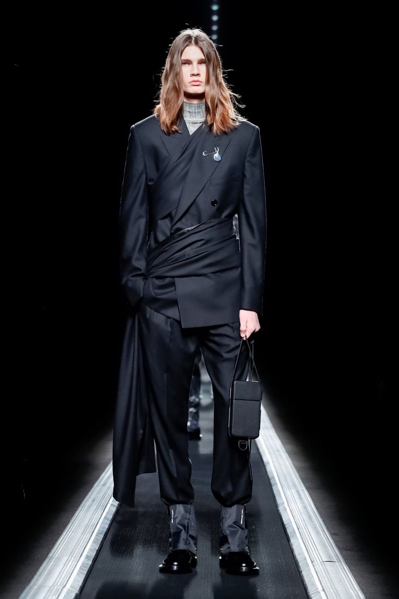 Tailoring is, of course, the subject du jour in menswear, but how to place a suit in a context that both honors tradition and convinces a new generation is another matter. Jones cracked the conundrum by bringing together the gendered sides of the capabilities that reside under the roof of this house—the Dior uniform of the corporate businessman and politician’s suit, and the draping in 3-d that is the expertise of the women’s haute couture.