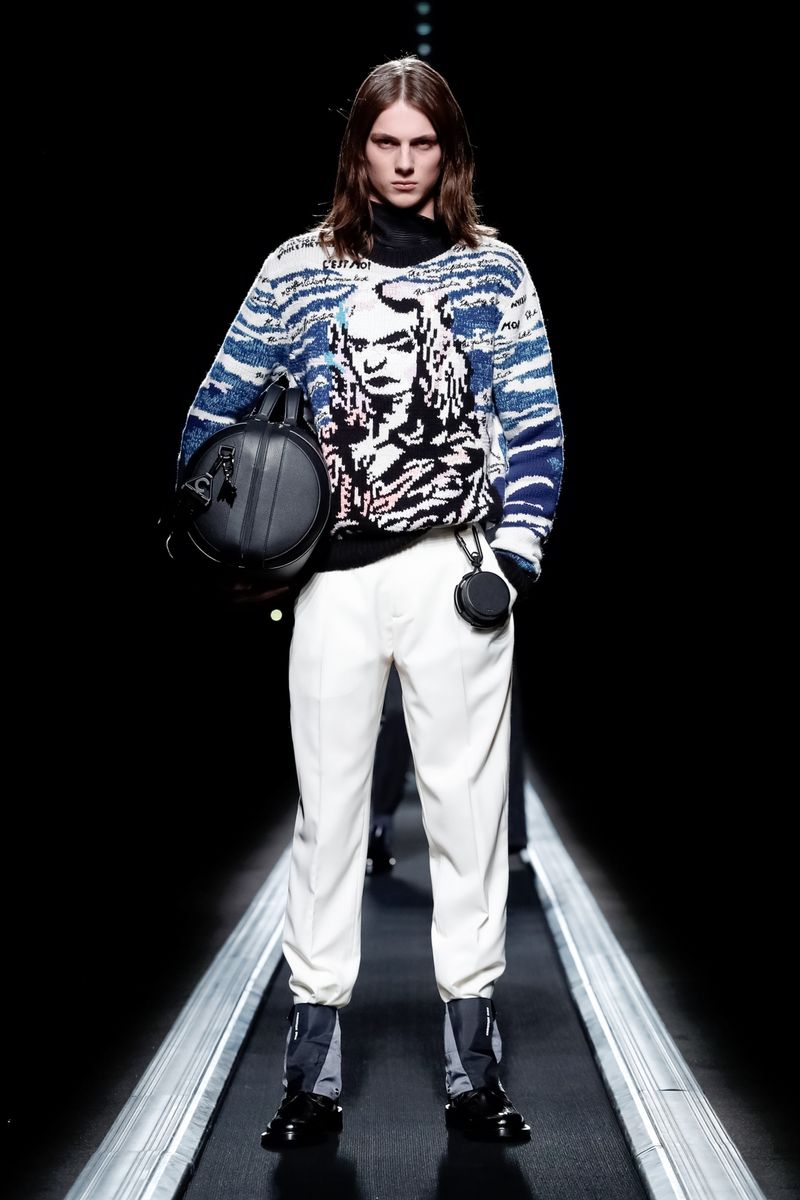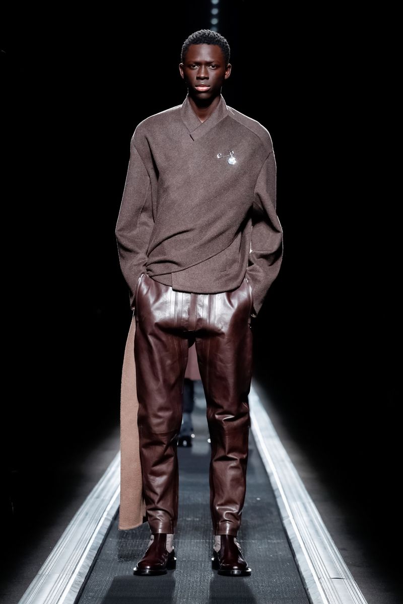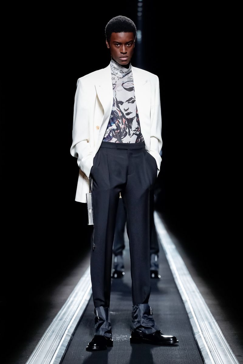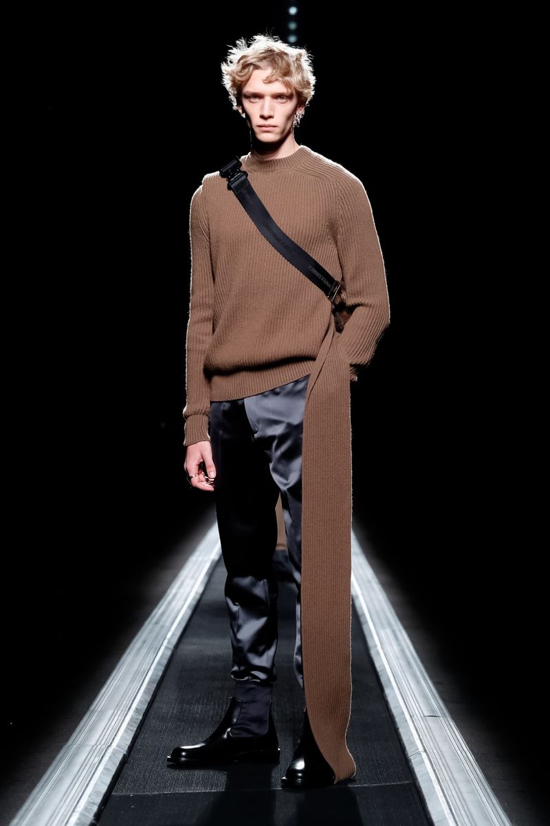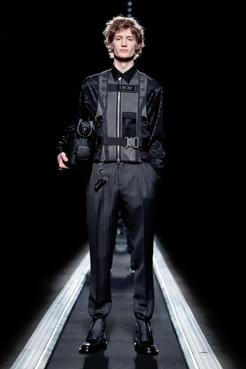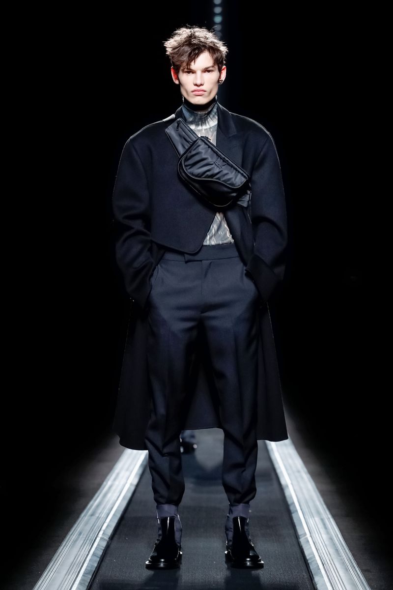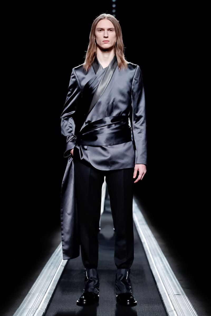 Tailoring is, of course, the subject du jour in menswear, but how to place a suit in a context that both honors tradition and convinces a new generation is another matter. Jones cracked the conundrum by bringing together the gendered sides of the capabilities that reside under the roof of this house—the Dior uniform of the corporate businessman and politician’s suit, and the draping in 3-d that is the expertise of the women’s haute couture.
