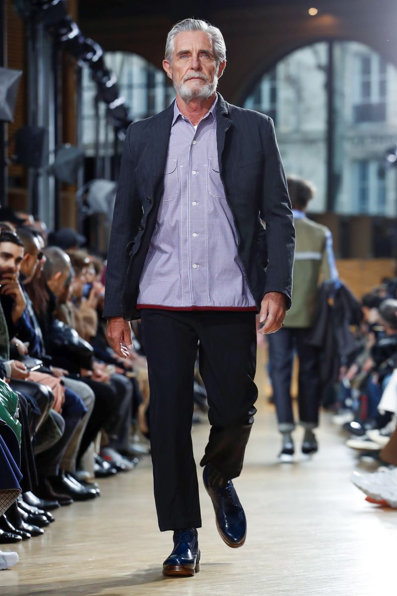 Openning at Carreau du Temple, Paris Alain Gossuin entered into the hall. In the last season, Junya Watanabe presented a millennial collection, now is presenting a fashion wearable collection for real man.