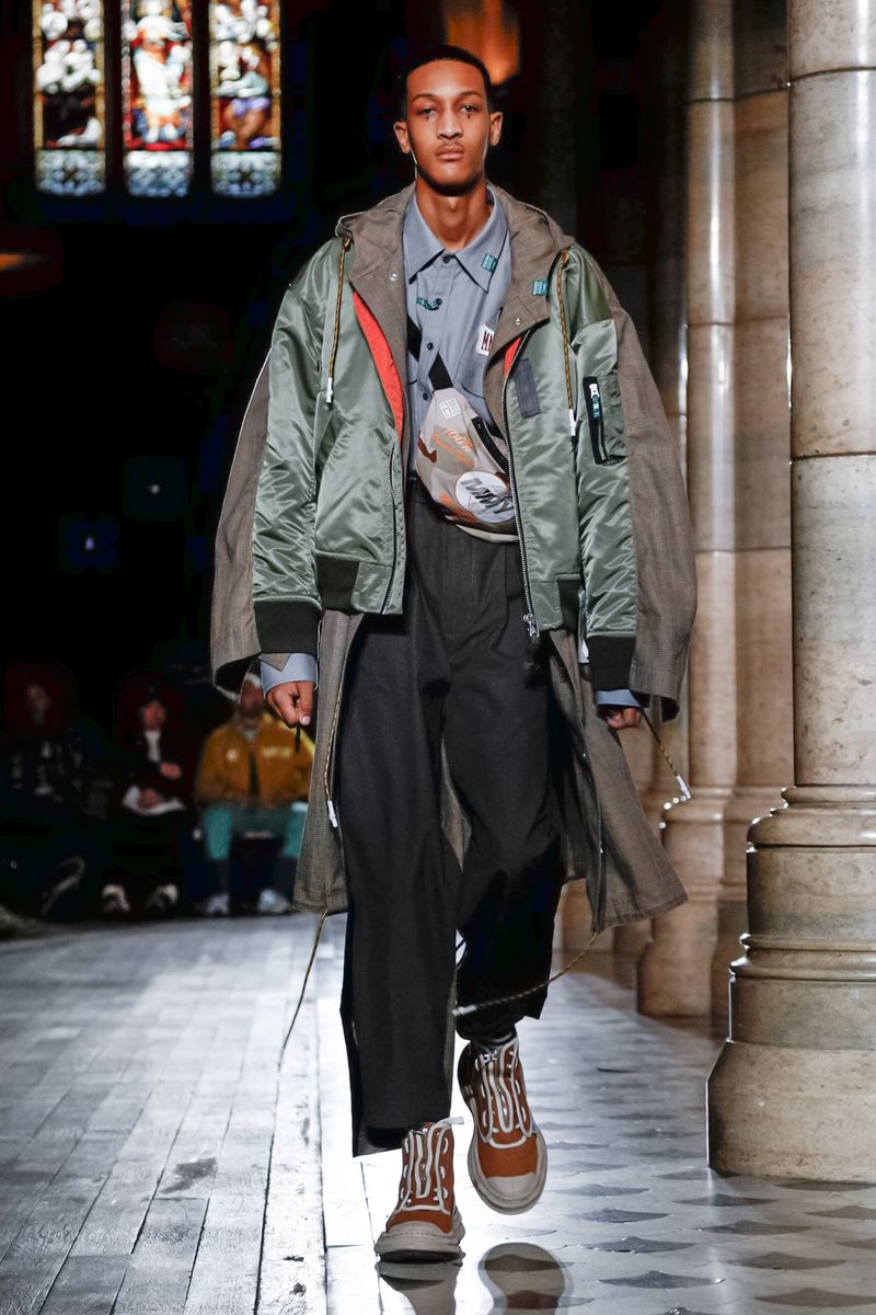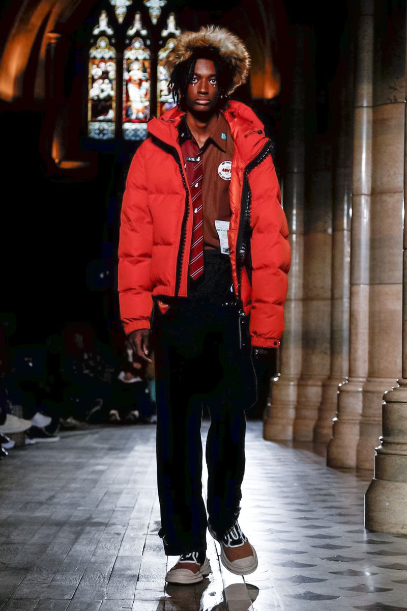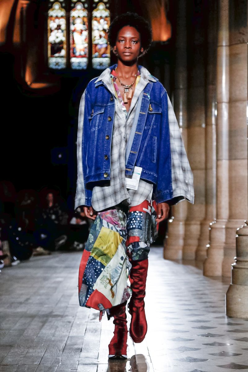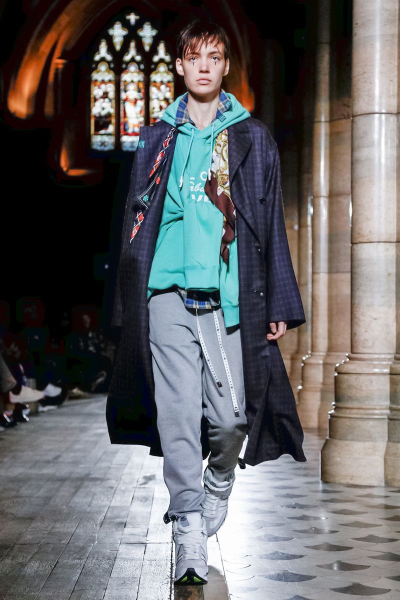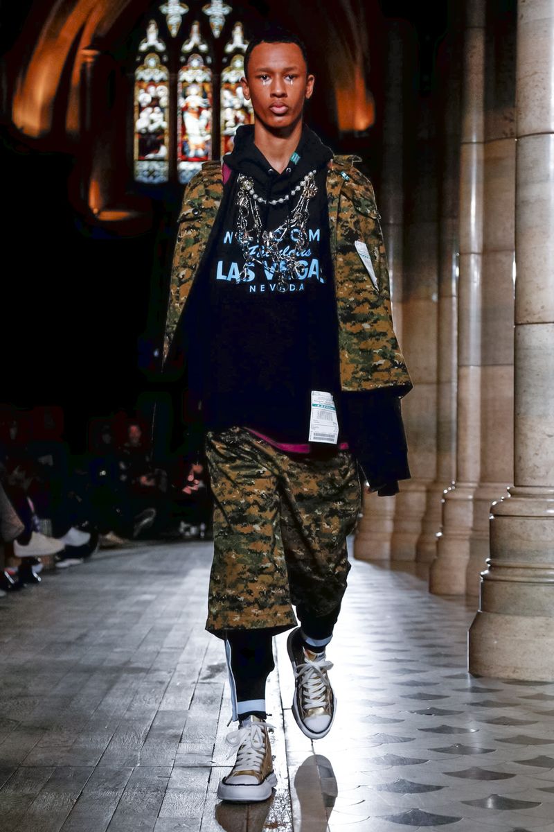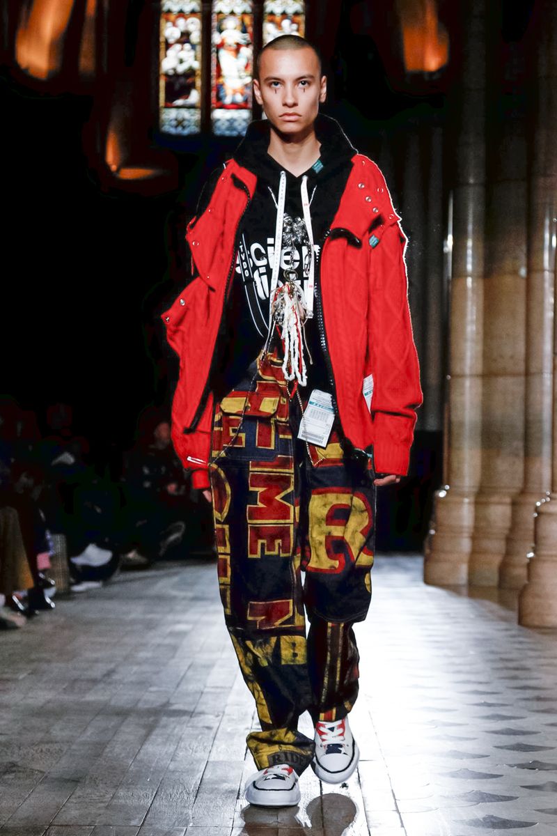 Today in Paris, denim, leather, patchwork shirts and knitwear with a streetwear aesthetic at Maison Mihara Yasuhiro Fall/Winter 2019 Paris new menswear show.