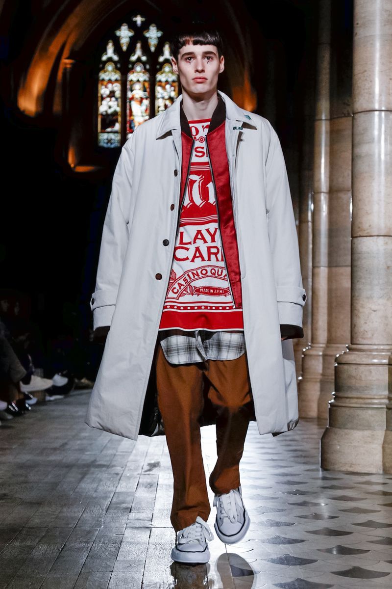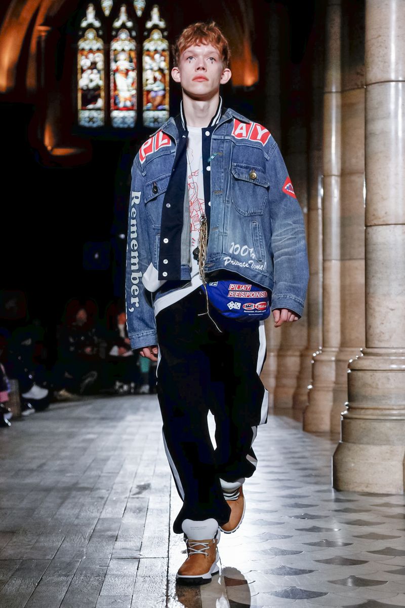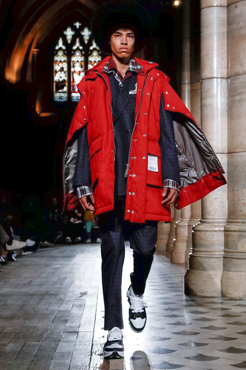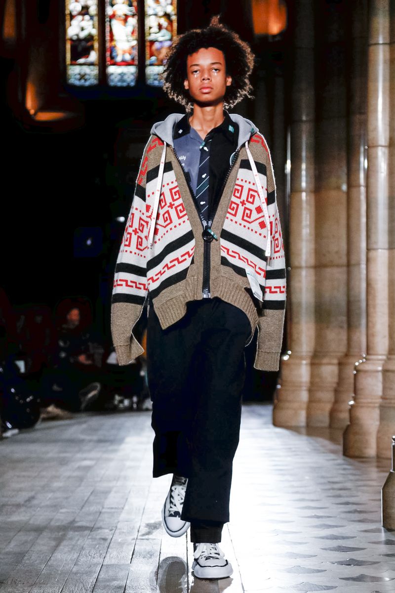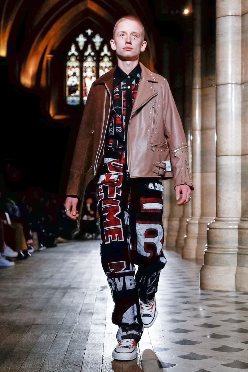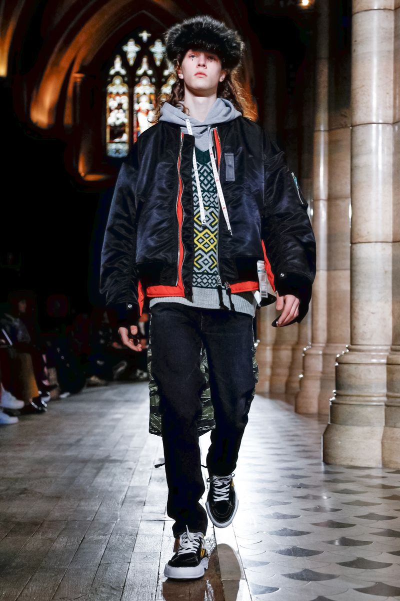 Today in Paris, denim, leather, patchwork shirts and knitwear with a streetwear aesthetic at Maison Mihara Yasuhiro Fall/Winter 2019 Paris new menswear show.