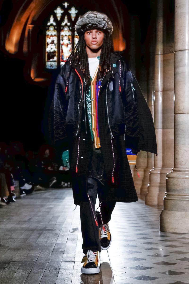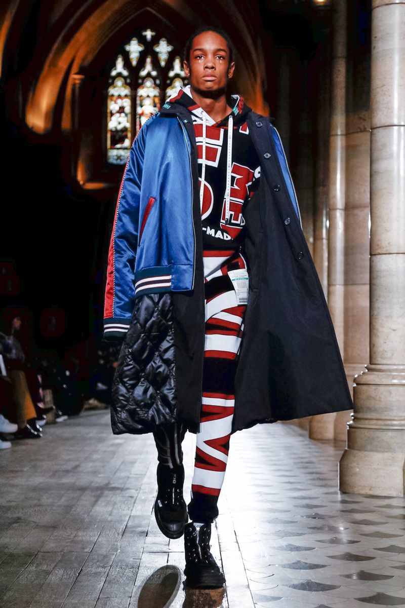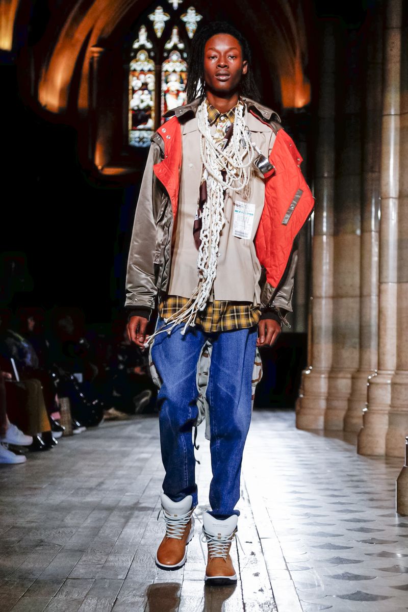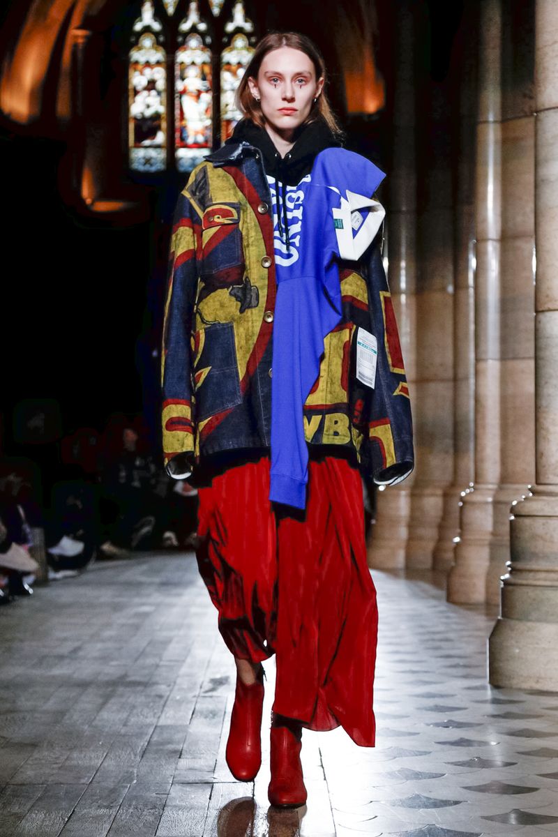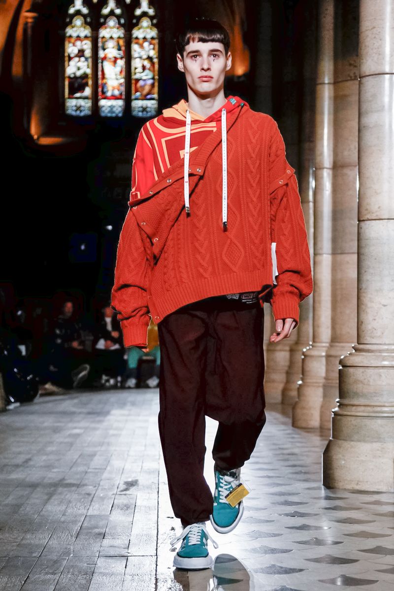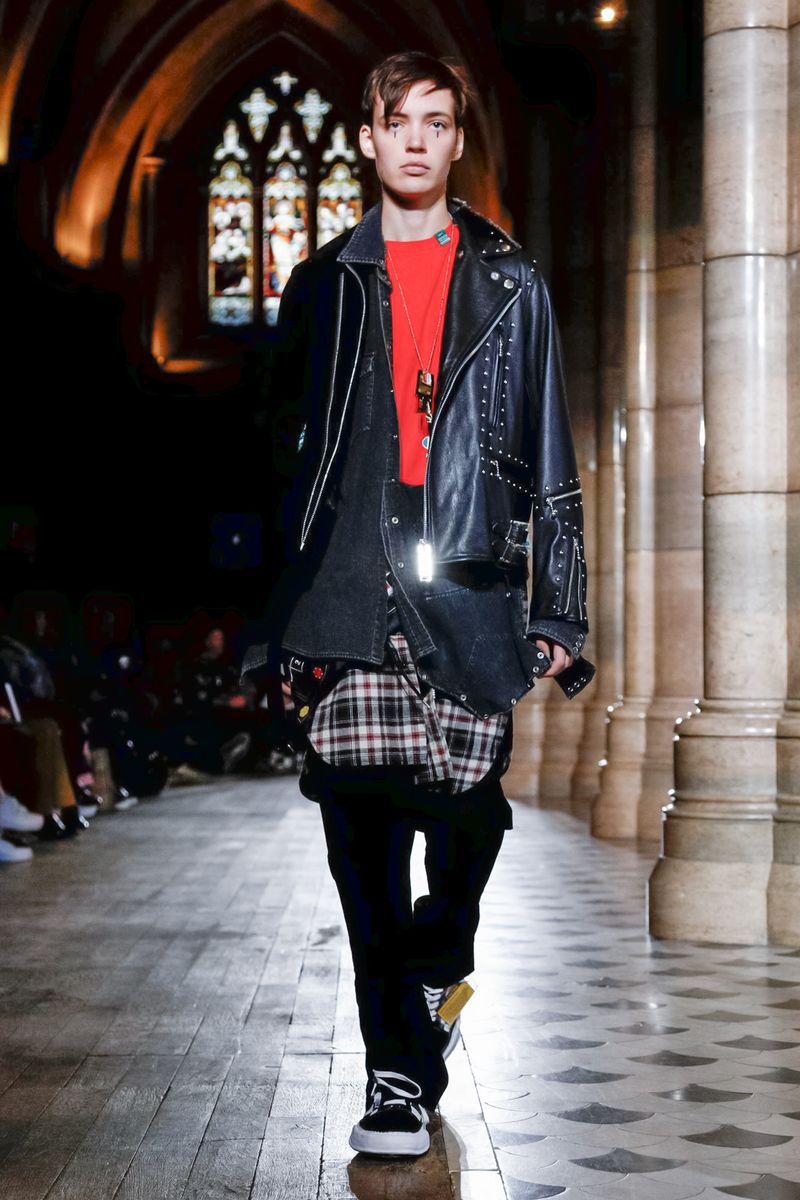 Today in Paris, denim, leather, patchwork shirts and knitwear with a streetwear aesthetic at Maison Mihara Yasuhiro Fall/Winter 2019 Paris new menswear show.