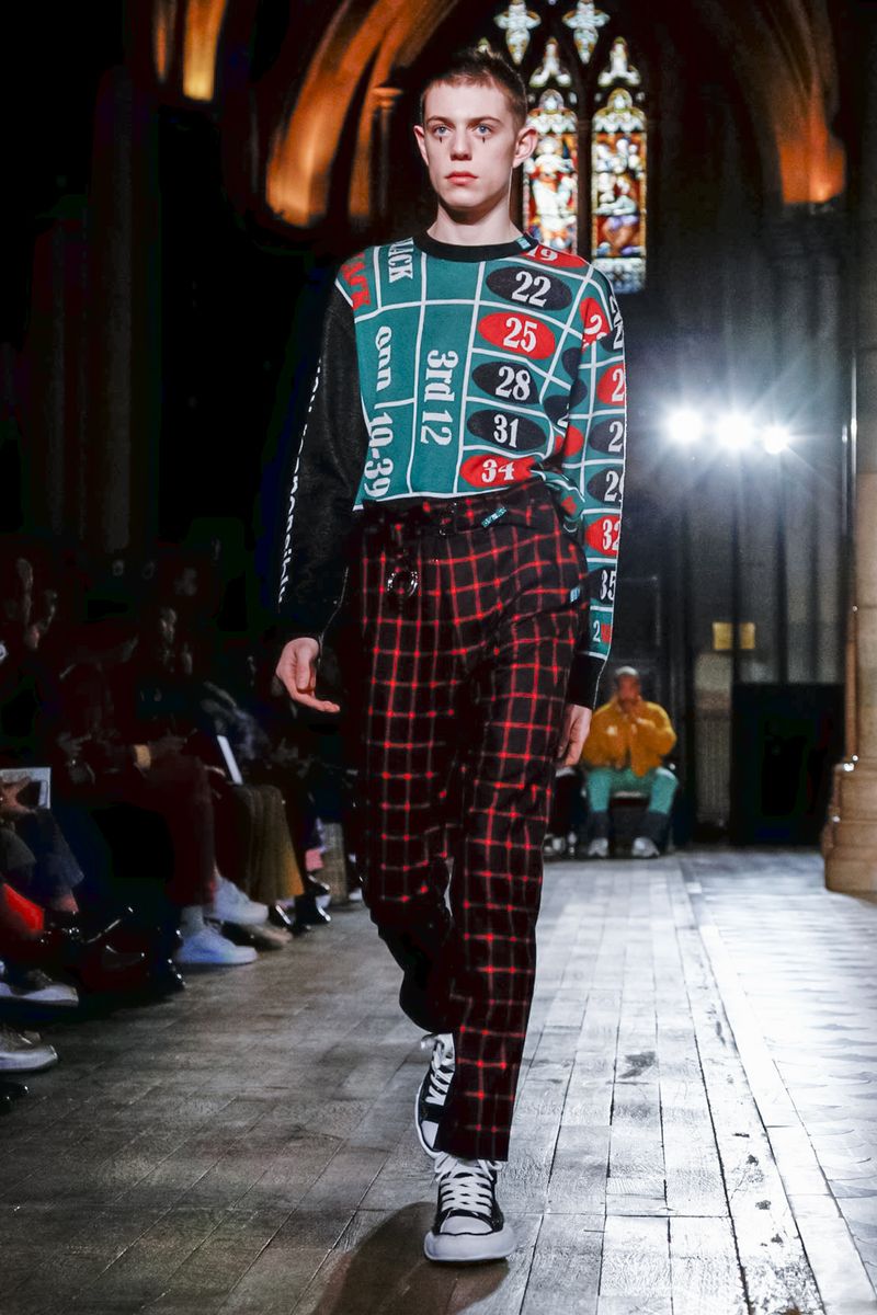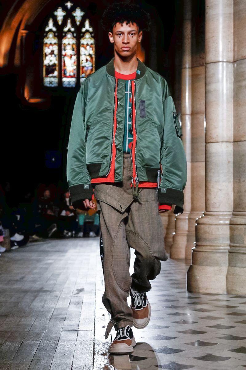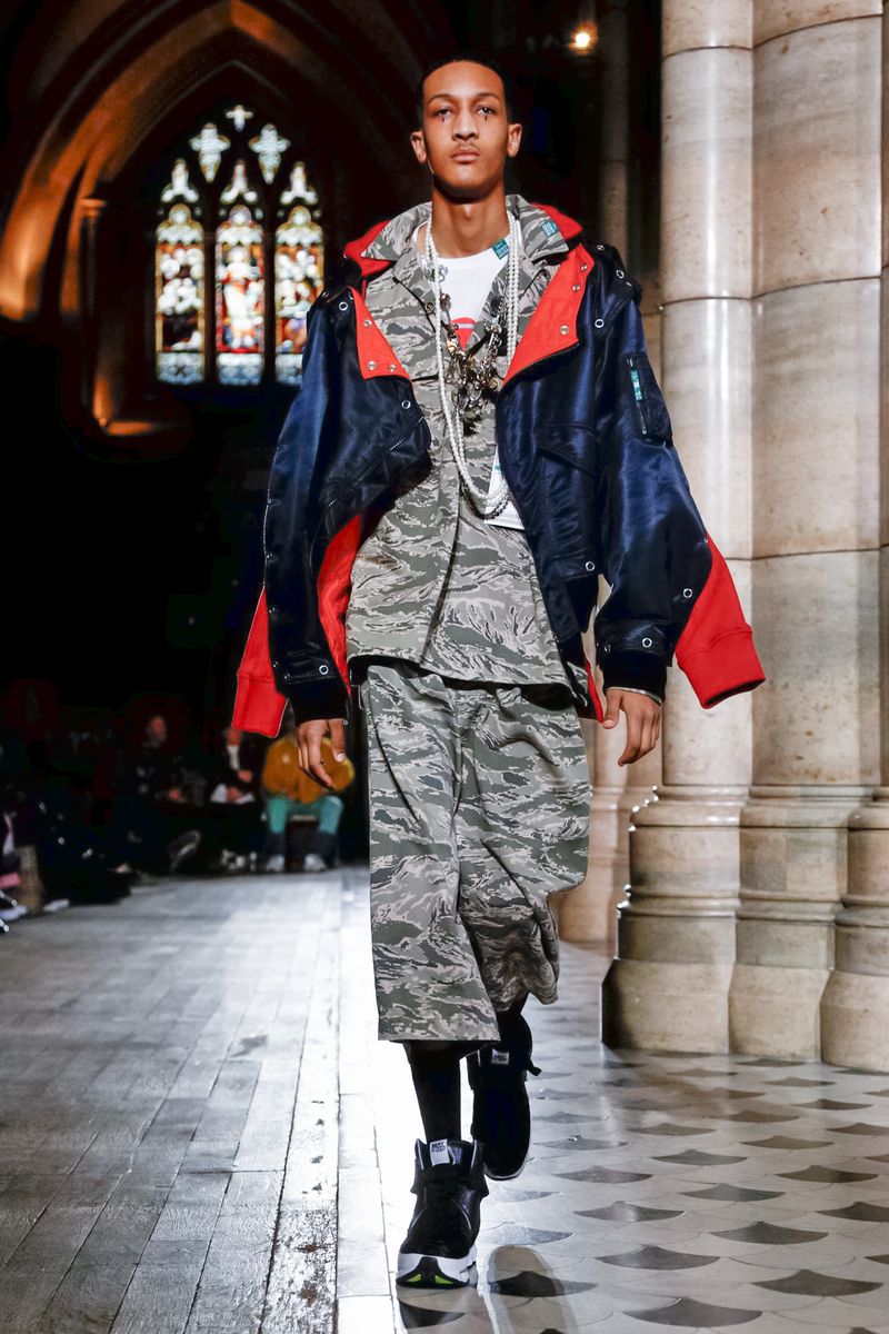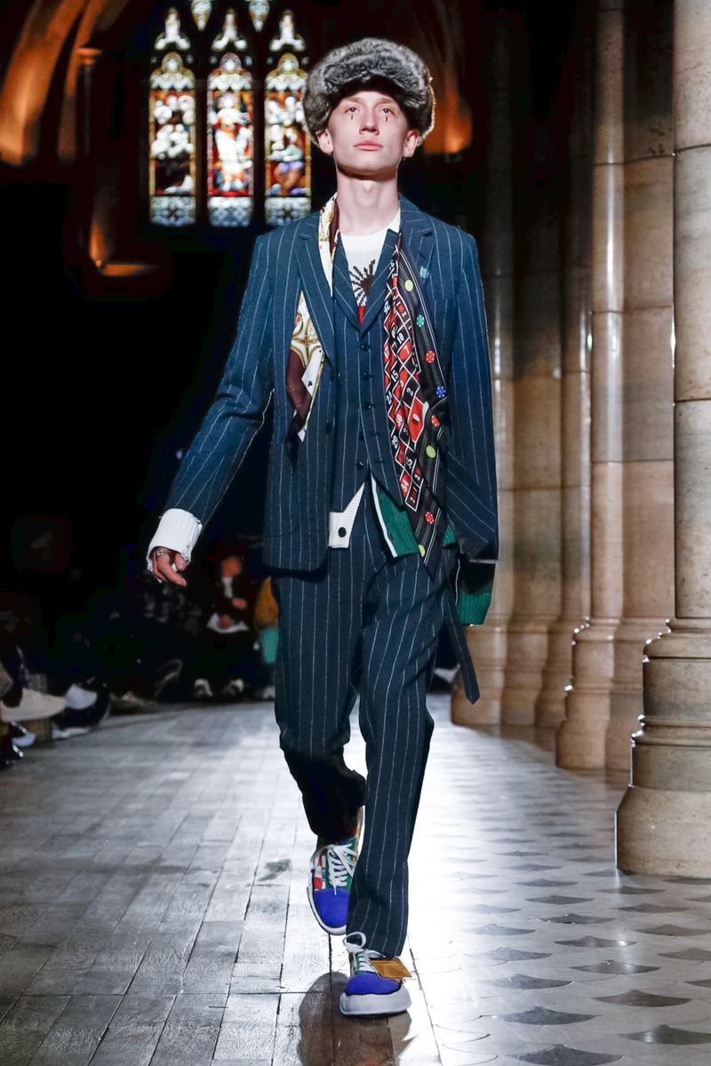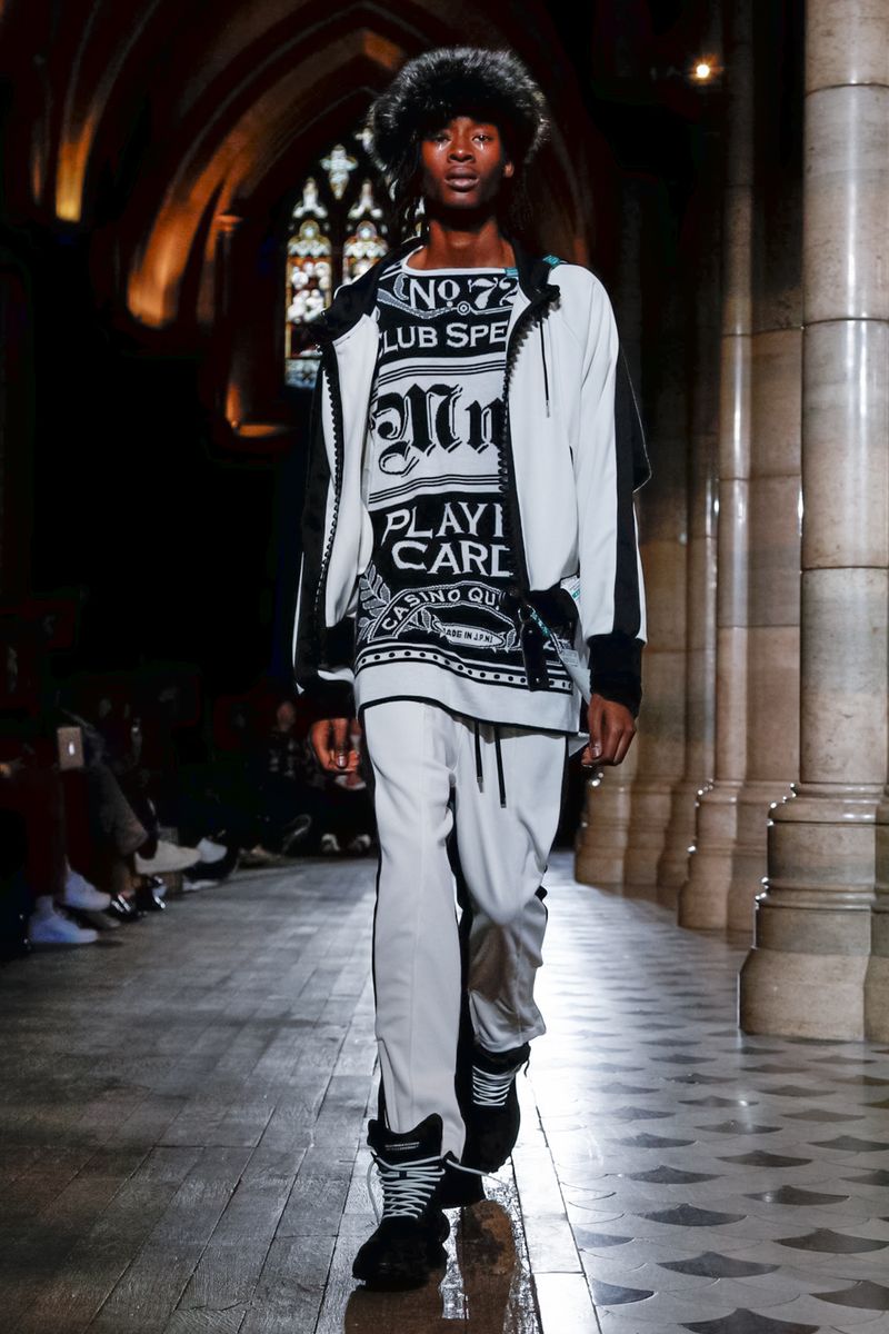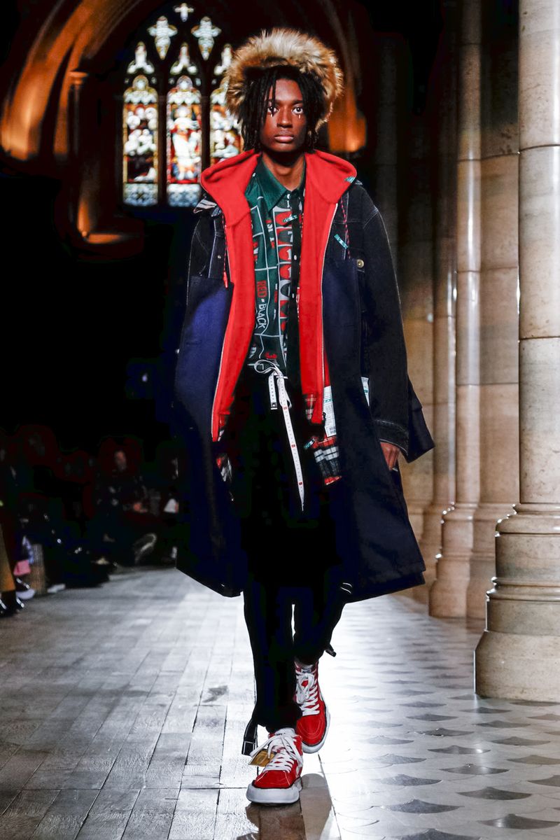 Today in Paris, denim, leather, patchwork shirts and knitwear with a streetwear aesthetic at Maison Mihara Yasuhiro Fall/Winter 2019 Paris new menswear show.