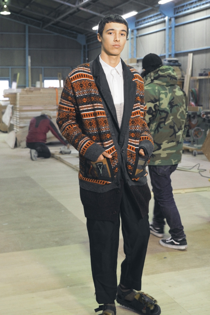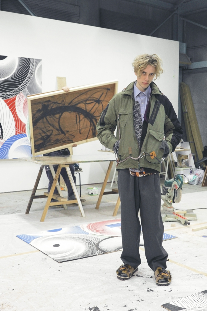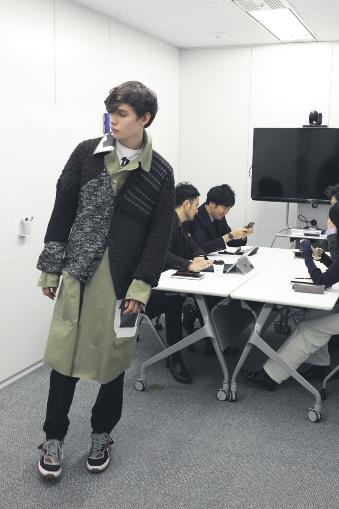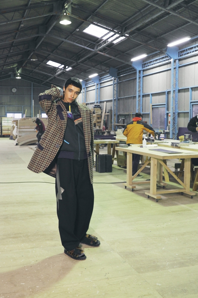 The clothings shot in front of scenes like workers, men-at-work routine, offices, studios, garages, parking lot and more.